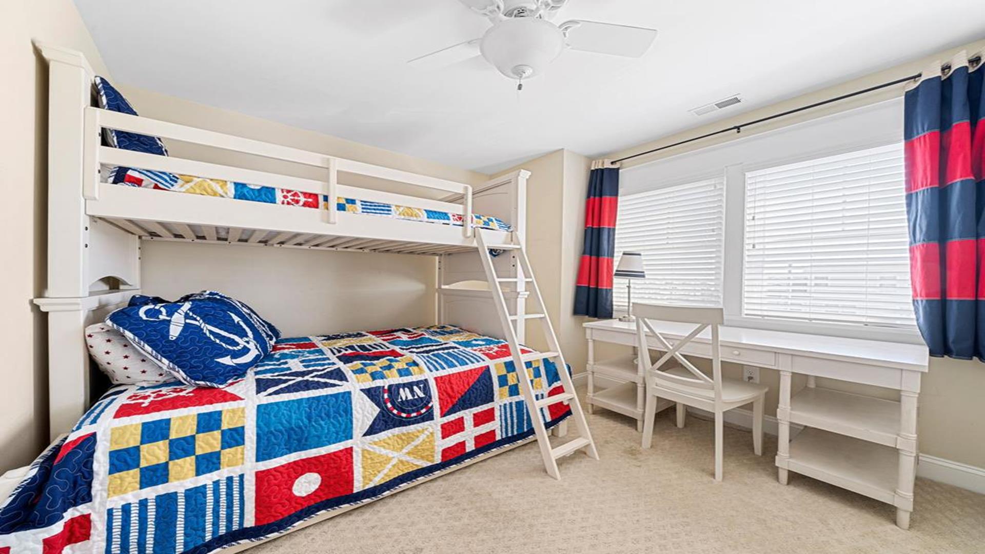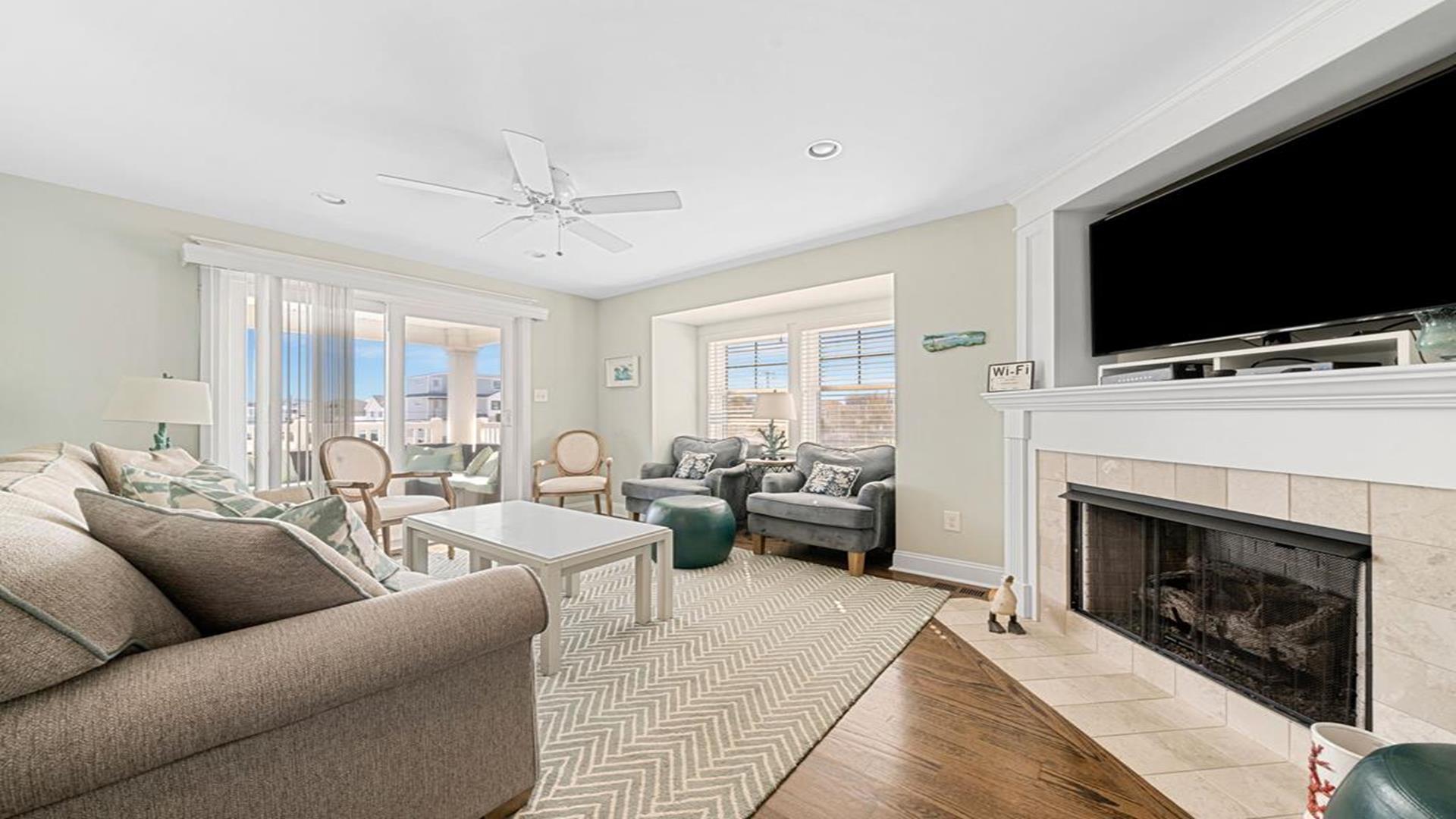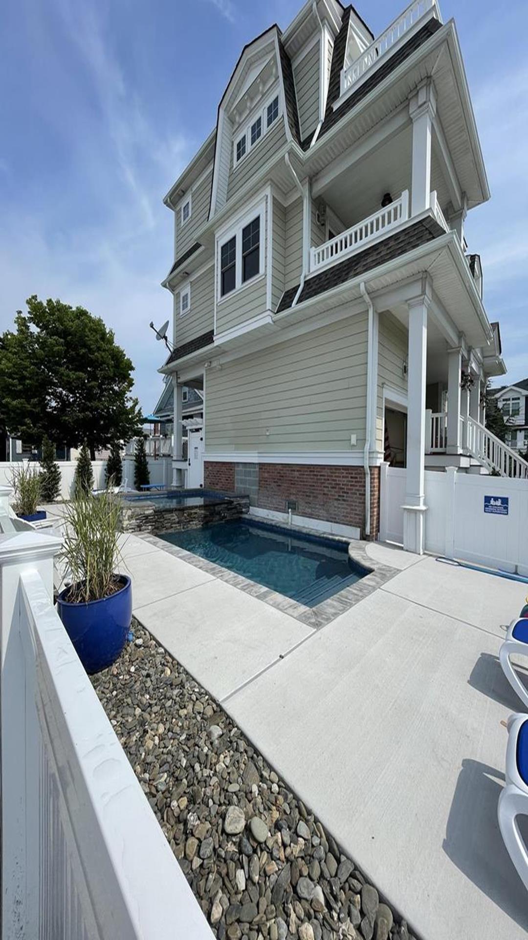 Fantastic Avalon townhome with private POOL AND HOT TUB!! This 5 bedroom, 3.5 bath, 3 story townhouse is located in a very quiet neighborhood with views of the bay. The first floor includes 2 bedrooms and one full hallway bathroom with a walk in shower. One bedroom includes a twin daybed with a twin trundle pullout. The second bedroom includes a queen bed. The second floor includes a cozy living room with sliders to the second floor private sundeck, with additional lounge and dining areas. Views of the bay can be enjoyed from the second floor deck! There is also a natural gas grill on this deck as well which makes outdoor dining a breeze from the second floor. A large kitchen complete with granite center island, dining area, and pantry. A powder room is located off the kitchen for your visiting guests! The third floor includes the master suite complete with a king bed and private bath. Additionally enjoy sliders to a private outdoor sundeck with more fantastic views of the bay. Two additional bedrooms with a full hallway bathroom and tub shower complete this level. One bedroom includes a queen size bed with a twin trundle pullout. The 5th bedroom includes a pyramid bunkbed which is a bunkbed with a full mattress on the bottom and a single bed on the top and an additional twin trundle bed. This home sleeps 12 people and includes a gas grill, heated pool and hot tub, enclosed outdoor shower, central air, 2 tvs, wireless internet, and 2 off street parking spaces. The garage is not available for tenant use. Call today to book your vacation. Fall weekly and weekend rentals are now available! Pool and Spa will stay open until October 1st.