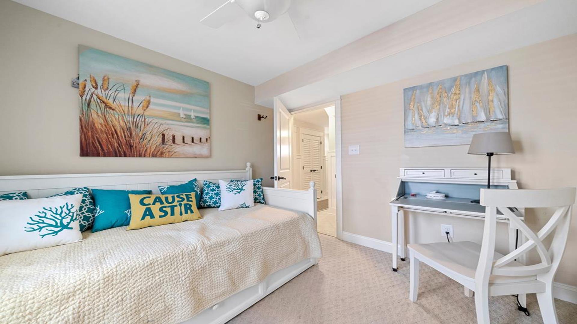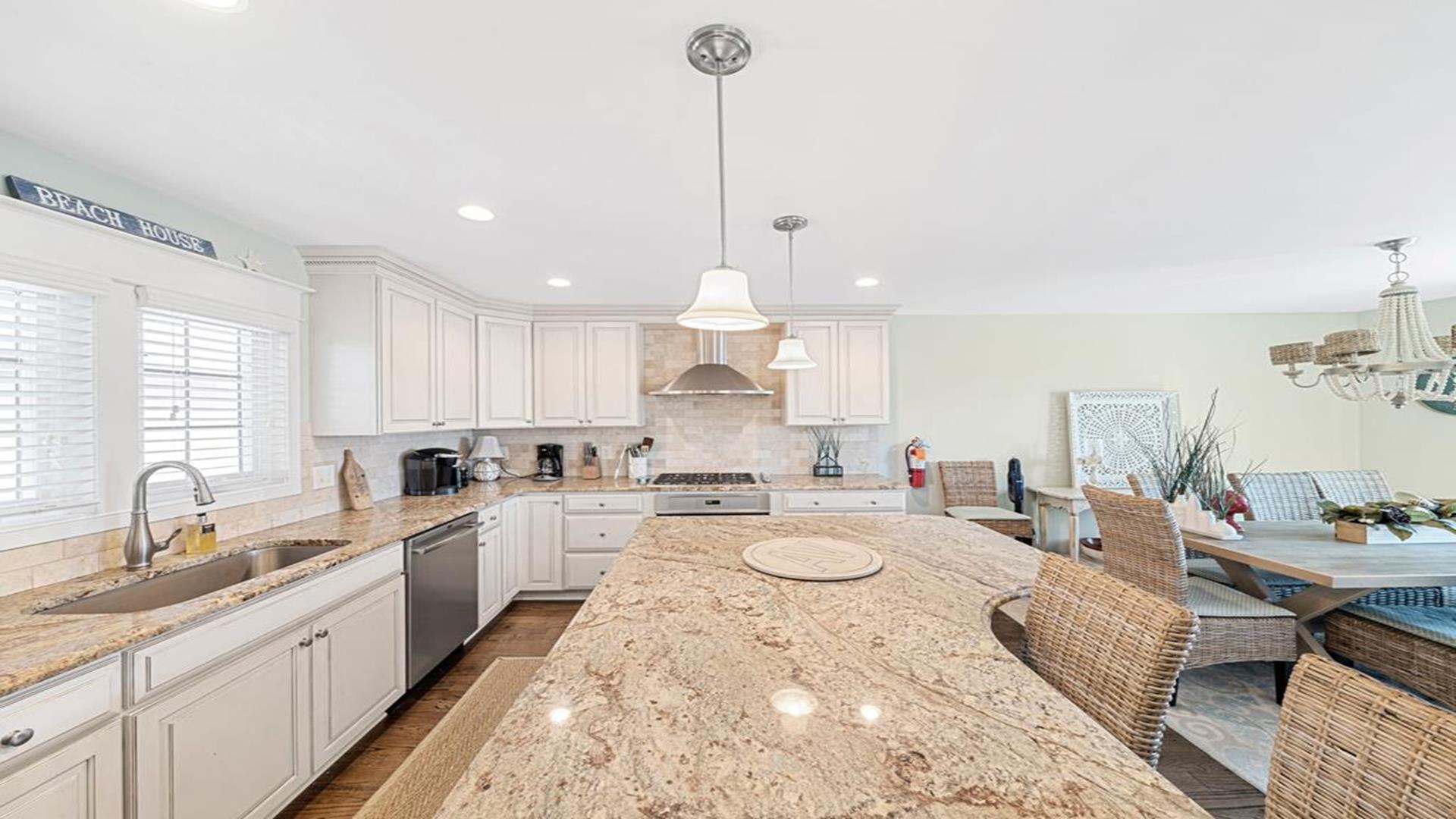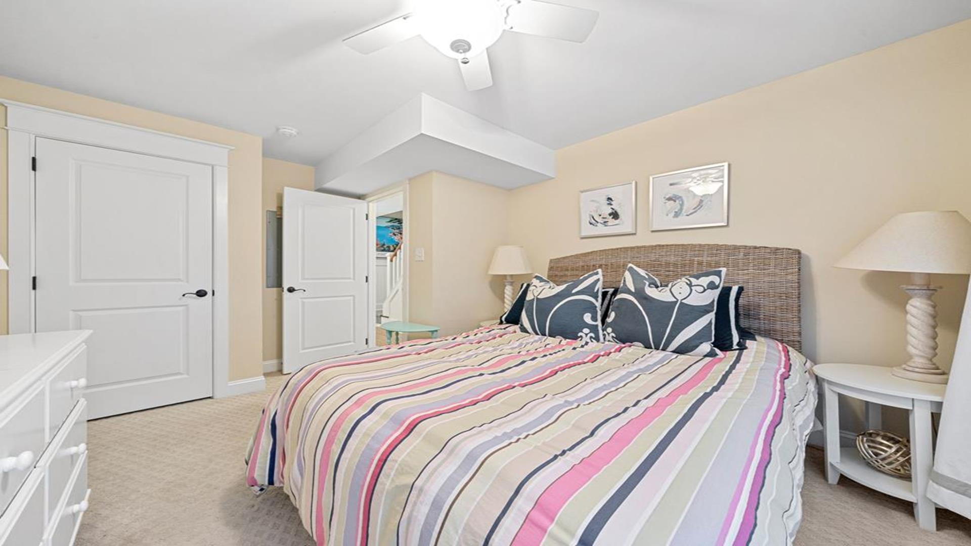 Fantastic Avalon townhome with private POOL AND HOT TUB!! This 5 bedroom, 3.5 bath, 3 story townhouse is located in a very quiet neighborhood with views of the bay. The first floor includes 2 bedrooms and one full hallway bathroom with a walk in shower. One bedroom includes a twin daybed with a twin trundle pullout. The second bedroom includes a queen bed. The second floor includes a cozy living room with sliders to the second floor private sundeck, with additional lounge and dining areas. Views of the bay can be enjoyed from the second floor deck! There is also a natural gas grill on this deck as well which makes outdoor dining a breeze from the second floor. A large kitchen complete with granite center island, dining area, and pantry. A powder room is located off the kitchen for your visiting guests! The third floor includes the master suite complete with a king bed and private bath. Additionally enjoy sliders to a private outdoor sundeck with more fantastic views of the bay. Two additional bedrooms with a full hallway bathroom and tub shower complete this level. One bedroom includes a queen size bed with a twin trundle pullout. The 5th bedroom includes a pyramid bunkbed which is a bunkbed with a full mattress on the bottom and a single bed on the top and an additional twin trundle bed. This home sleeps 12 people and includes a gas grill, heated pool and hot tub, enclosed outdoor shower, central air, 2 tvs, wireless internet, and 2 off street parking spaces. The garage is not available for tenant use. Call today to book your vacation. Fall weekly and weekend rentals are now available! Pool and Spa will stay open until October 1st.