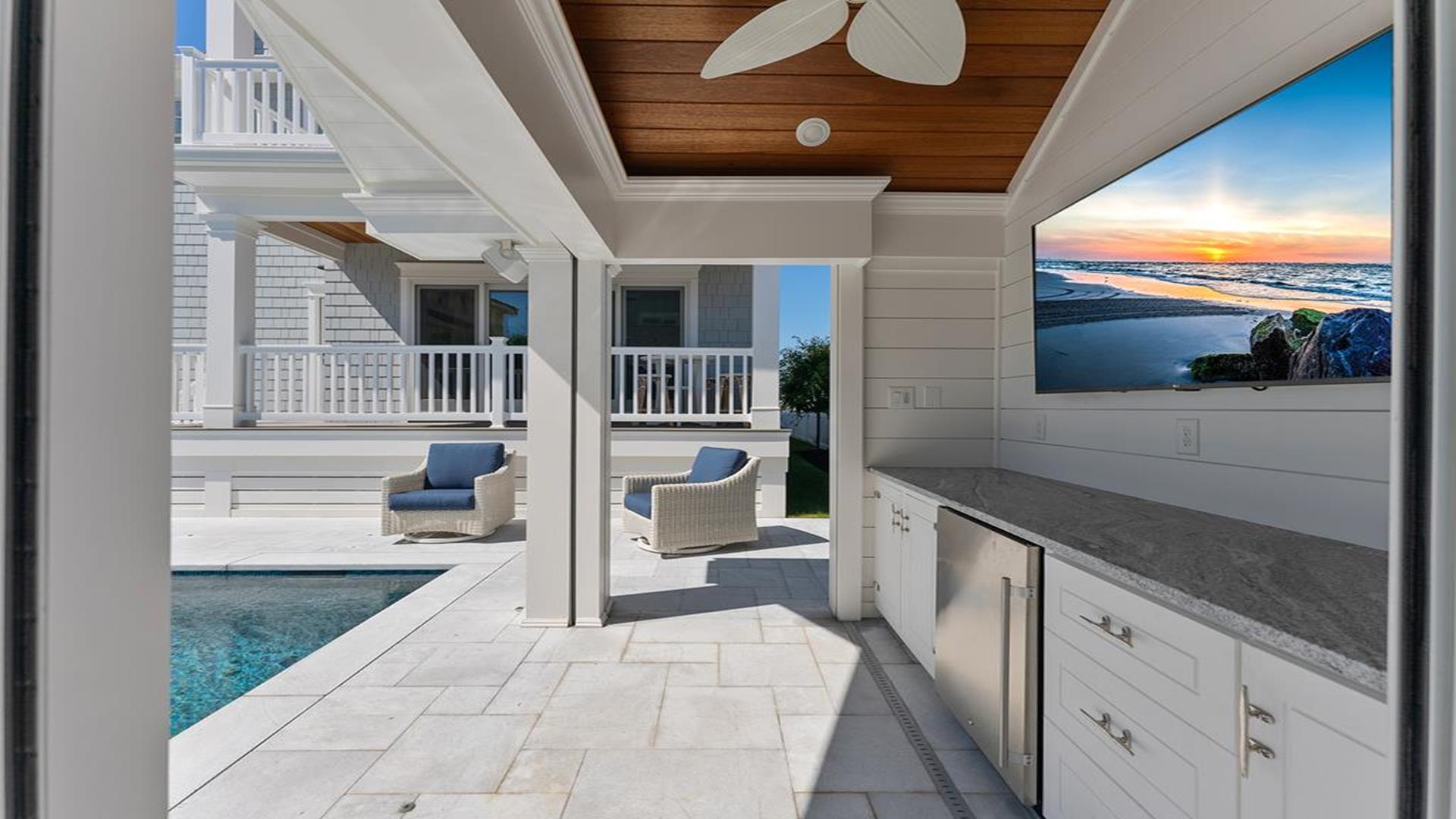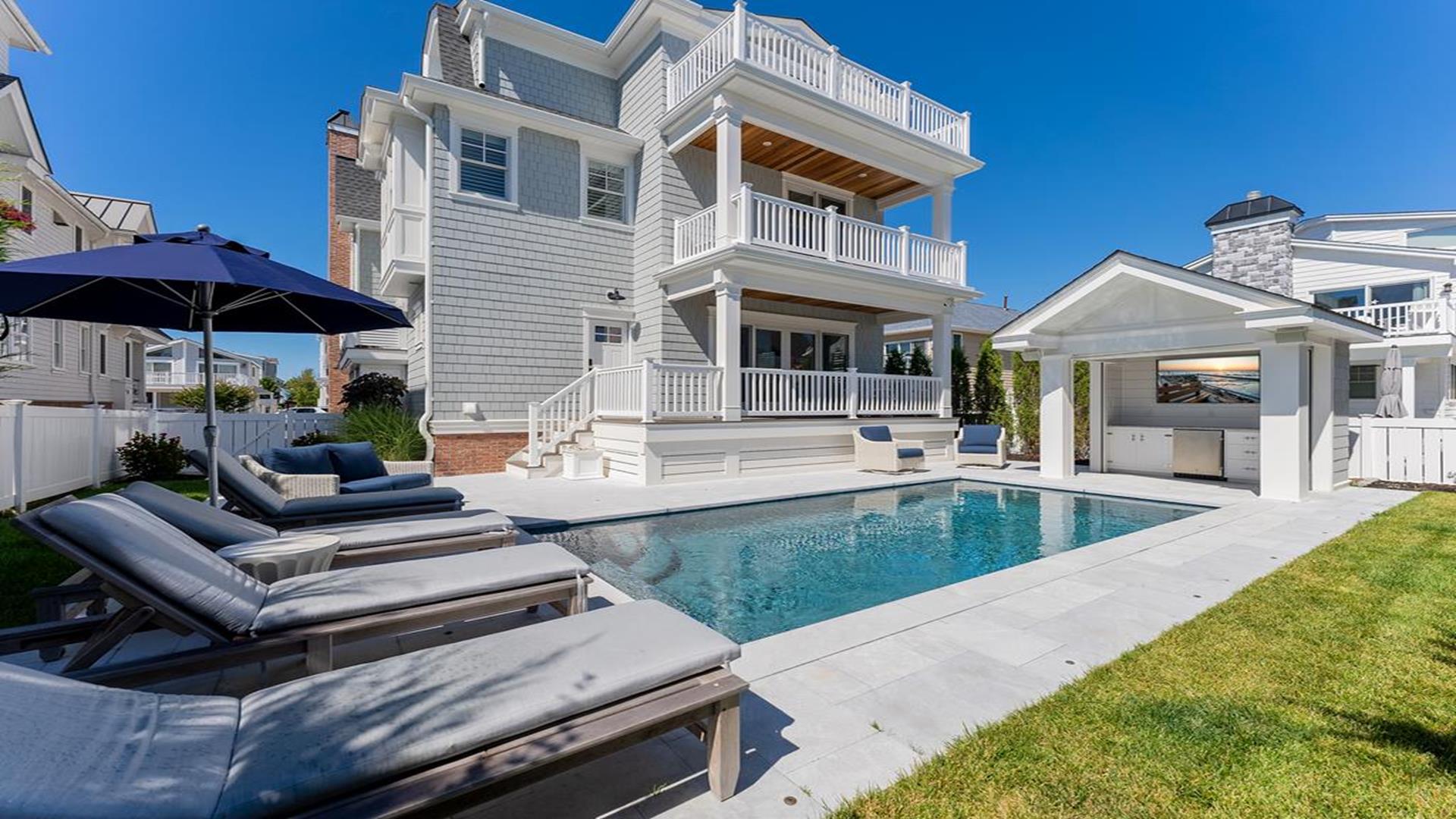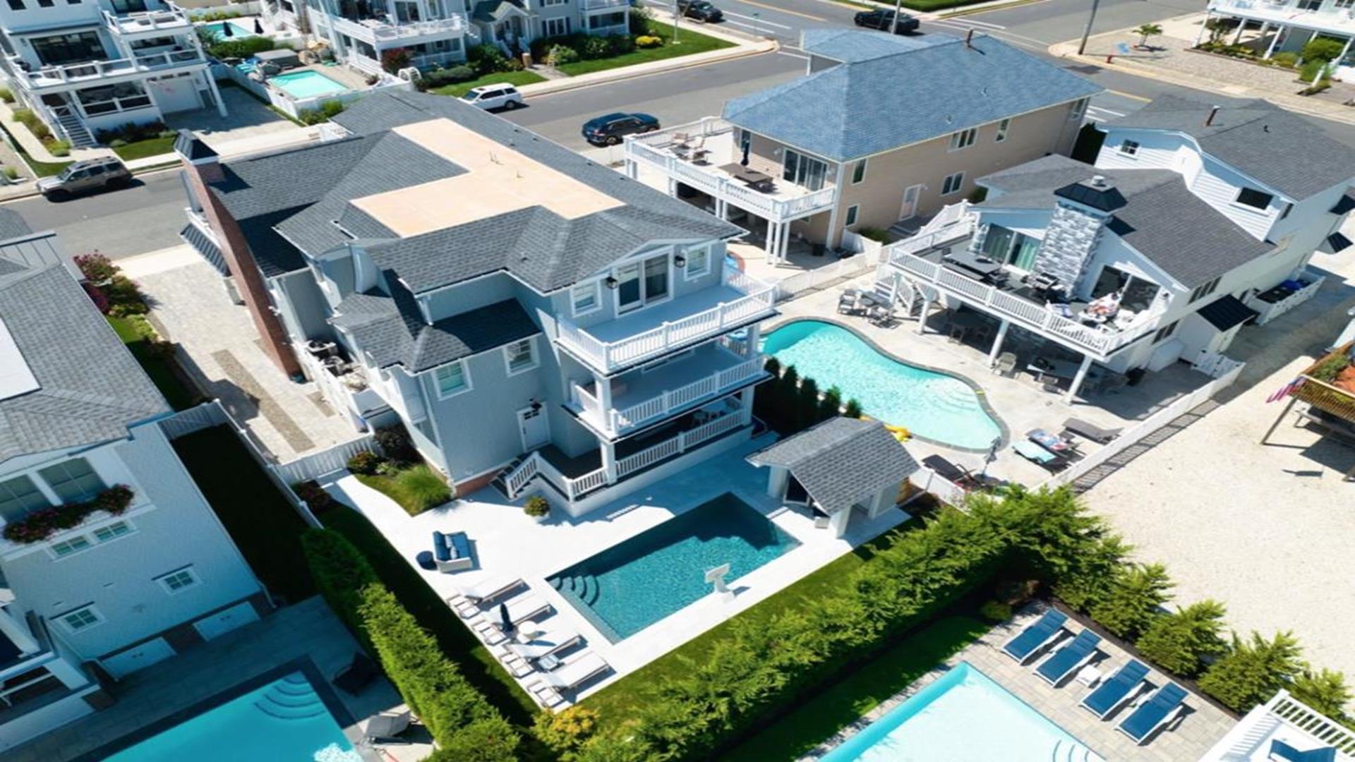 Escape to this NORTHEND BEACH BLOCK CUSTOM HOME WITH POOL. Ideally situated seven homes from a protected beach, this 4-year-old home is being rented for the first time by new owners. The prime location provides the ultimate vacation experience. Townsend Inlet Jetty, the 12th Street playground ( including numerous pickleball courts), and Avalon’s restaurants are a short walk away. New furniture throughout the house. Each of the six bedrooms in this massive home boasts an ensuite bathroom, plus two additional powder rooms. Two bedrooms are located on the first floor, one with a queen-sized bed and the other with two sets of bunk beds. Both bunks are single over single for a total of 4 people. The first-floor family room also has a queen sofa bed. Off the family room is a covered porch leading to a heated pool with blue glass tile and plenty of sun. There is a cabana with motorized doors and a large TV to watch the big game, a beverage cooler sits next to the TV to stock with your favorite beverages. An elevator serves all four levels of the home and there are hardwood floors throughout. The second level boasts a large open-concept living area and a well-equipped kitchen with premium Sub-Zero and Wolf appliances including a wine cooler. There is ample room to dine in with a large kitchen table and marble island. You can also dine alfresco on the front-covered teak deck off the living area and watch the waves roll in. Two additional bedrooms are on the second level with queen-sized beds and one with a private teak ceiling porch. The third floor showcases a luxurious primary bedroom with a king-sized bed, served with a large ensuite bath, walk-in closet, and make-up vanity. It also has a nice sitting area or office. Enjoy your coffee watching the sun rise over the Atlantic from the private deck. An equally impressive bedroom with a queen-sized bed, ensuite bath, and private deck to view the Ocean completes the third level. There is an additional full sized washer and dryer on the third floor. Additional amenities include a full-sized laundry room, wireless internet, cable, gas grill, and an enclosed outdoor shower. There are two off-street parking spaces. Beach tags, chairs, and umbrellas are provided but not guaranteed. Take advantage of this opportunity to enjoy the perfect vacation rental home. The owner collects a $4,000 security deposit. Sorry, no pets and no use of the garage during your stay. Check in is 2pm and check out is 10am.