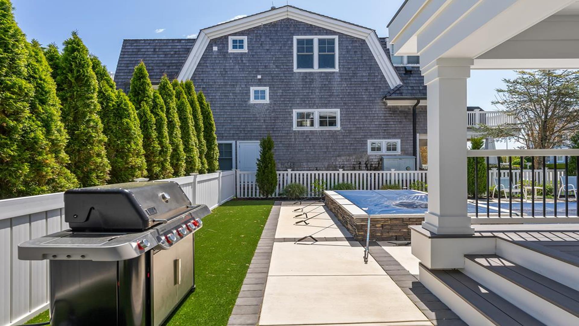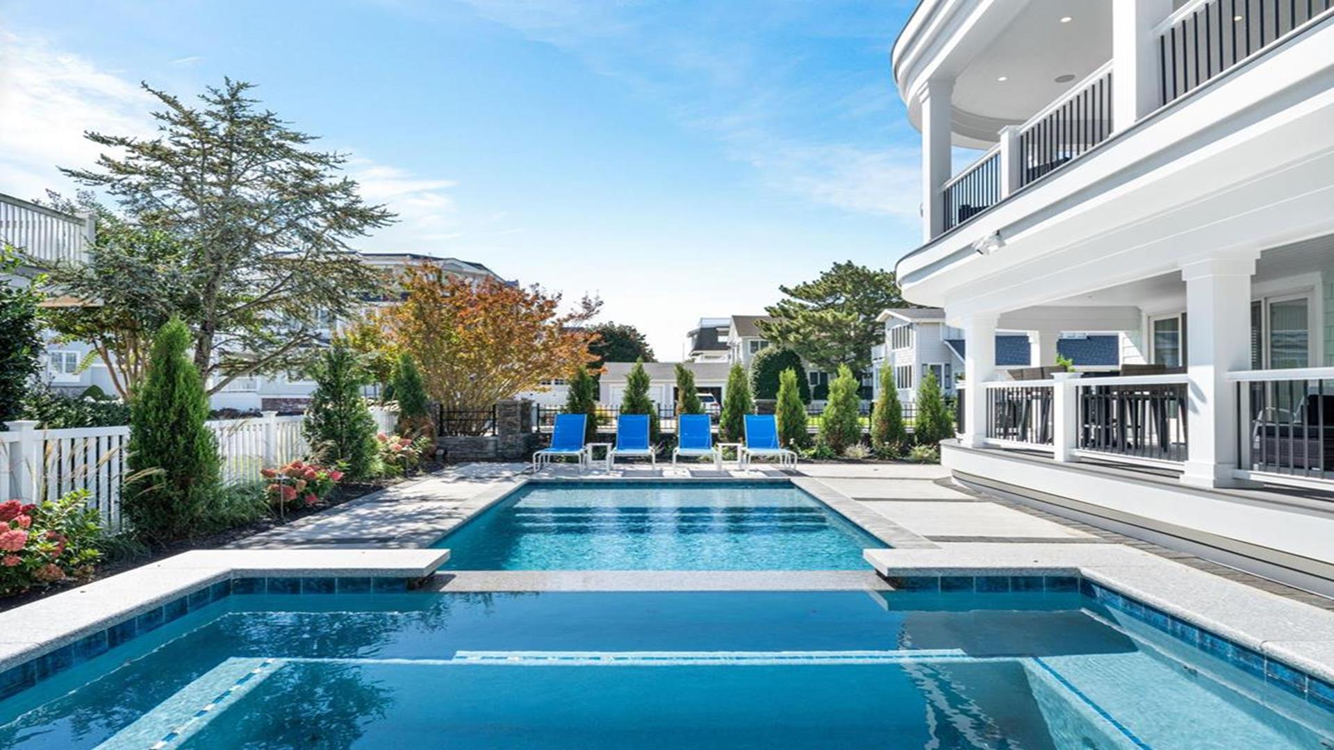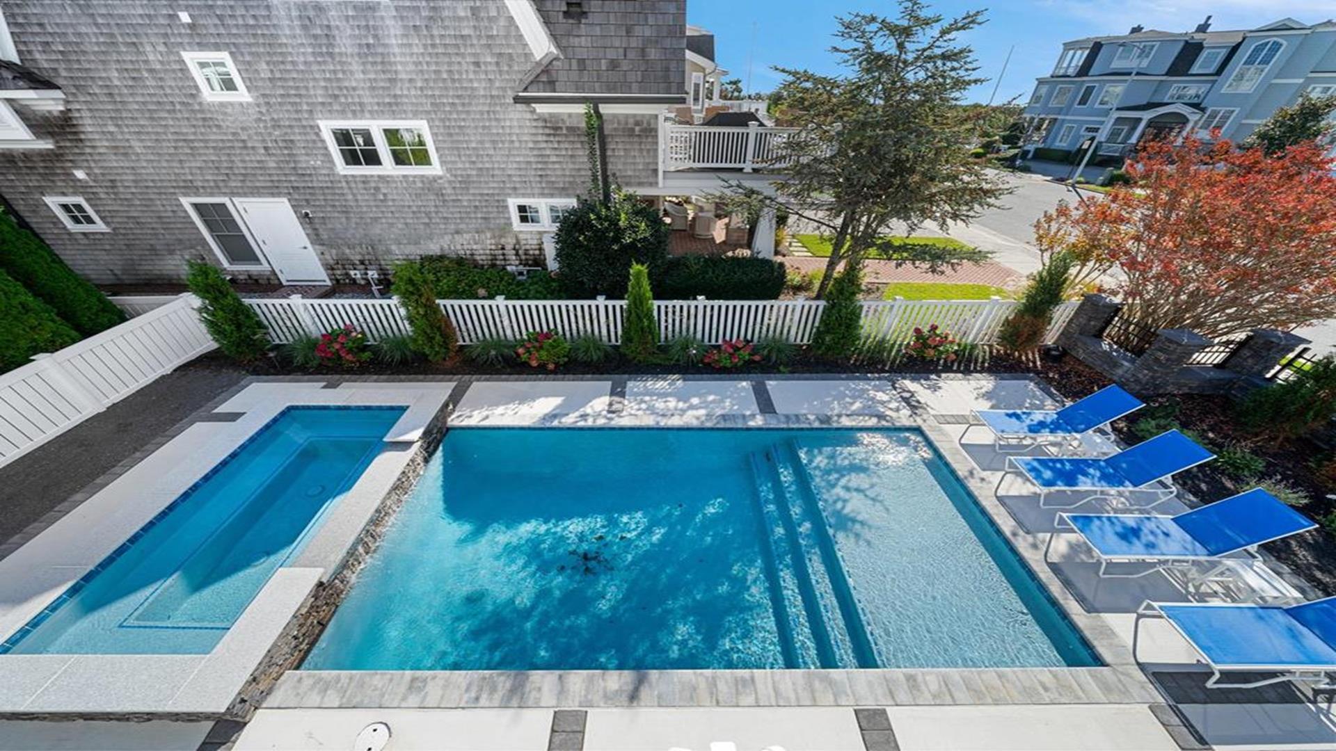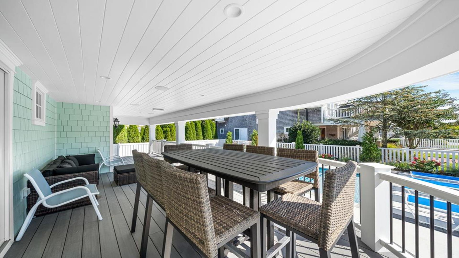This luxurious 7-bedroom, 6.2-bathroom beach home, located just three houses from the ocean, features stunning views, a 4-stop elevator, and a large heated pool and spa. Spread over an oversized lot, it includes spacious living areas, a chef’s kitchen, and multiple ensuite bedrooms—six of which have private decks. The home includes a flexible office space that doubles as a 7th bedroom, multiple gathering spaces, and a well-equipped laundry area. There is also a powder room and commercial ice maker that can be accessed from the pool area. The first floor also includes a large family room with plenty of seating and access to a private deck. The outdoor space is perfect for relaxation, with a sun shelf, spa, and furnished covered deck. Conveniently close to the beach, town, and tennis courts, it also comes with beach gear and bikes for guest use. The bedroom layout is as follows, first floor includes an ensuite bedroom with a queen bed and a second ensuite bedroom with 2 single beds. The second level includes 2 bedrooms, one ensuite with king size bed and the private office with 1 single bed. The third story includes 3 ensuite bedrooms each with a king sized bed. Enjoy ocean views from the East side ensuite bedroom. Sorry, no pets permitted.