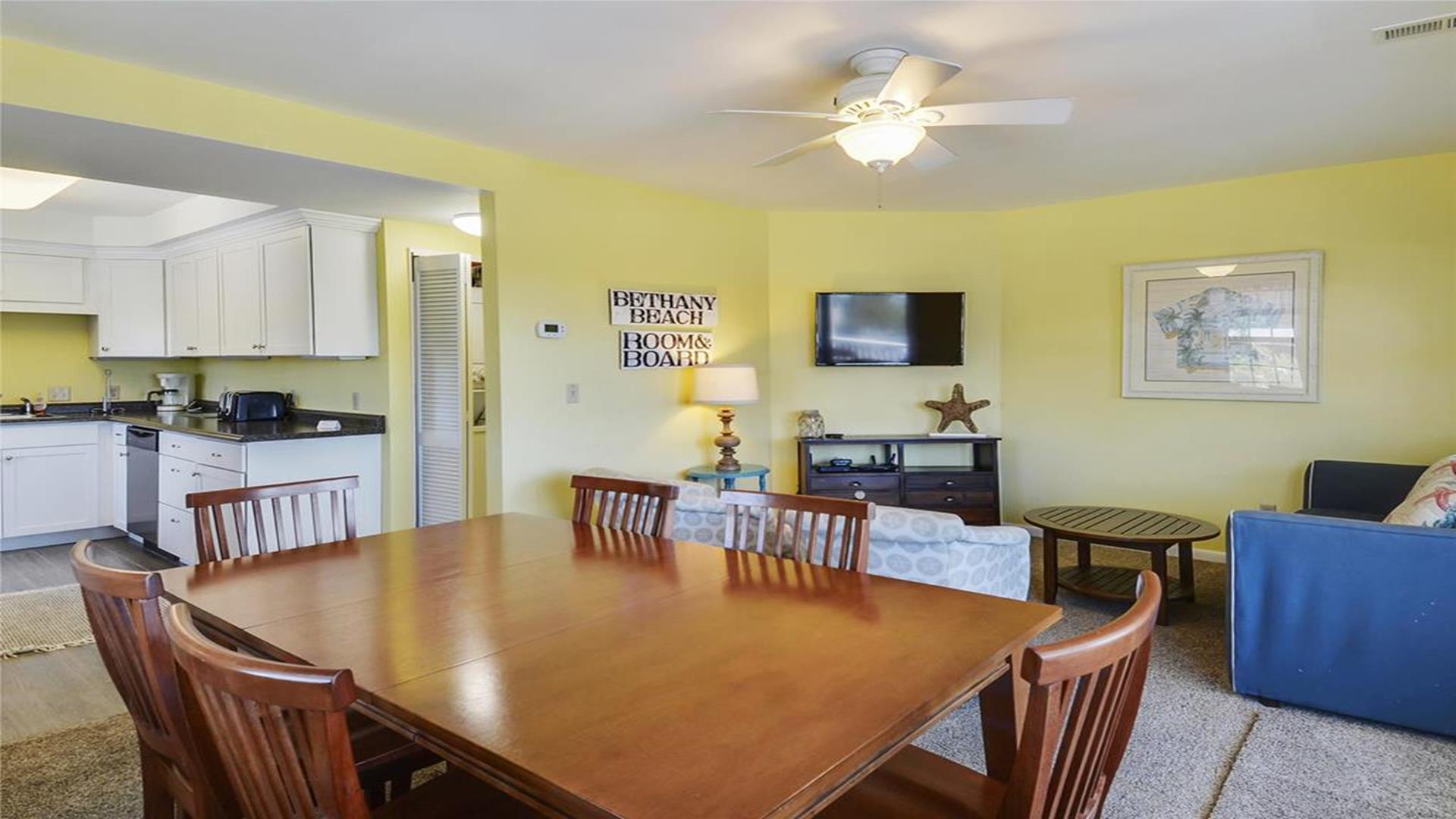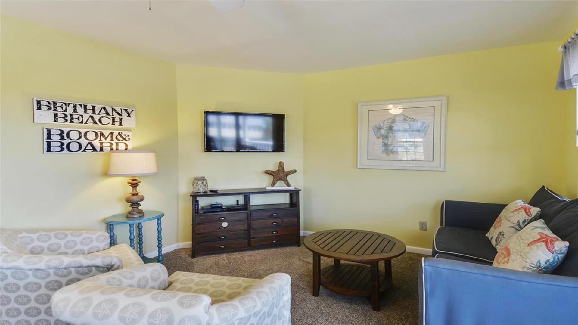 Welcome to your beach getaway in the heart of Bethany Beach! This charming 3-bedroom unit on the 2nd floor is the perfect retreat for up to 8 guests. Just steps away from the sandy shores, this property offers the ultimate beach vacation experience. Step inside and be greeted by a cozy living space with central air conditioning to keep you cool on those hot summer days. The living room features a comfortable sofa bed and a television for your entertainment needs. The fully equipped kitchen boasts modern appliances including a dishwasher, microwave, and coffee maker, making meal preparation a breeze. The three bedrooms are tastefully decorated and offer sleeping arrangements for everyone in your group. Two bedrooms feature queen beds, while the third bedroom is equipped with two bunk beds, perfect for the little ones. With two full bathrooms, getting ready for a day at the beach or a night out in town is convenient for all guests. Relax and unwind on the screened porch, where you can enjoy the ocean breeze and the sound of the waves. After a day of sun and sand, rinse off in the convenient outdoor shower before heading inside. This property is located in the desirable Ocean Block, less than a quarter block from the beach, making it a prime location for beach lovers. With two parking spaces available, you can easily explore the surrounding area and all that Bethany Beach has to offer. Please note that this property does not allow pets and tenants are required to bring their own linens. Utilities are included for your convenience, and the property comes fully furnished with all the amenities you need for a comfortable stay. Don't miss out on the opportunity to make unforgettable beach memories at this Bethany Beach retreat. Book your stay today and start counting down the days until your toes are in the sand!