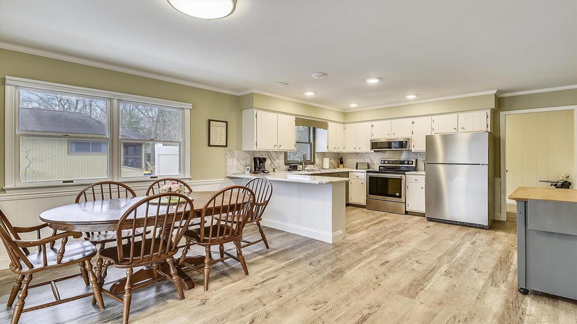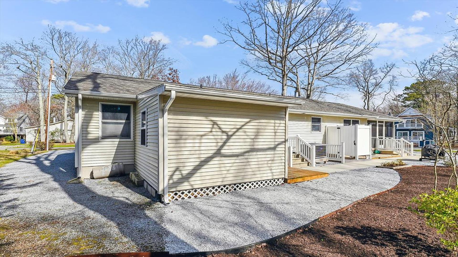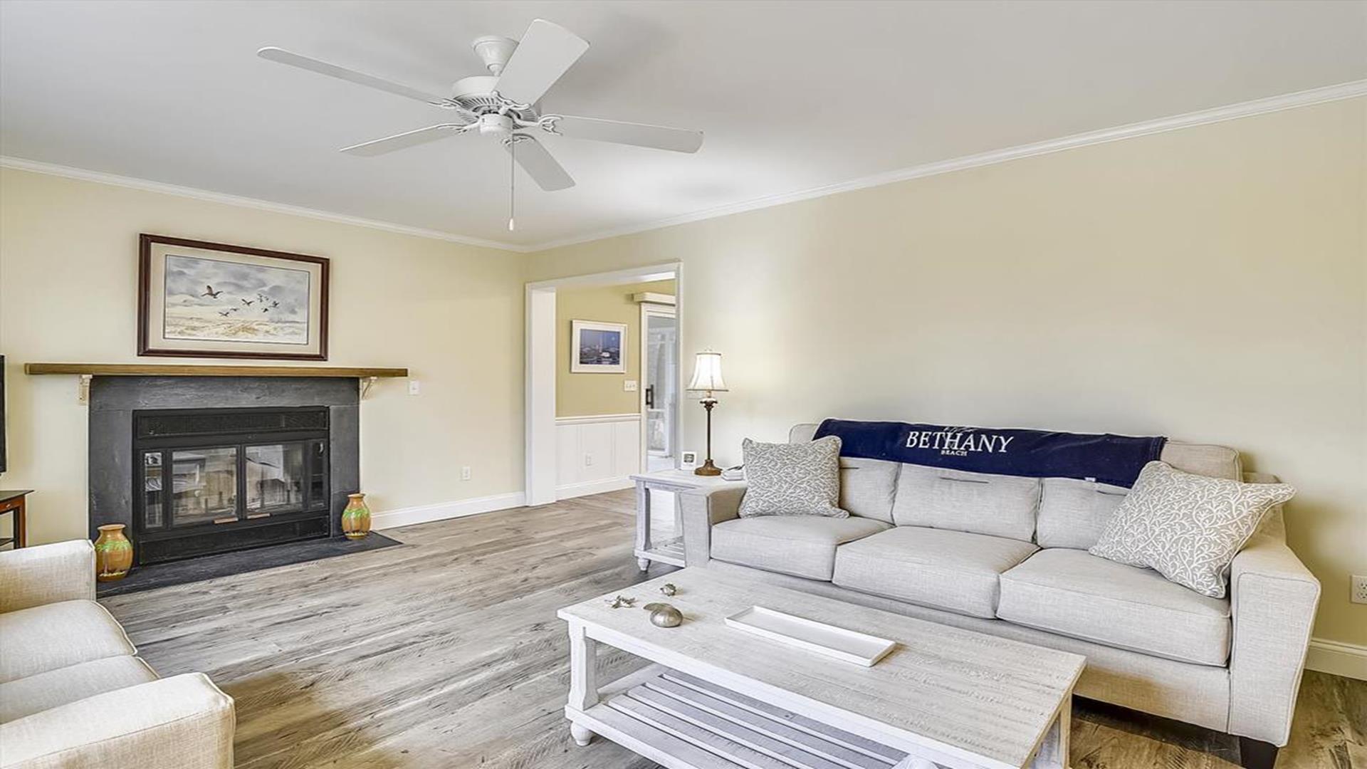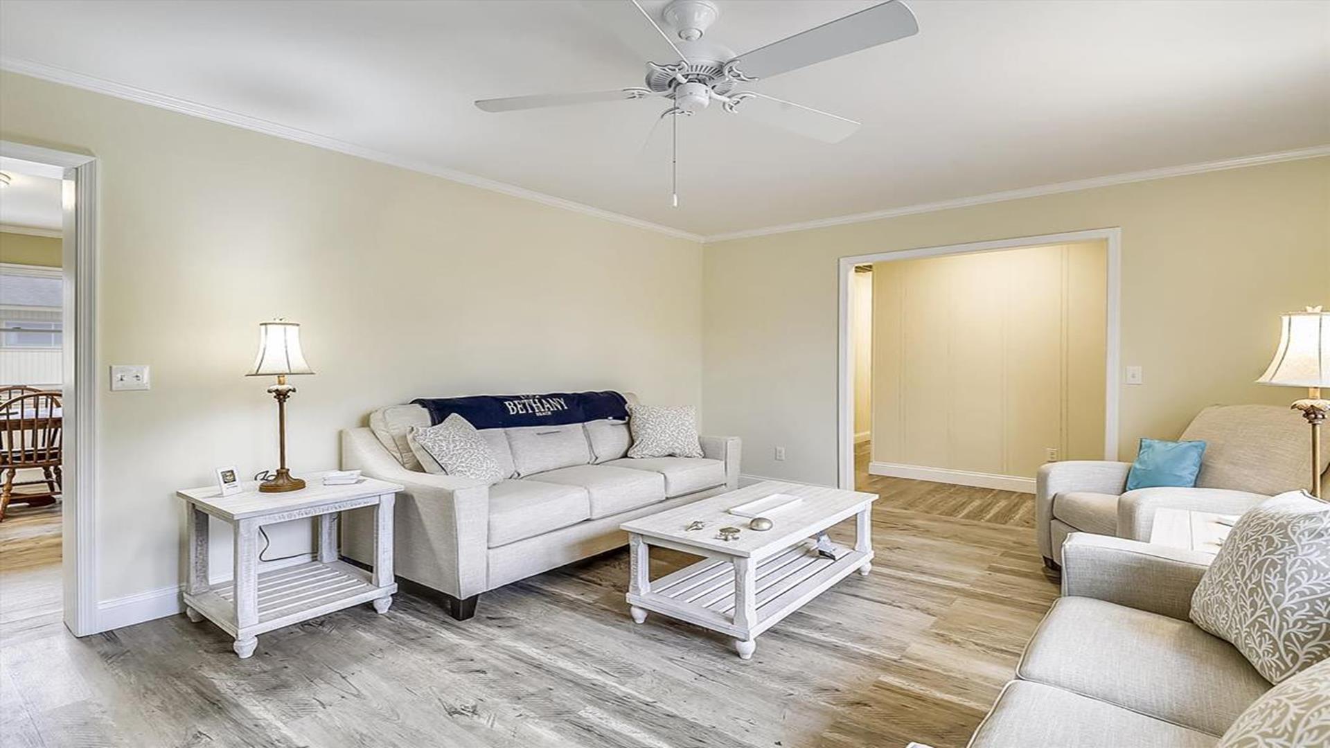 Perfect beach getaway in the charming Town of Bethany Beach! This lovely one-story home in the Bethany West Community is ideal for a relaxing vacation with family or friends. With 3 bedrooms and 2 full bathrooms, this property can comfortably accommodate up to 8 guests. As you step inside, you'll be greeted by a spacious living room and dining area, perfect for gathering and creating lasting memories. The highlight of this home is the huge screened porch on the front, where you can enjoy your morning coffee or unwind after a day at the beach. The two bedrooms feature queen-size beds, providing a cozy retreat for a restful night's sleep. The third bedroom is a fun space for kids or young adults, with a pyramid-style bunk bed that includes a single bed on top, a double bed on the bottom, and a trundle underneath the double bed. Situated on a partially wooded lot, this property offers a tranquil setting for your vacation. It is conveniently located halfway between the two swimming pools and tennis courts in the community, ensuring easy access to recreational amenities. This home comes fully equipped with modern conveniences, including a dishwasher, microwave, coffee maker, central AC, washer, and dryer. Entertainment options abound with two TVs, cable TV, and wireless internet. Outdoor amenities include a screened porch, BBQ charcoal grill, and an outside shower for rinsing off sandy feet. The Bethany West Community also offers additional perks such as an exercise room, association pool, and tennis courts for your enjoyment. Please note that this property does not allow pets. Don't miss out on the opportunity to experience the best of Bethany Beach living in this well-appointed vacation home. Book your stay now and create unforgettable memories by the sea!