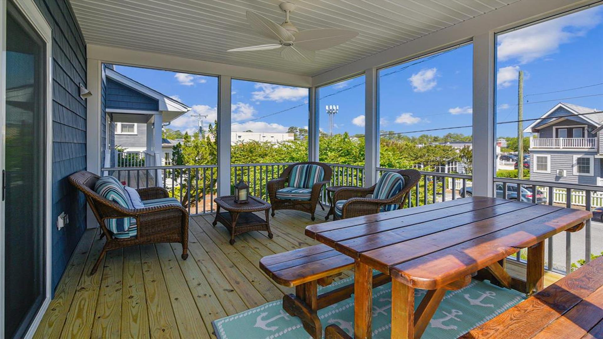 Fantastic location! Just 1 block from the center of town and 1.5 blocks to the beach. 2 Master bedrooms with baths included in this 5 bedroom, 4.5 bath home..This property is the perfect location for a family of 12 to enjoy the best of Bethany Beach. They also have a deck and screened in porch.