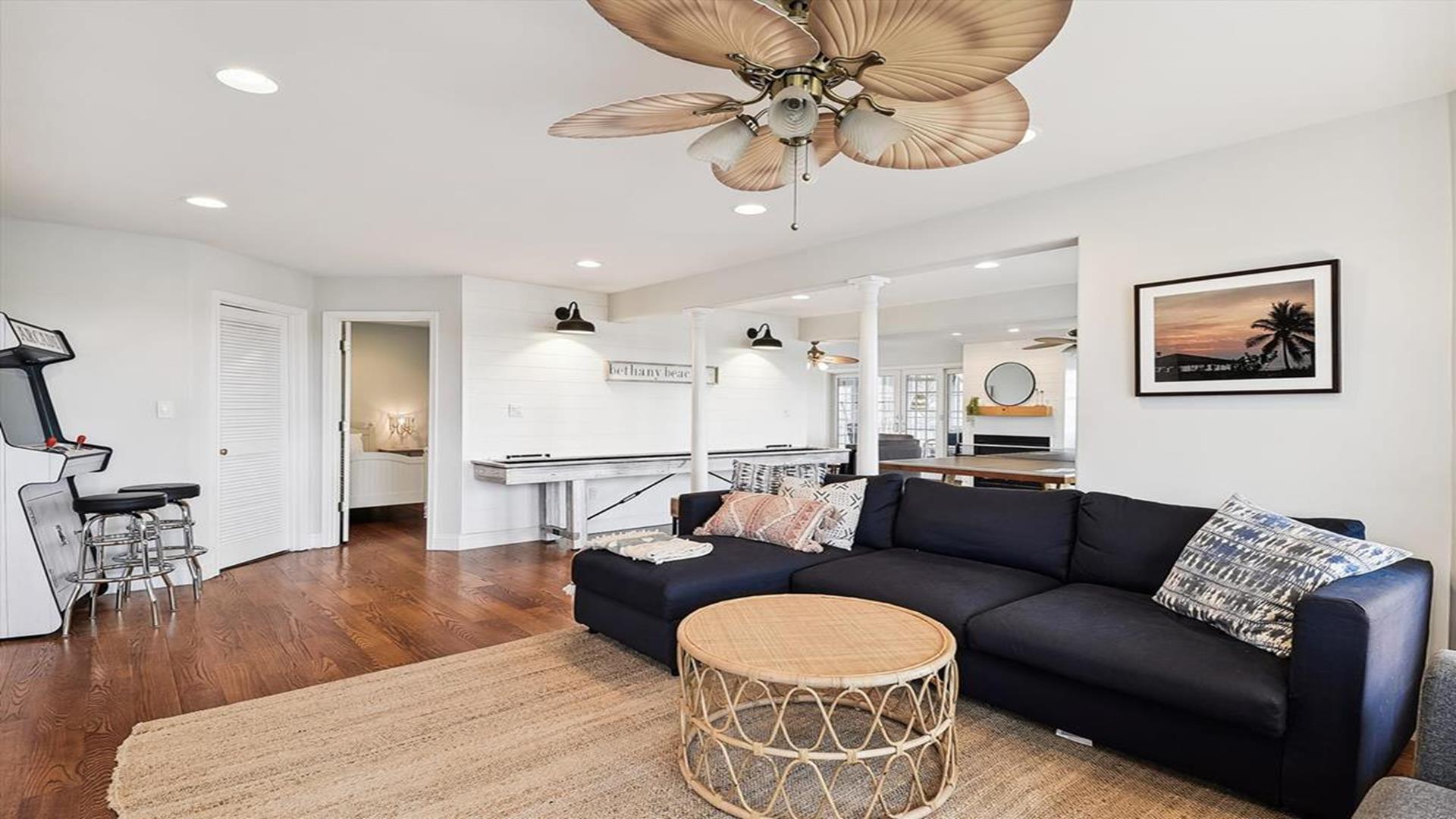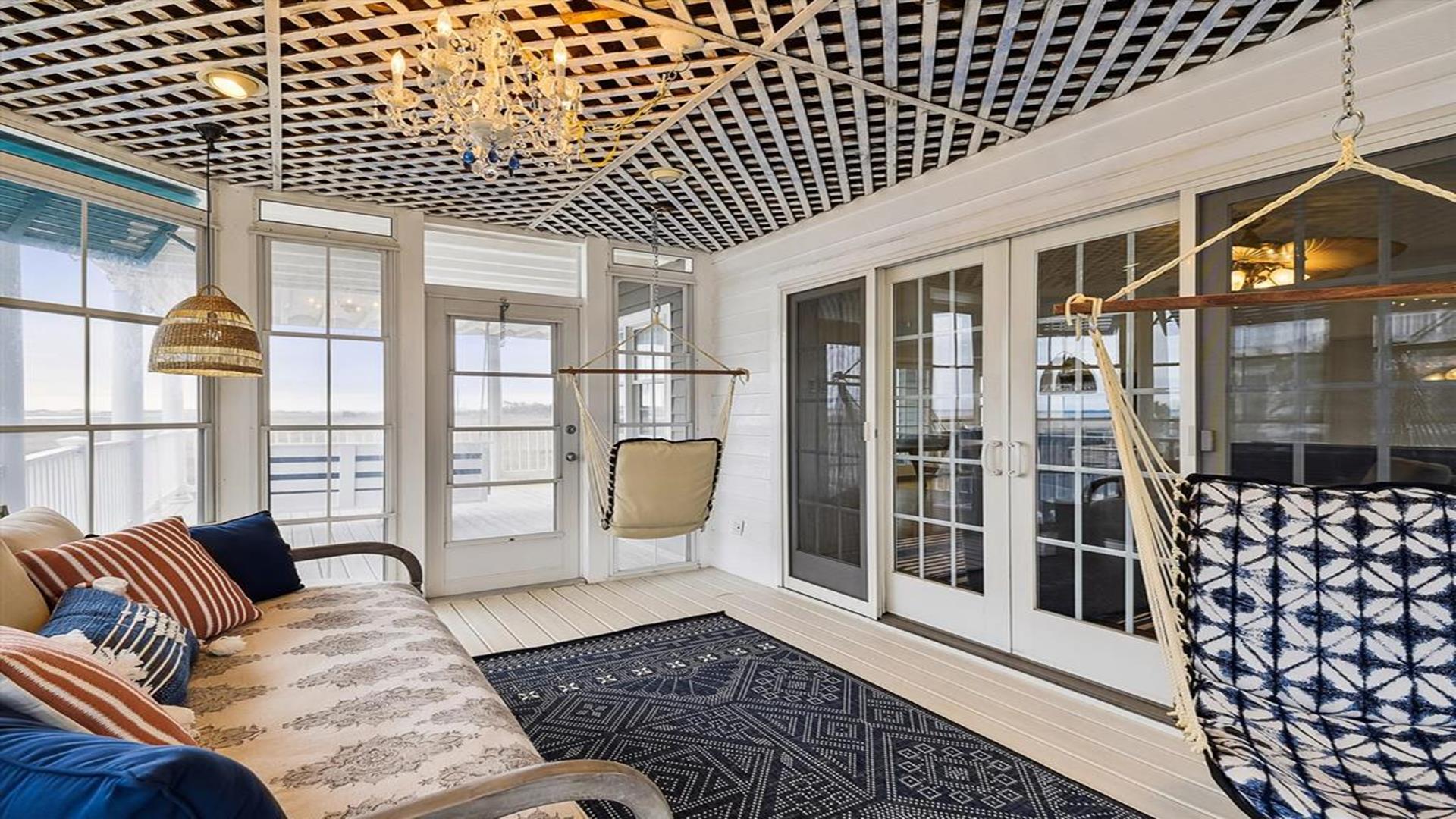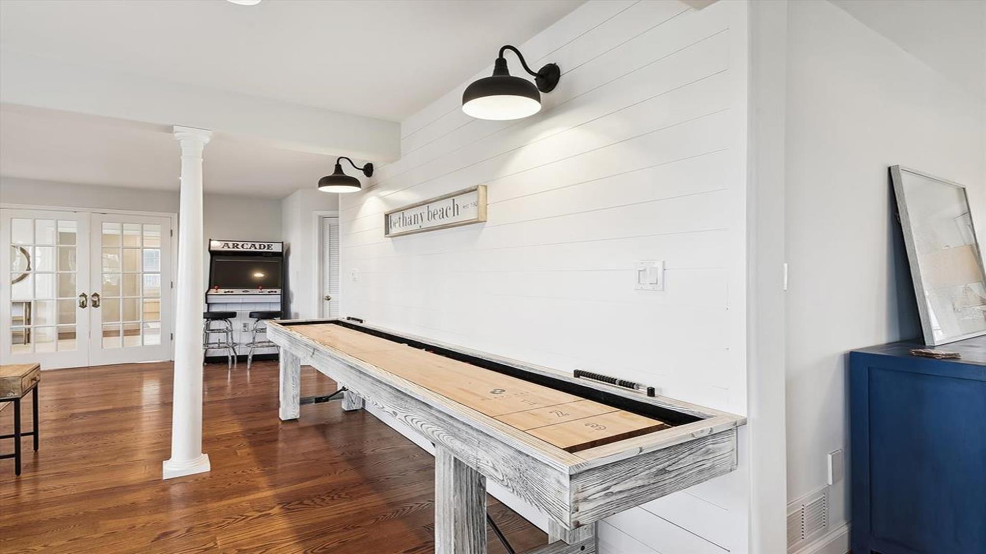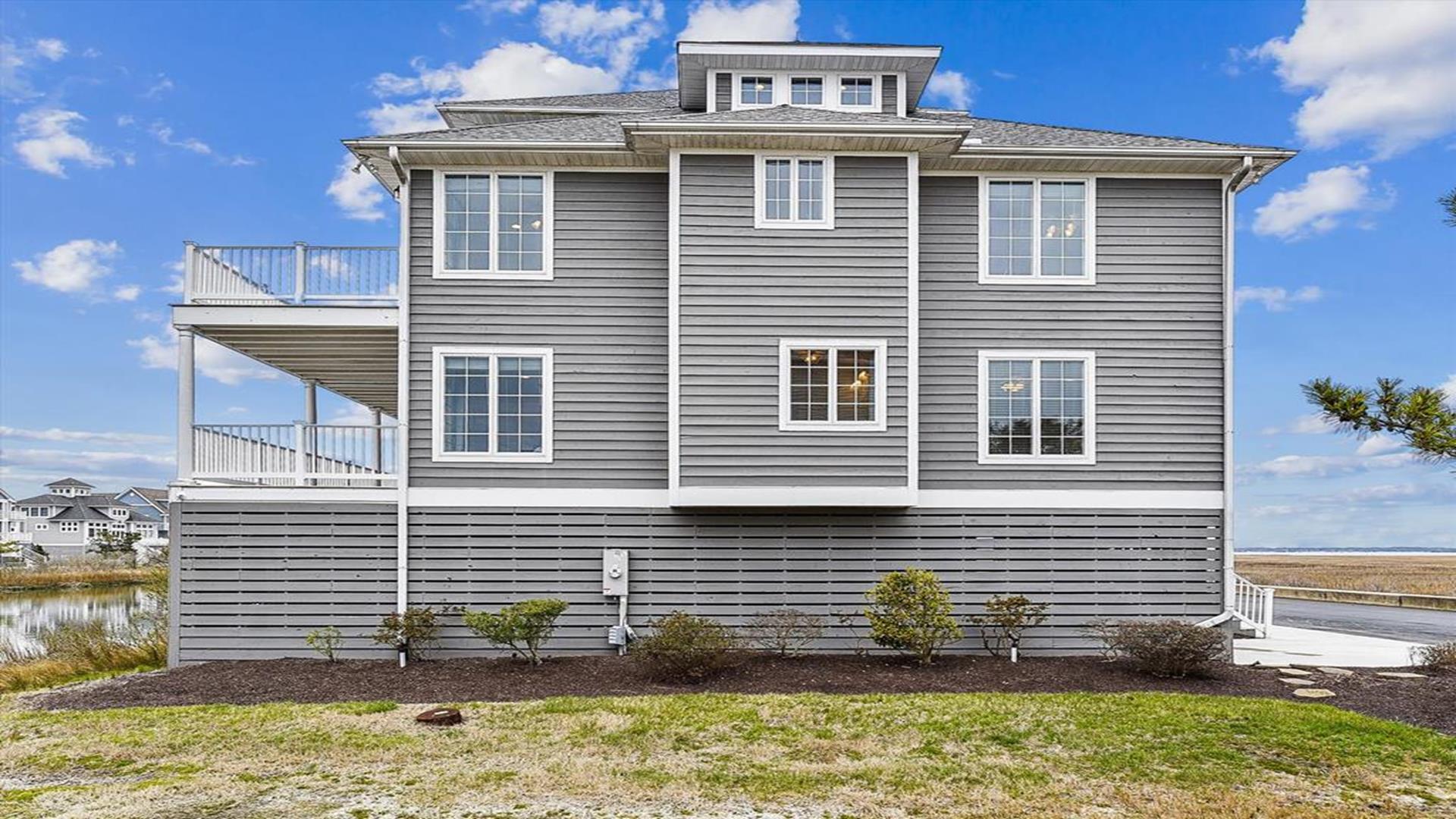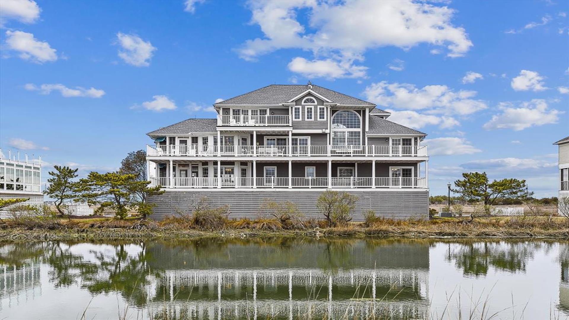 Spectacular waterfront home with incredible views of the Indian River Bay and the Atlantic Ocean! Offering private beach access across Rte 1, it is ideal for water enthusiasts . This home in the Cove in North Bethany, offers over 5,000 square feet of interior space and 3,024 square feet of outdoor decks and living space, perfect for catching glorious sunsets, scenic vistas, and ideal for entertaining.. Every Deck offers a slightly different feel built for enjoyment and relaxation… from Adirondack Chairs, to a swinging daybed, to a hammock. Wherever you are, the views will be breathtaking. The upgraded Second Level kitchen is complete with stainless steel appliances, granite counters, a bar counter top with seating for 5 – as well as a beautiful front dining room with a long 9’ rustic wood table to have meals and be together. Off the Kitchen you can eat or relax on the back deck for beautifully peaceful views or head out into the comfortable screened porch to watch TV and relax on the outdoor couches and chairs. The first level features a Game & TV Room – complete with Ping Pong, Shuffleboard, 2 Player Stand Up 32” LCD Screen Arcade pre-loaded with 4500 Classic Arcade Games, Family Puzzle or Game Table along with a 75” TV to enjoy movies or your favorite sporting event. Four separate Sonos Speakers are placed throughout the house to enjoy separate music wherever you move to. Each of the six bedrooms feature water views and spacious closets & dressers. The third-level owners bedroom suite offers vaulted ceilings, spectacular views of the Ocean & Bay and a luxurious bath with a jacuzzi bathtub and double vanity. A rear private deck off the master bedroom boasts a large hot tub. The King and Queen Bedrooms on the Second-level are enclosed behind glass French doors to provide privacy and quiet. Adjoining the first level Game Room is a custom Built-In Pyramid Bunk Bedroom perfect for 6+ Kids with two Queens & 2 Twins. Also on the first level are two secluded bedrooms featuring a King Bedroom, a double Twin Bedroom, and Bathroom with Jacuzzi Tub & Shower The ground level floor offers expansive running around space for the kids, covered parking for 4-6 vehicles, outdoor shower, and a mini game room with a great Air Hockey Table. As a guest of The Cove you can enjoy the community amenities including tennis, pool, pool house and basketball court. The private location of this residence offers unparalleled wildlife watching, with osprey nests, willets, ducks, geese and eagles; however, it is easy to enjoy exploring nearby Fenwick Island, Dewey & Rehoboth Beach, and Lewes just minutes away!