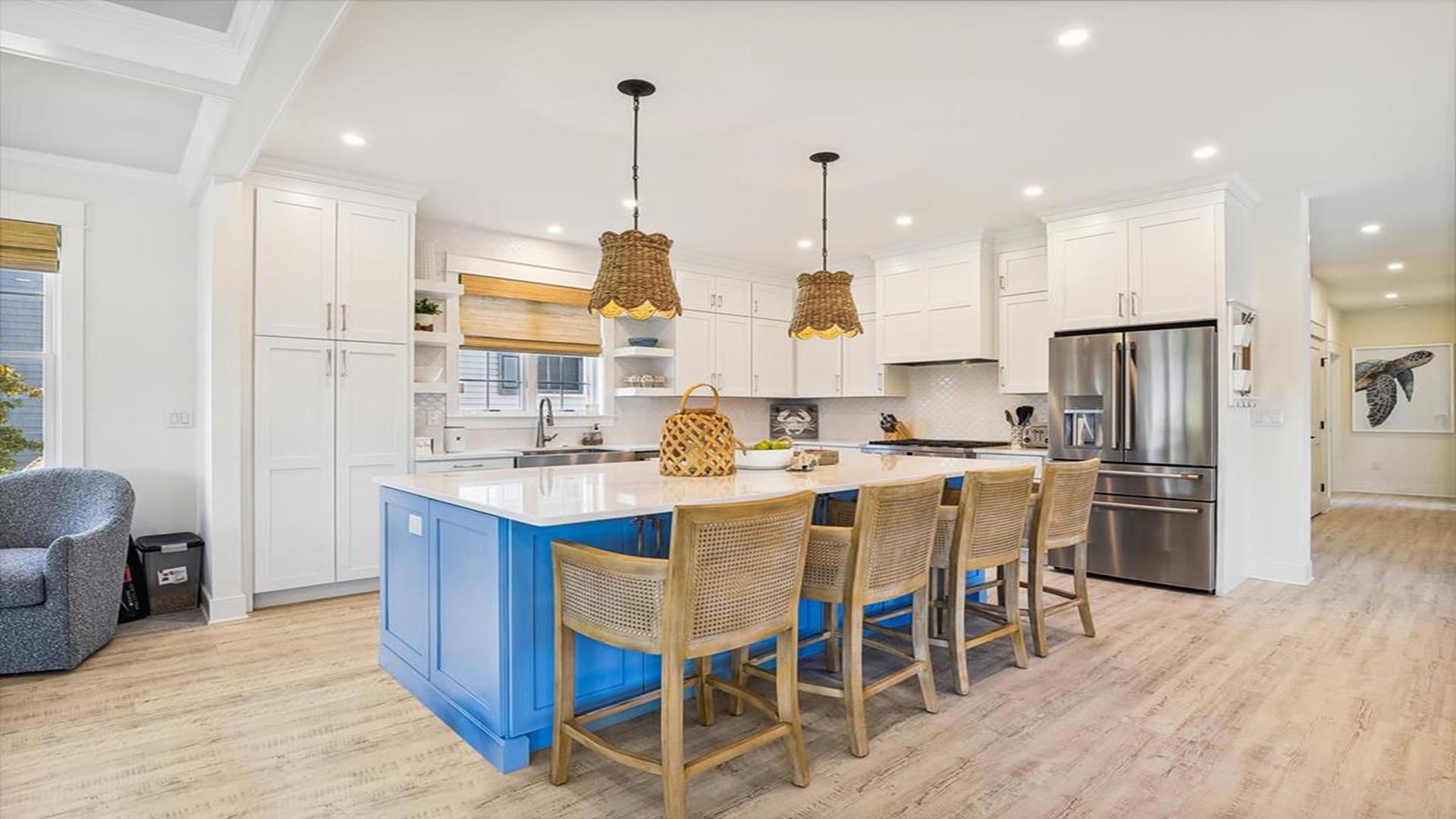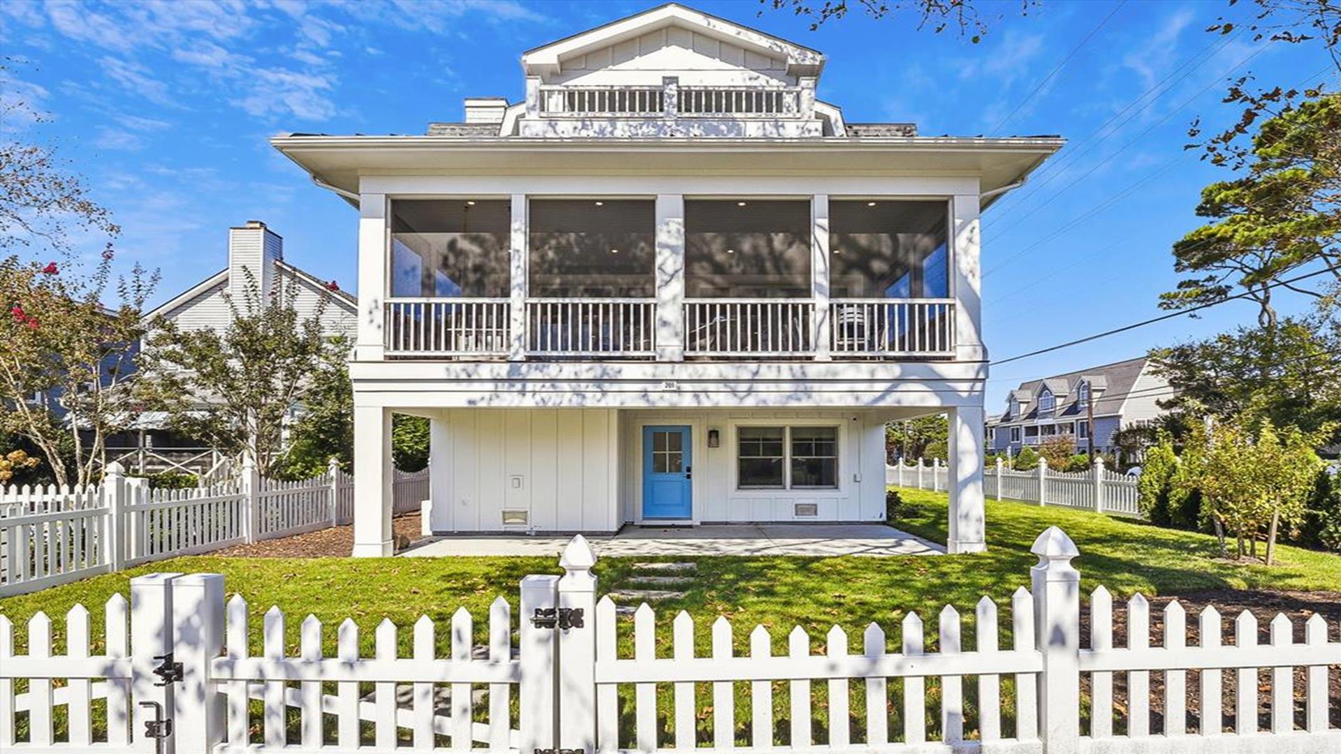 This beautiful, new home is in a fantastic location, just one and a half blocks to the ocean and two blocks to the center of town. Wonderful setting for a family of 14. With 5 bedrooms, 5 full baths and 1 half baths and an elevator plus a large screened porch, 2 decks and two outside showers. Parking for 5 cars.