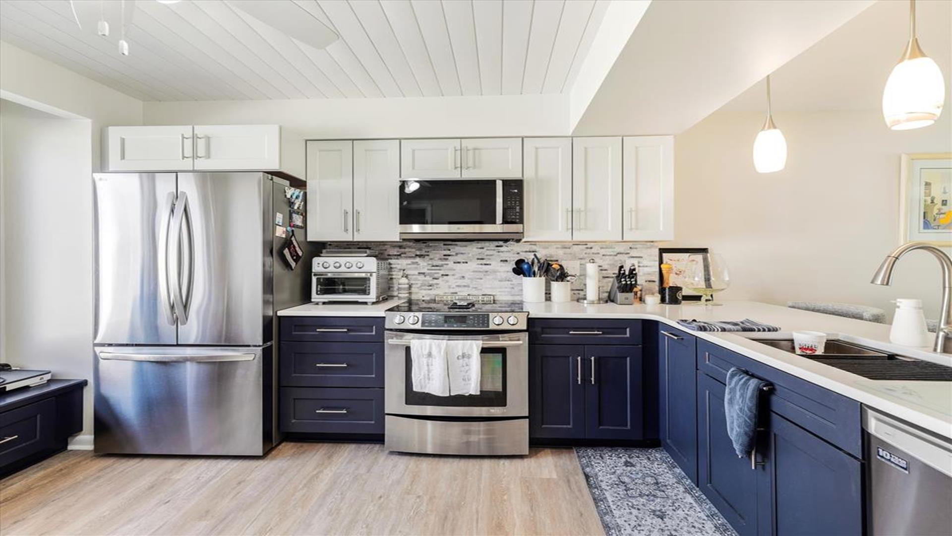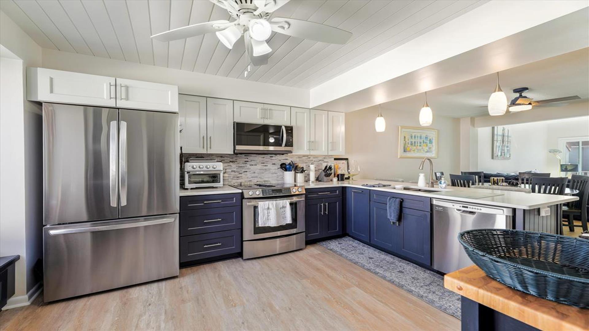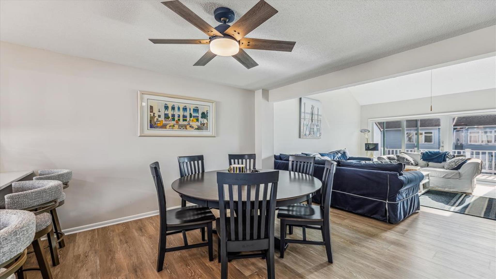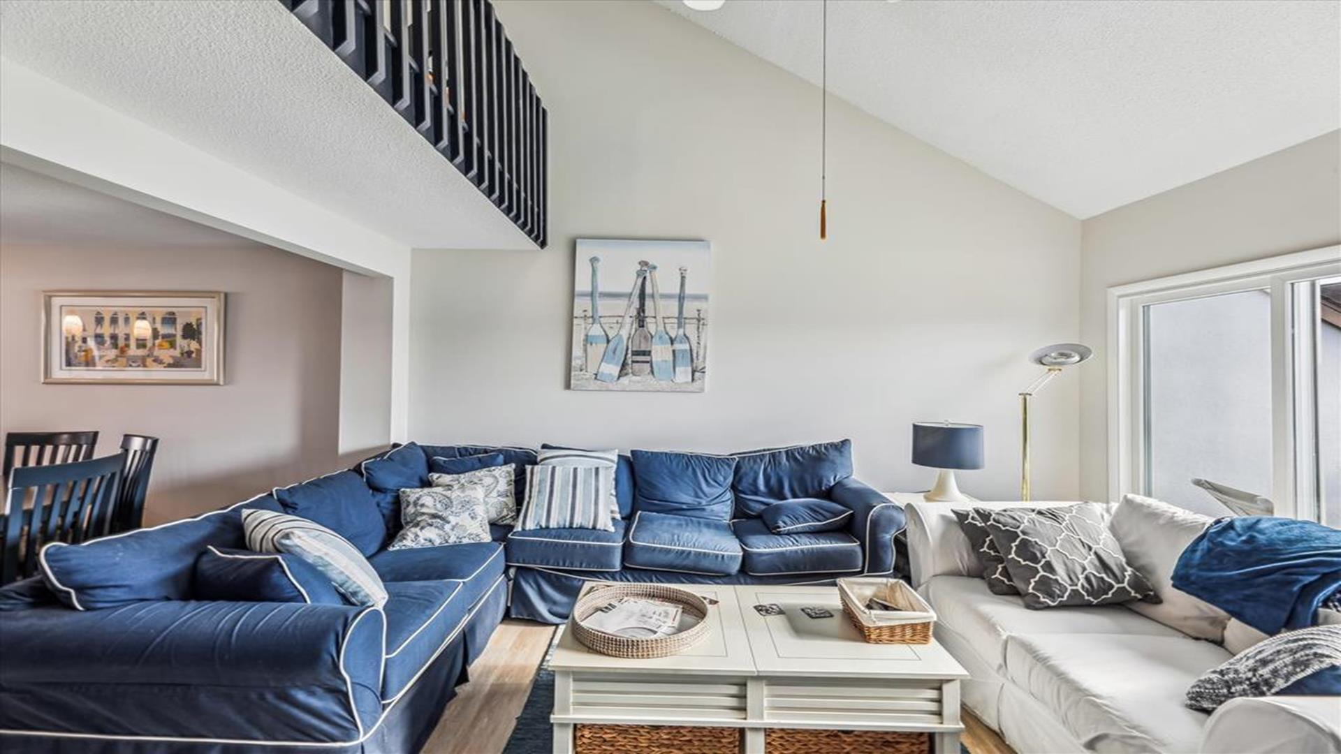 Great space just a block to the Ocean. New kitchen appliances, fresh painting throughout. 4 bedrooms, 3 full baths & 1 half baths. Central A/C, Washer/dryer, dishwasher. 4th bedroom is located on the ground level with separate entrance set up as efficiency from the main townhouse .Upper deck-round dining, 4 chairs, Chaise Master deck-couch, Adirondack chairs/table Carport- picnic table with the grill New patio off the efficiency area. One block to ocean.