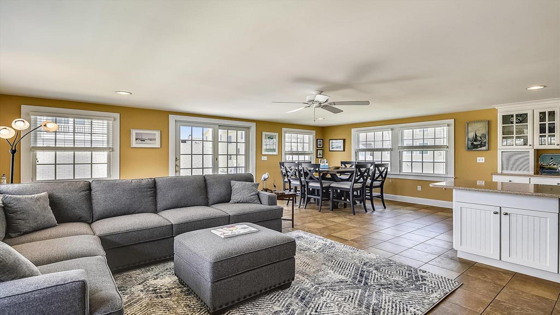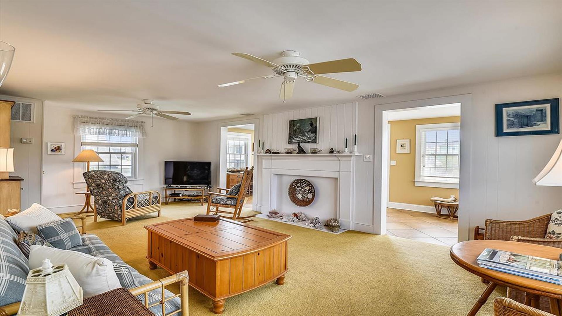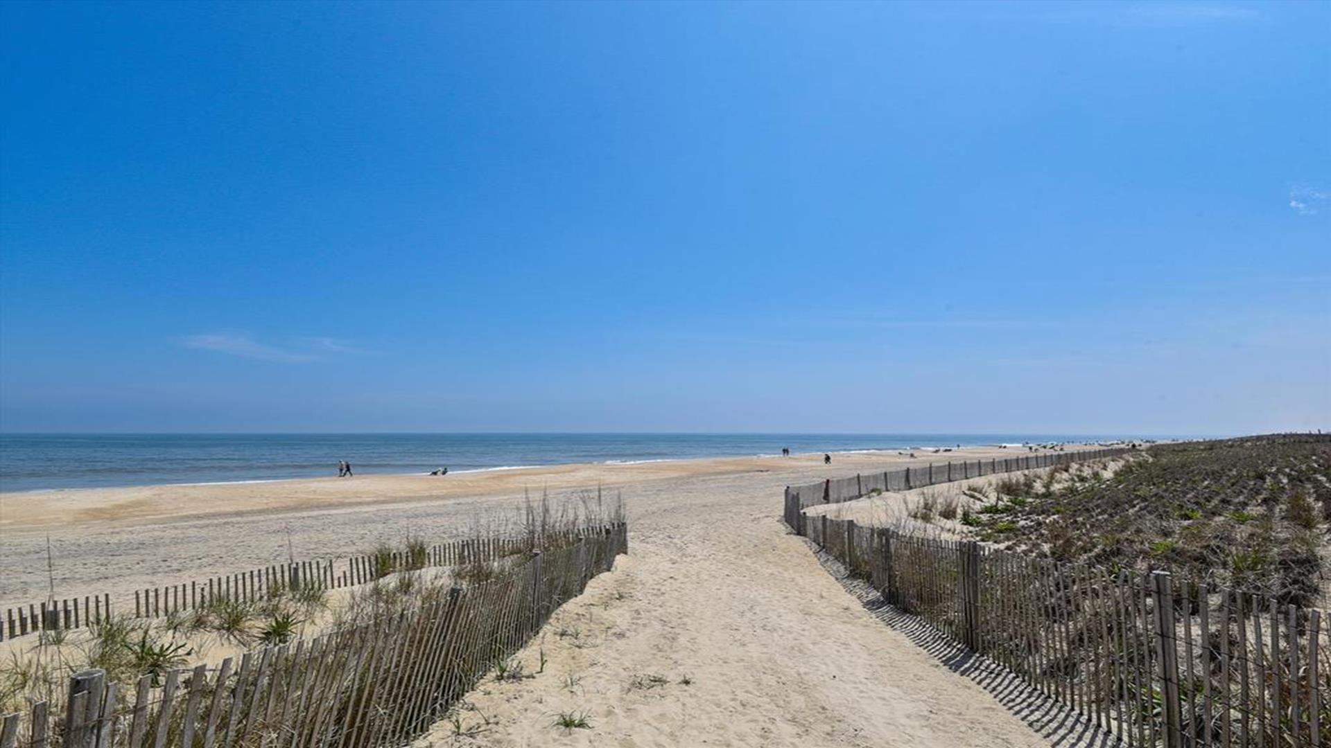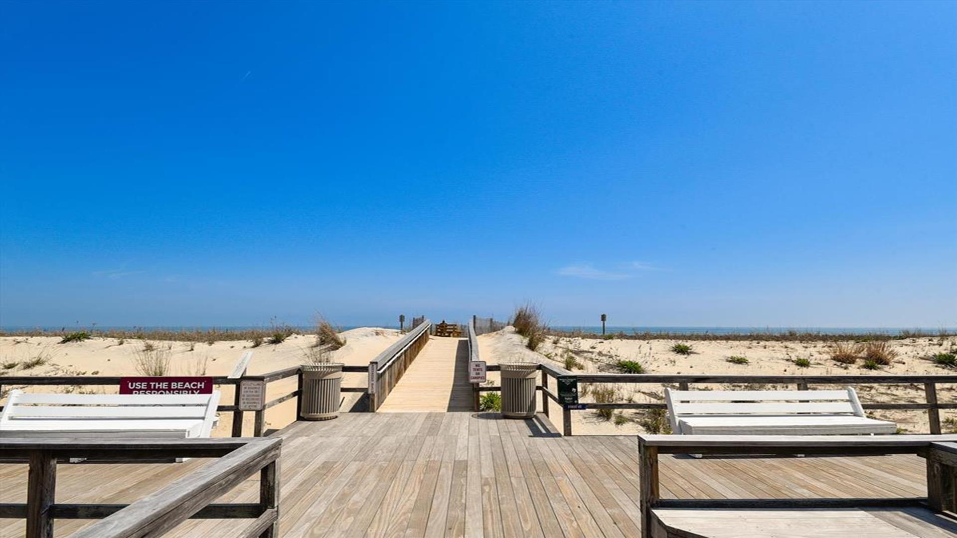Bethany Beach! This spacious 4-bedroom, 2-bathroom home is just steps away from the ocean, offering the perfect location for a family of 8 to enjoy a relaxing vacation. As you step inside, you'll be greeted by a beautifully furnished living room with creating a cozy and inviting atmosphere for gatherings. The open floor plan features multiple den areas, providing ample space for everyone to spread out and unwind. The well-equipped kitchen boasts modern appliances and a dining area that seats 8, perfect for enjoying home-cooked meals together. The sleeping arrangements include a queen bed, a double bed, four single beds, and a double sofa bed, accommodating a total of 10 guests comfortably. With two full bathrooms, getting ready for a day at the beach or a night out is a breeze. This property is packed with amenities to enhance your stay, including central AC, ceiling fans, a washer and dryer, parking for 4 vehicles, cable TV, high-speed internet, and a gas BBQ grill for cookouts. After a day of sun and sand, rinse off in the convenient outdoor shower. Don't miss the chance to experience all that this must-see property has to offer. Book your stay today and create unforgettable memories in this beachside oasis.