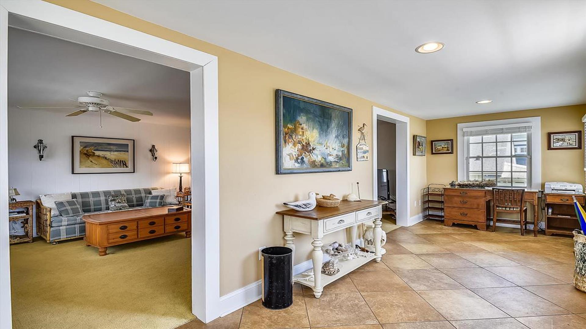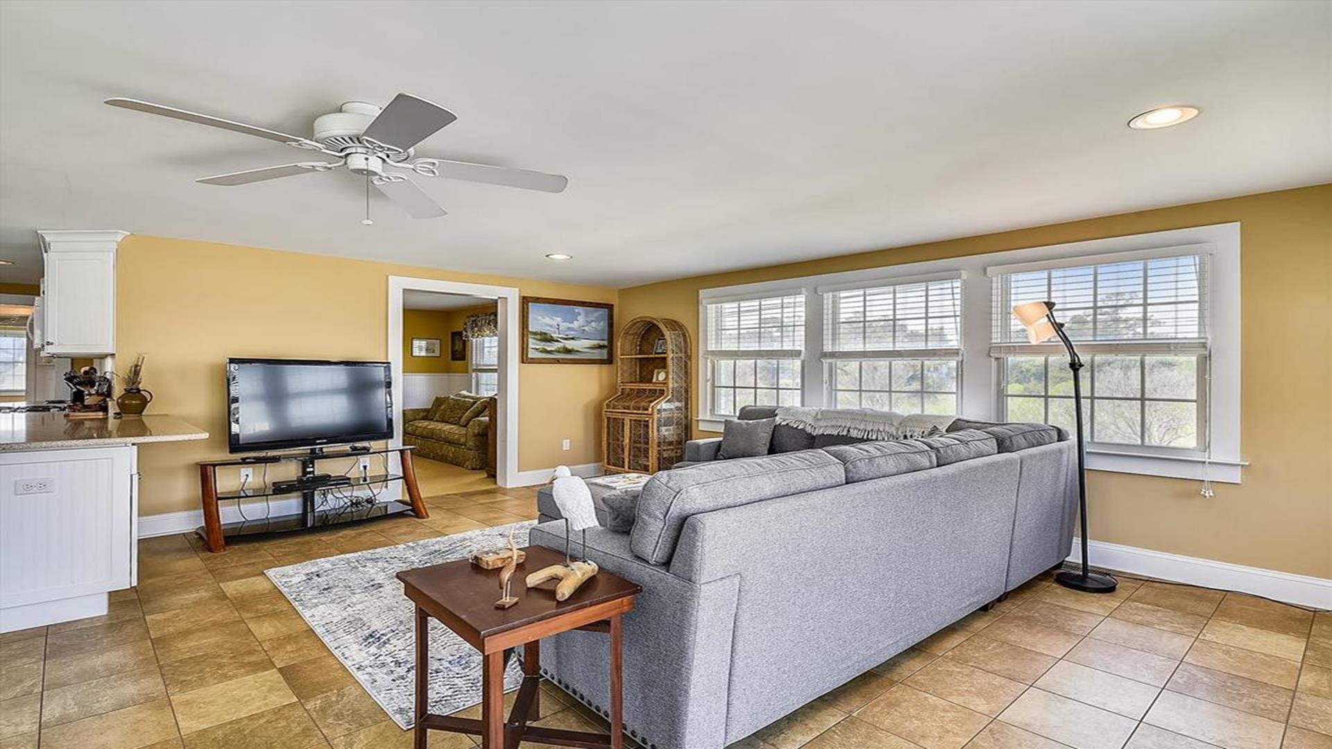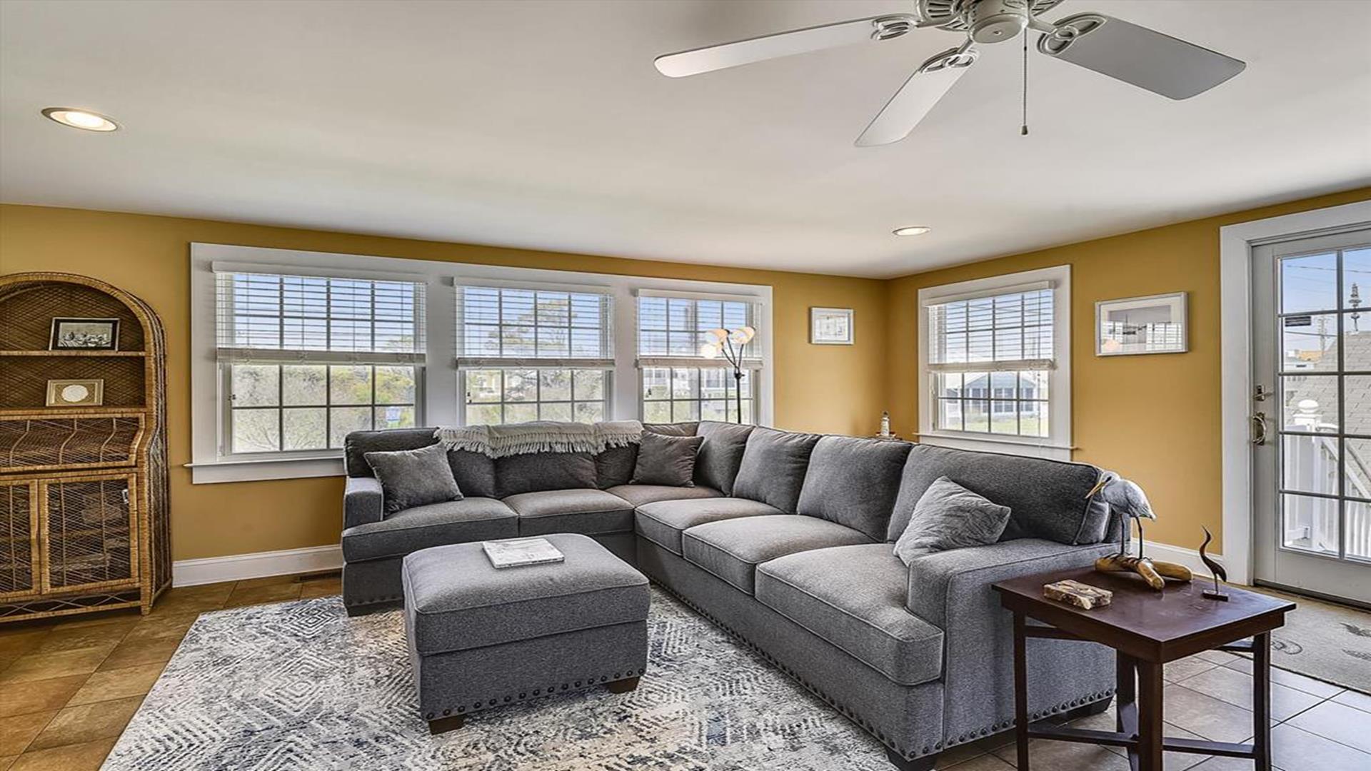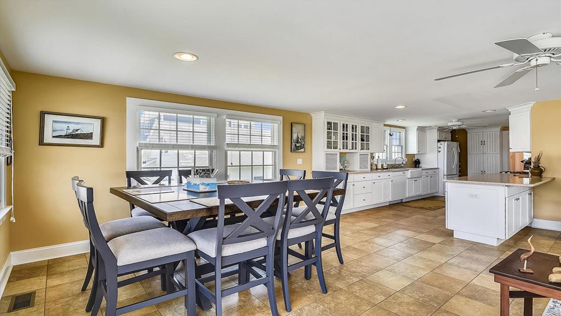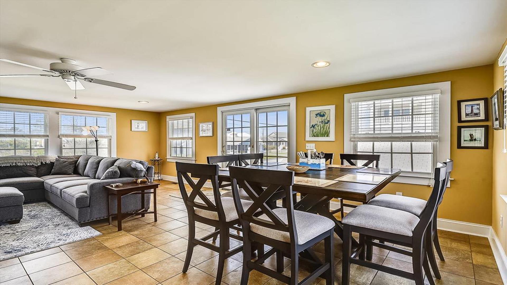 Bethany Beach! This spacious 4-bedroom, 2-bathroom home is just steps away from the ocean, offering the perfect location for a family of 8 to enjoy a relaxing vacation. As you step inside, you'll be greeted by a beautifully furnished living room with creating a cozy and inviting atmosphere for gatherings. The open floor plan features multiple den areas, providing ample space for everyone to spread out and unwind. The well-equipped kitchen boasts modern appliances and a dining area that seats 8, perfect for enjoying home-cooked meals together. The sleeping arrangements include a queen bed, a double bed, four single beds, and a double sofa bed, accommodating a total of 10 guests comfortably. With two full bathrooms, getting ready for a day at the beach or a night out is a breeze. This property is packed with amenities to enhance your stay, including central AC, ceiling fans, a washer and dryer, parking for 4 vehicles, cable TV, high-speed internet, and a gas BBQ grill for cookouts. After a day of sun and sand, rinse off in the convenient outdoor shower. Don't miss the chance to experience all that this must-see property has to offer. Book your stay today and create unforgettable memories in this beachside oasis.