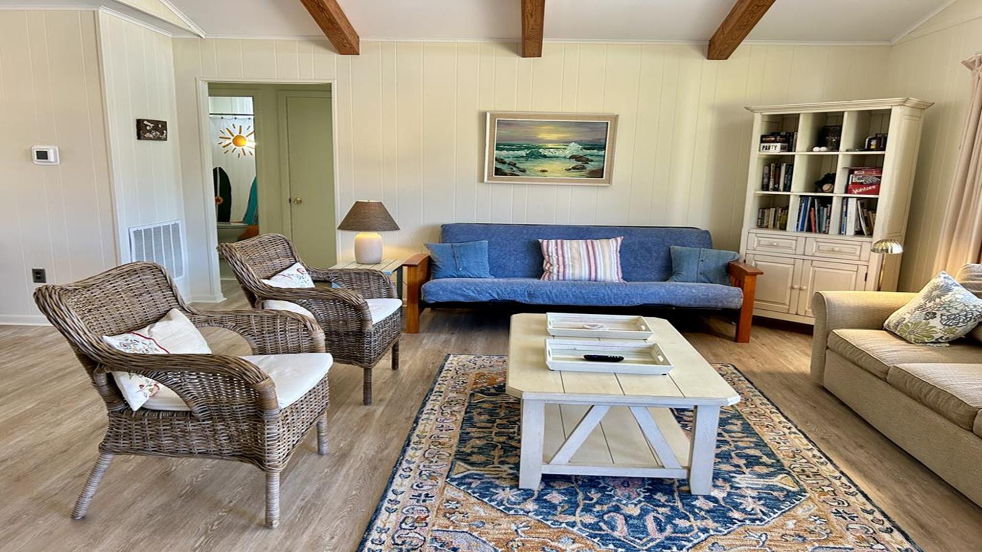 Welcome to Nana's Cabana, a charming 4-bedroom, 2-bathroom retreat in the sought-after Bethany West community of Bethany Beach. This cozy abode can comfortably accommodate up to 9 guests, making it the perfect getaway for families or groups of friends looking to enjoy a beach vacation. Located just a stone's throw away from the sandy shores, Nana's Cabana offers the ideal beachside escape. With parking passes included, you'll have no trouble finding a spot for your vehicle. Plus, with easy access to the Bethany Beach Trolley, which runs every 20 minutes, getting around town is a breeze. The Bethany West community boasts an array of top-notch amenities for an additional fee, including pickleball courts, tennis courts, and two sparkling pools where you can soak up the sun and take a refreshing dip. Inside Nana's Cabana, you'll find a well-equipped kitchen complete with modern appliances such as a dishwasher, microwave, coffee maker, and toaster, making meal prep a breeze. The open-concept living and dining area is the perfect spot to unwind after a day at the beach, with comfortable seating and a Smart TV for entertainment. The sleeping arrangements at Nana's Cabana include 2 queen beds, 1 double bed, and 3 single beds, ensuring that everyone has a cozy spot to rest their head. The property also features amenities such as a washer and dryer, iron, ironing board, and wireless internet for your convenience. Step outside to enjoy the fresh sea breeze on the open or covered porch, or relax in the screened-in porch with a good book. Fire up the gas BBQ for a cookout with friends and family, or rinse off the sand from the beach in the convenient outdoor shower. Nana's Cabana is a pet-free and smoke-free property, ensuring a clean and comfortable environment for all guests. Linens are not provided, so be sure to bring your own. Utilities are included for your convenience. Don't miss out on the opportunity to stay at Nana's Cabana and experience the best of beach living in Bethany Beach. Book your stay today and start counting down the days until your relaxing beach getaway!