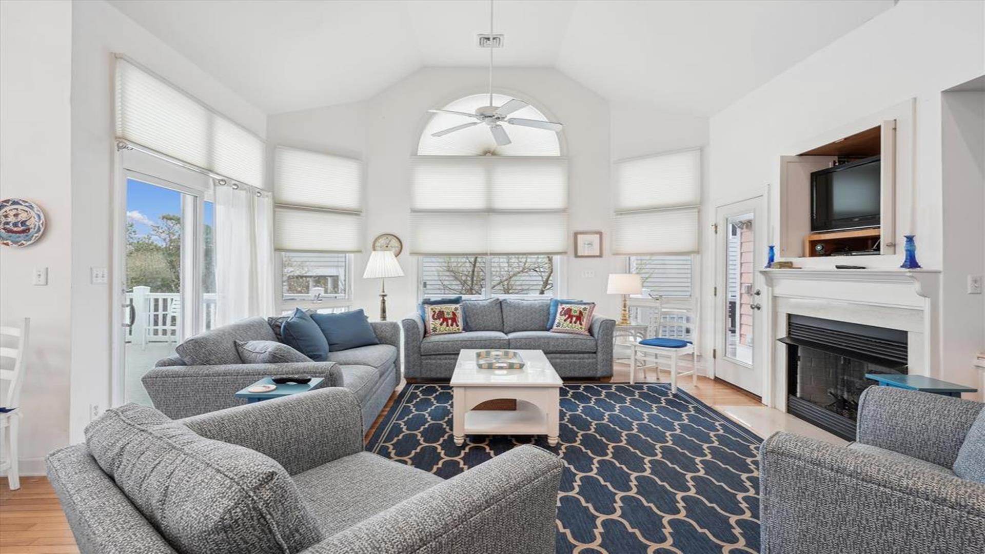 Exclusive gated community to the North of the Town of North Bethany Beach! This stunning 5-bedroom, 4.5-bathroom home is just two houses away from the ocean, offering close proximity to the beach and refreshing sea breezes. Step inside this comfortable and beautifully furnished home to find a spacious great room and dining area on the upper level, complete with a glass-enclosed porch for enjoying the ocean vistas. The inverted floor plan maximizes natural light and provides a bright, airy atmosphere throughout. The primary suite boasts a private den for added relaxation and privacy. This property is equipped with all the modern conveniences you could need, including dual-zone central air conditioning, wireless internet, and multiple TVs for entertainment. The screened wraparound decks feature fans and lights, creating the perfect setting for outdoor dining or simply unwinding after a day at the beach. With sleeping accommodations for up to 12 guests, including a king bed, queen bed, double beds, and single beds, this home is ideal for large families. The property also features a loft, den, and three-season room, providing plenty of space for everyone to spread out and relax. Outside, you'll find a gas BBQ grill for cookouts, as well as an outdoor shower for rinsing off sandy toes. Parking is a breeze with space for up to 5 vehicles. Located in one of the quietest beach communities in Bethany, you'll have direct access to the pristine sands just steps from your front door. Don't miss this opportunity to experience luxury beach living at its finest! Please note that this property does not allow pets and tenants are required to bring their own linens. All utilities are included for your convenience. Book your stay today and start making memories that will last a lifetime!