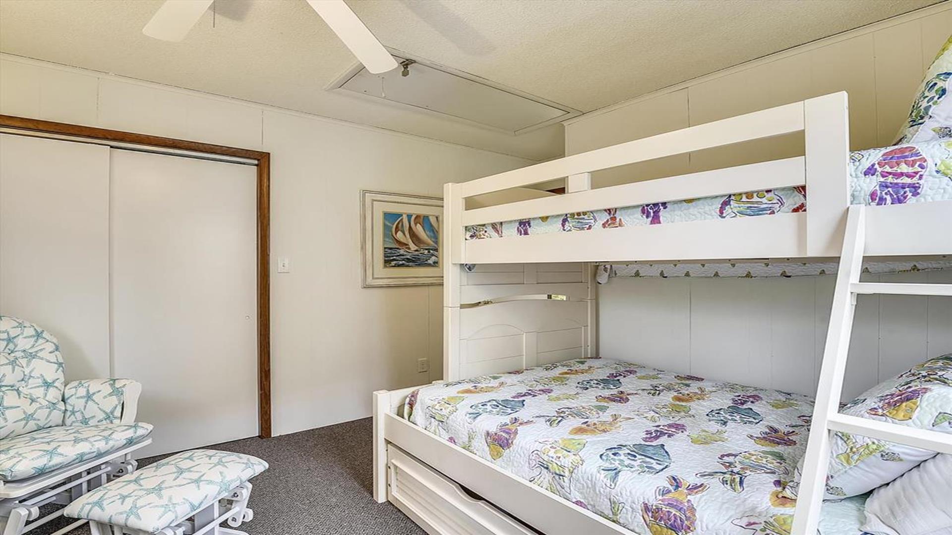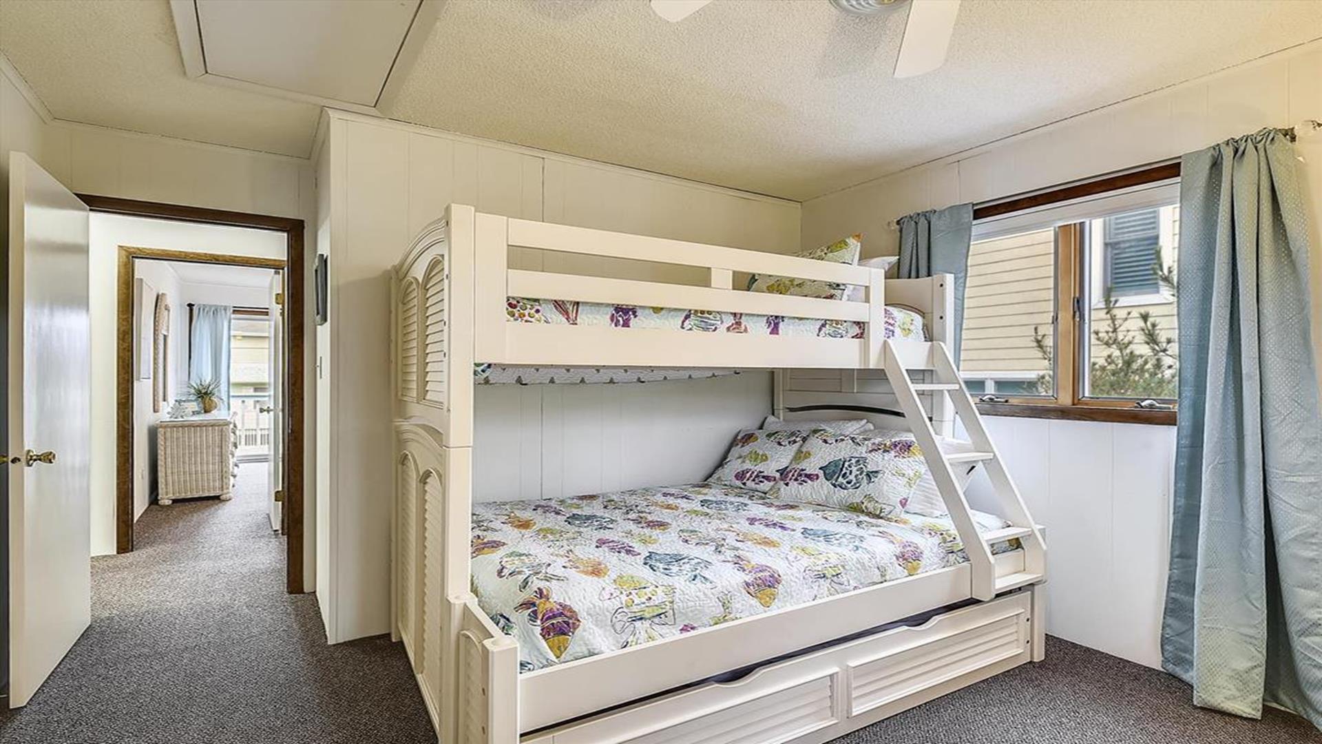 South Bethany Beach! This property is just steps away from the ocean, offering you the perfect beach getaway for up to 12 guests. With 4 spacious bedrooms and 2 full bathrooms, this ocean block retreat provides ample space for your family and friends to relax and unwind. The sleeping arrangements include 3 Queen beds, 1 Sofa bed, 1 Trundle bed, 1 Rollaway bed, and 1 Pyramid bed, ensuring everyone has a comfortable place to rest after a day of sun and sand. Inside, you'll find a well equipped kitchen with nice appliances such as a dishwasher, microwave, coffee maker, and toaster, making meal preparation a breeze. The open living area is tastefully decorated and features a Smart TV for your entertainment needs. Central AC and ceiling fans throughout the property keep you cool and comfortable during your stay. Step outside to enjoy the fresh sea breeze on one of the two decks or the screened porch, complete with deck furniture and a gas BBQ for al fresco dining. After a day at the beach, rinse off in the convenient outdoor shower before heading inside. This rental is pet-free and smoke-free, ensuring a clean and comfortable environment for all guests. Parking is a breeze with 7 parking spaces available. Other amenities include a washer, dryer, iron, ironing board, vacuum cleaner, DVD player, and wireless internet. Don't miss out on the opportunity to create lasting memories at this South Bethany Beach family cottage. Book your stay today and experience the ultimate beach vacation!