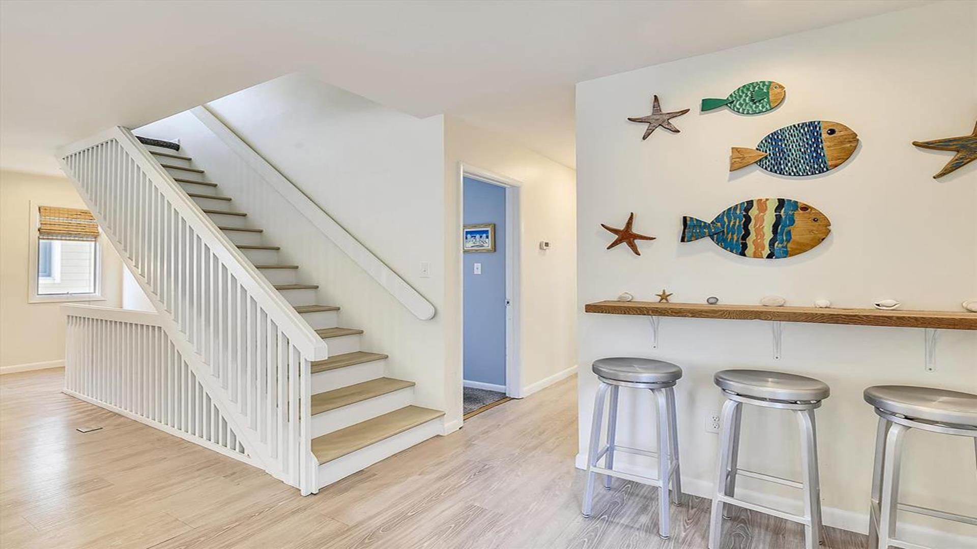 Welcome to this stunning 5-bedroom, 4.5-bathroom vacation rental with an elevator in the sought-after East of Route 1 area of Bethany Beach, as featured on DIY Channel! This spacious property can comfortably accommodate up to 12 guests, making it the perfect retreat for large families or groups of friends. Owner provides beach chairs and umbrellas (good ones!), 2 beach carts. They will be available as long as tenants keep them in good condition. Owner also has a tesla charger As you step inside, you'll be greeted by a beautifully furnished interior featuring 1 King Bed, 3 Queen Beds, a trundle comprised of 1 Double Bed / 1 Single Bed, and 1 Queen Sofa Bed, and ensuring a restful night's sleep for everyone. The open-concept living area is perfect for gathering together, with a cozy fireplace and a Smart TV for entertainment. The fully equipped kitchen boasts modern appliances including a dishwasher, microwave, coffee maker, toaster, blender, and Keurig, making meal preparation a breeze. Enjoy your culinary creations at the dining table with seating for 12 guests. Step outside to relax on the deck or screened porch, fire up the BBQ grill for a cookout, or rinse off in the convenient outdoor shower after a day at the beach. With 2 decks, you'll have plenty of space to soak up the sun and enjoy the fresh sea breeze. Additional amenities include central AC, a washer and dryer, iron, ironing board, vacuum cleaner, parking for 4 vehicles, 3 Smart TVs, 3 DVDs, and wireless internet access. Linens are not provided, so be sure to bring your own. Located just a short distance from the beach, shops, and restaurants, this vacation rental offers the perfect blend of convenience and comfort for your Bethany Beach getaway. Please note that pets are not allowed, and this is a smoke-free property. Don't miss out on the opportunity to experience the ultimate beach vacation at this exceptional property. Book your stay today and create unforgettable memories with your loved ones!
