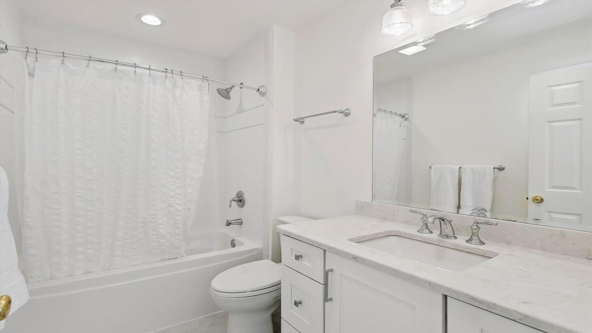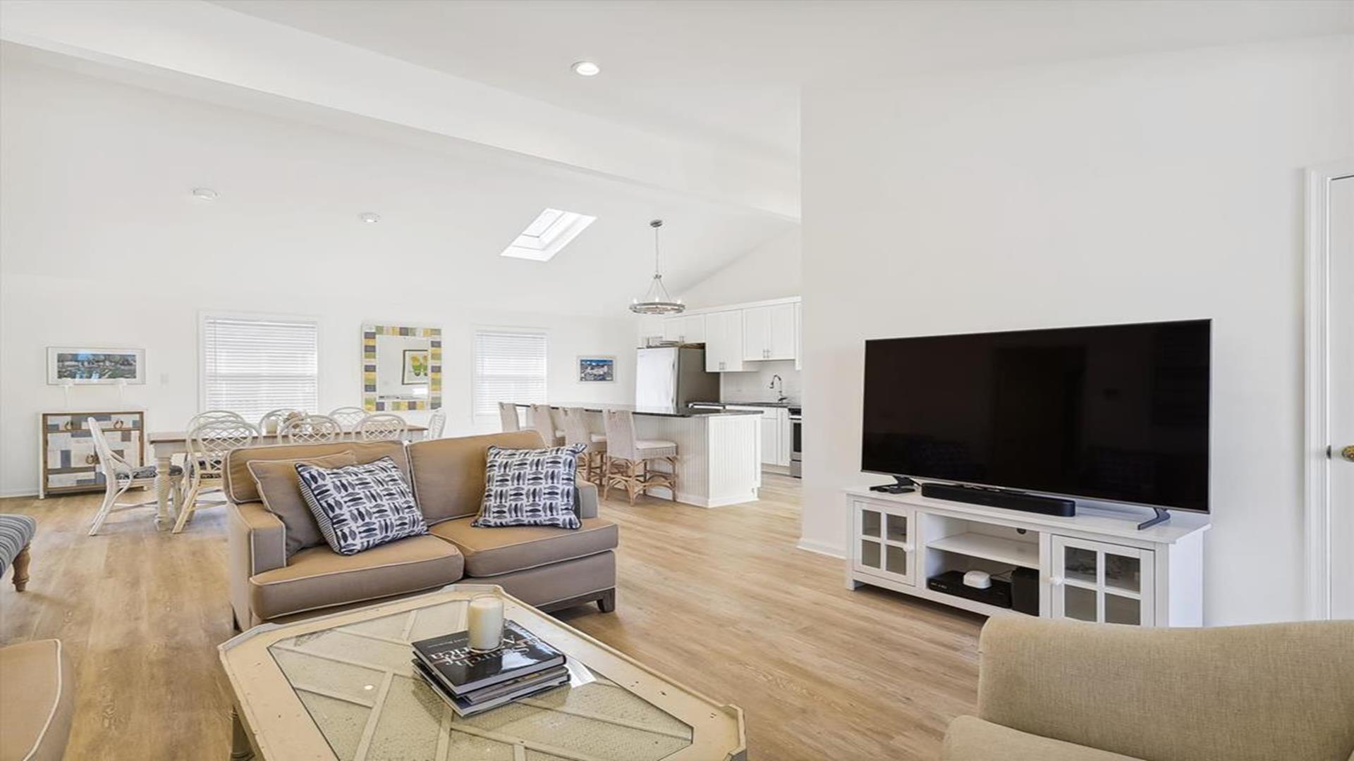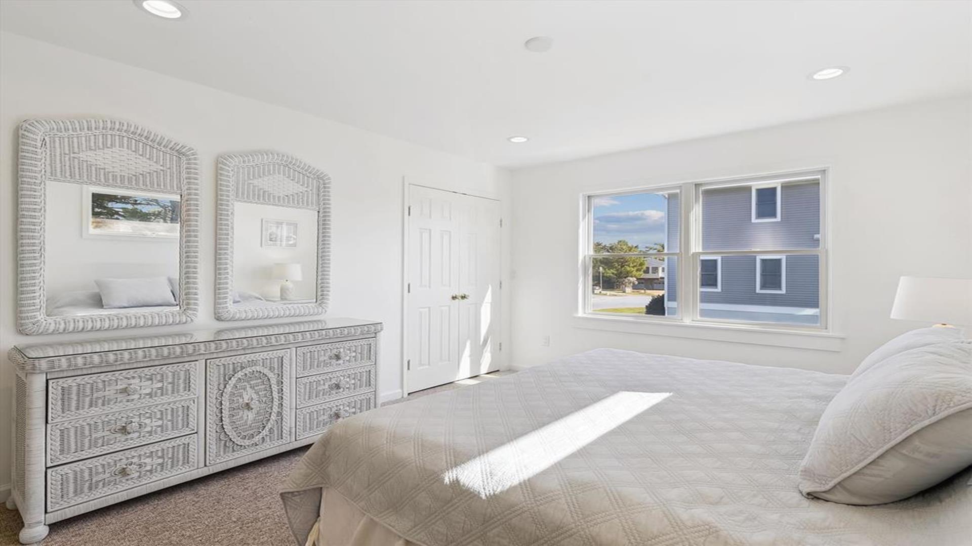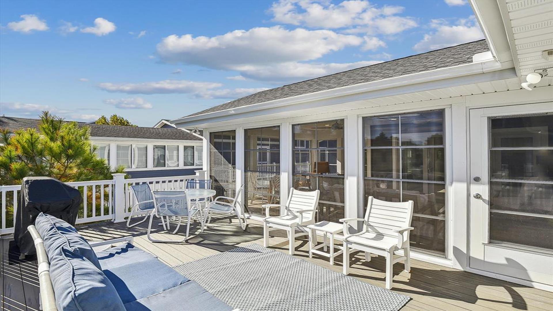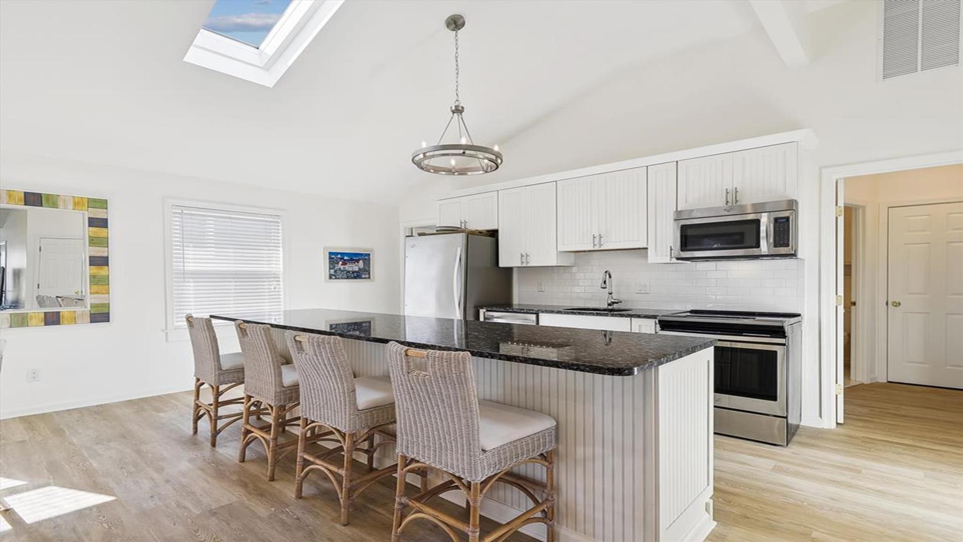 Welcome to yourvacation home in the charming Town of Bethany Beach, just a stone's throw away from the picturesque Ocean View Parkway. This newly remodeled gem is a spacious 5-bedroom, 4-bathroom haven that can comfortably accommodate up to 10 guests. Step inside to discover a sunlit open concept living space that seamlessly blends the kitchen, dining, and living areas. The layout offers the perfect balance of privacy with two distinct bedroom wings. The west end boasts 3 inviting bedrooms and 2 full baths, while the all-new east addition features 2 luxurious primary suites with their own private bathrooms. Entertainment abounds in the new three-season room, complete with a 65” smart TV and a game table for endless fun. Step outside onto the expansive sun deck, ideal for grilling and socializing under the sun. This stunning home is adorned with new flooring, a full-sized LG washer and dryer, a 10’ kitchen island/breakfast bar, built-in desk/charging station, and two 65” smart TVs for your viewing pleasure. Additionally, two brand-new outdoor showers and ample parking add to the convenience and comfort of your stay. Nestled in The Canal neighborhood, just 4 blocks from the beach, 335 Seabreeze offers a peaceful retreat with a large yard on a corner lot. Enjoy the tranquility of the area while being within walking distance to the beach and town. For added convenience, the free Bethany Beach Trolley stops right at your doorstep. This property is fully equipped with 1 King Bed, 2 Queen Beds, 3 Single Beds, 1 Bunk Bed, and 1 Portable Crib. Amenities include a dishwasher, microwave, central AC, washer, dryer, cable TV, gas BBQ, and more. Please note that this is a smoke-free property and pets are not allowed. Don't miss out on the opportunity to create lasting memories in this exquisite vacation home. Book your stay at 335 Seabreeze today and experience the best of Bethany Beach living!