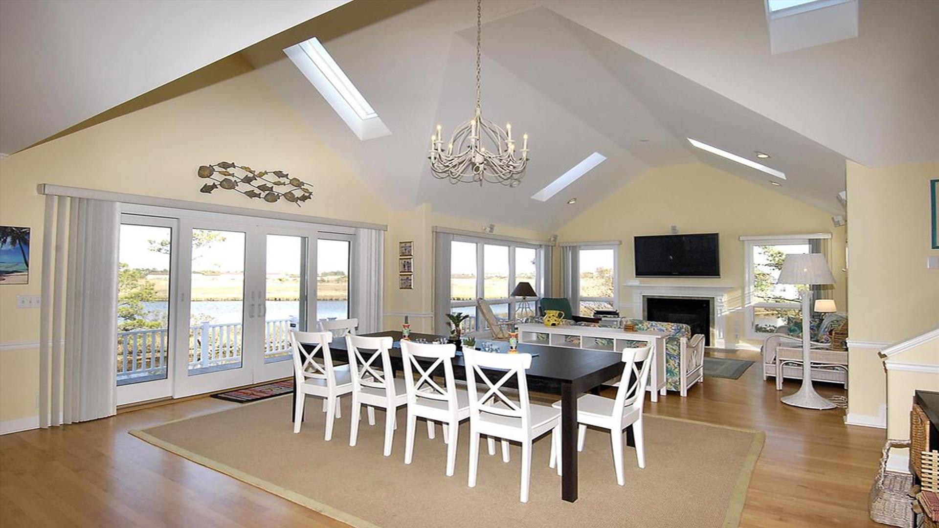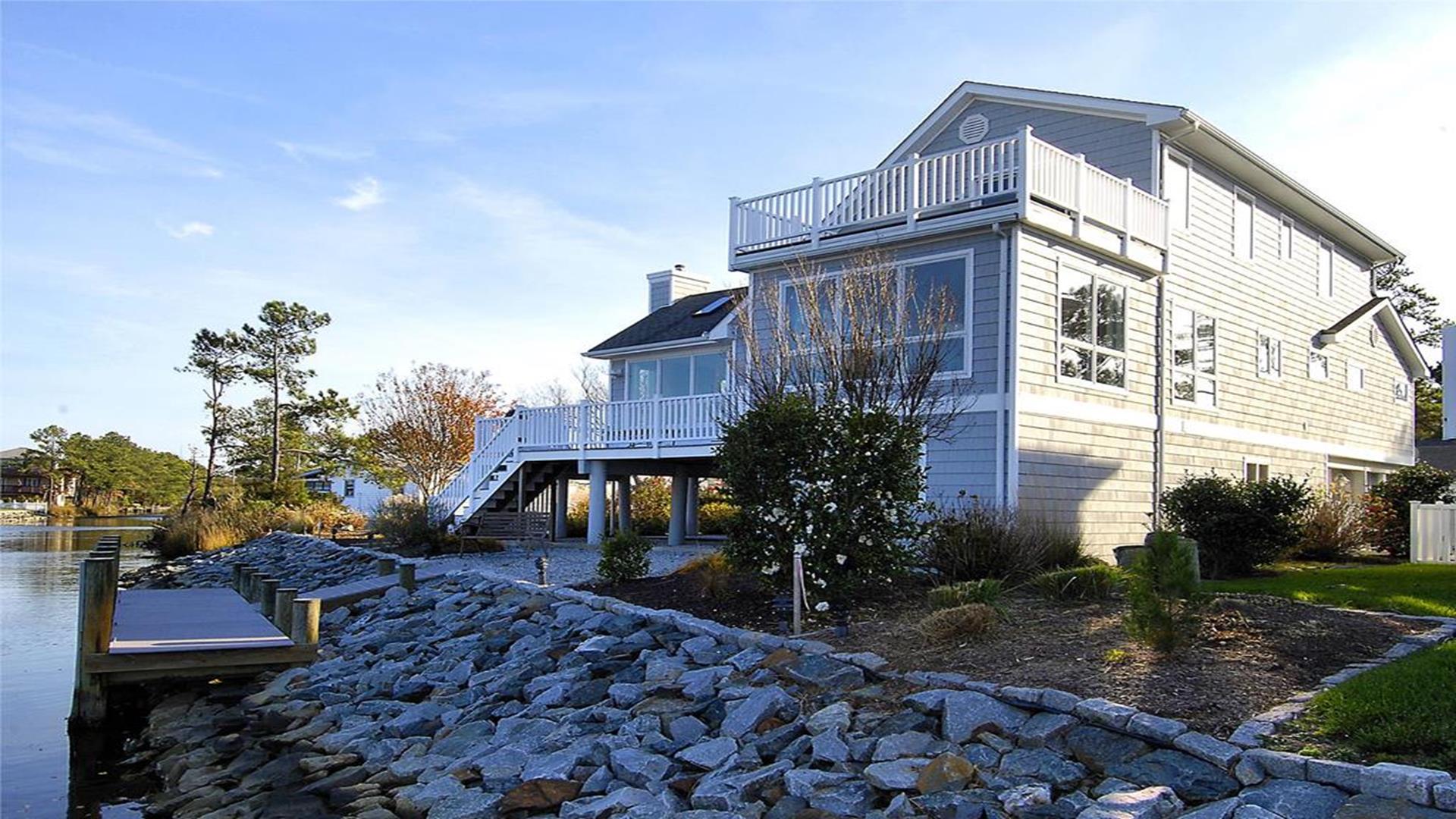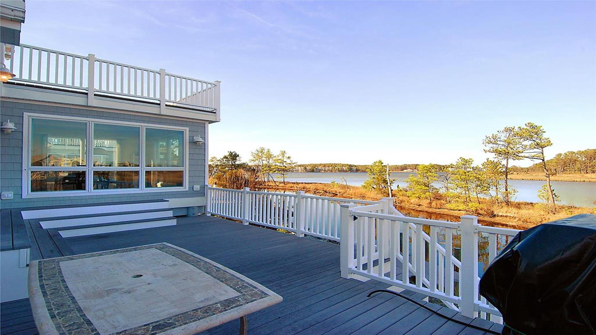 Escape to paradise in this stunning West side waterfront property located in the charming Town of Bethany Beach. Get ready to indulge in a luxurious vacation experience in this custom-built 3-level contemporary home boasting unparalleled views overlooking The Salt Pond. This spacious retreat features a multi-level floor plan with 5 bedrooms and 3 1/2 baths, including 2 master suites for ultimate comfort and privacy. With 4 decks offering breathtaking views, this home is perfect for families who love watersports, as it comes with its own private boat dock. The large great room is ideal for gatherings, with dining room seating for 12+ guests. Outdoor amenities include an outdoor shower, parking for 4-6 cars, and easy access to the Bethany Beach open-air Trolley for a convenient trip to town. Additionally, 2 residential parking permits and a garage bay reserved for bikes and beach gear make exploring the area a breeze. This property sleeps a total of 10 guests and is fully equipped with modern amenities to enhance your stay. From a fully stocked kitchen with top-of-the-line appliances to a smart TV and wireless internet, every detail has been carefully curated to ensure a memorable vacation experience. Don't miss the opportunity to make this waterfront oasis your home away from home. Book now and immerse yourself in the beauty and tranquility of Bethany Beach. Visit the virtual tour for a complete look at the property's features and floor plans.
