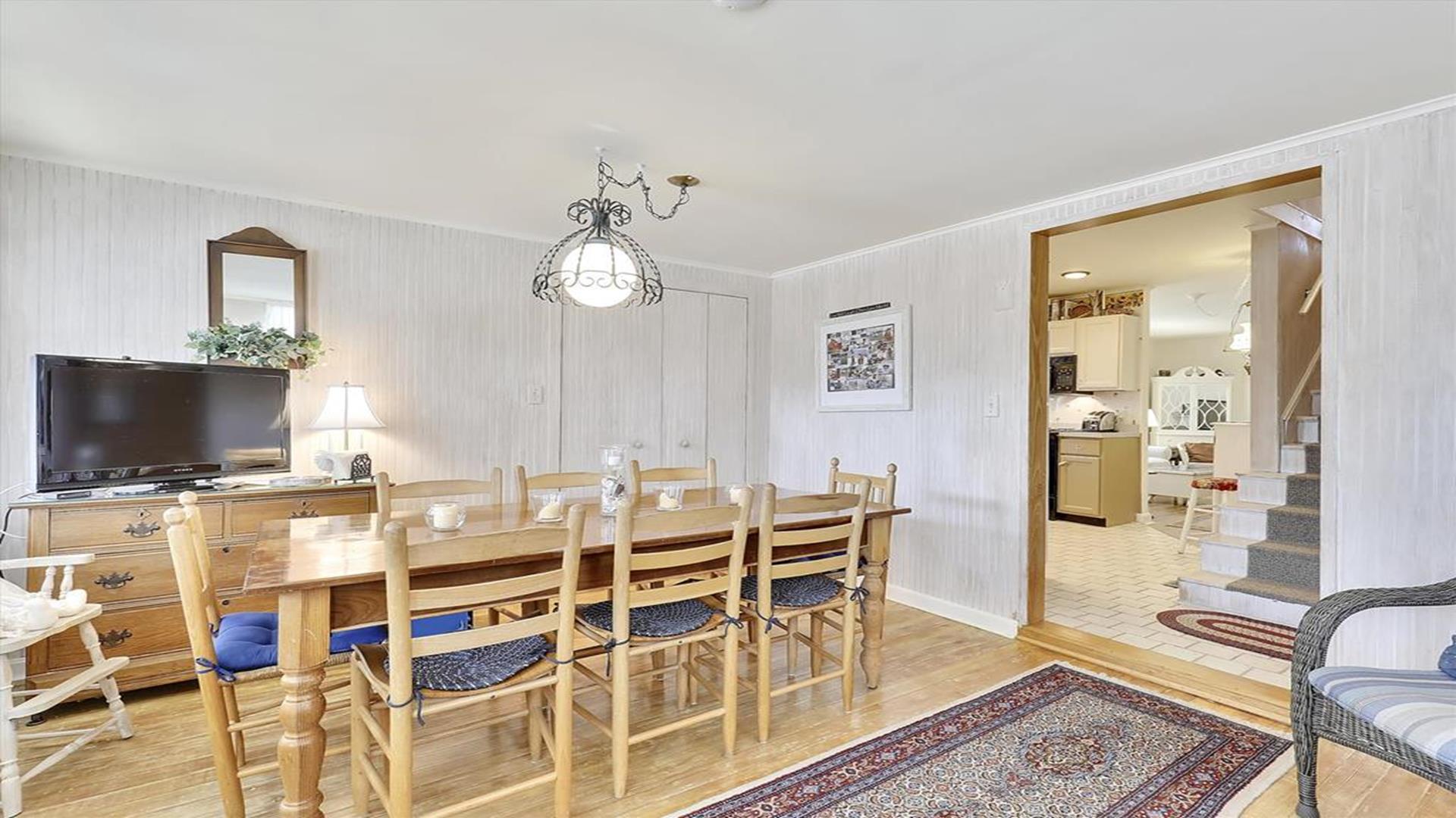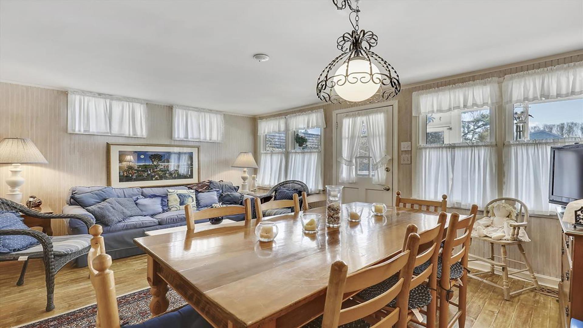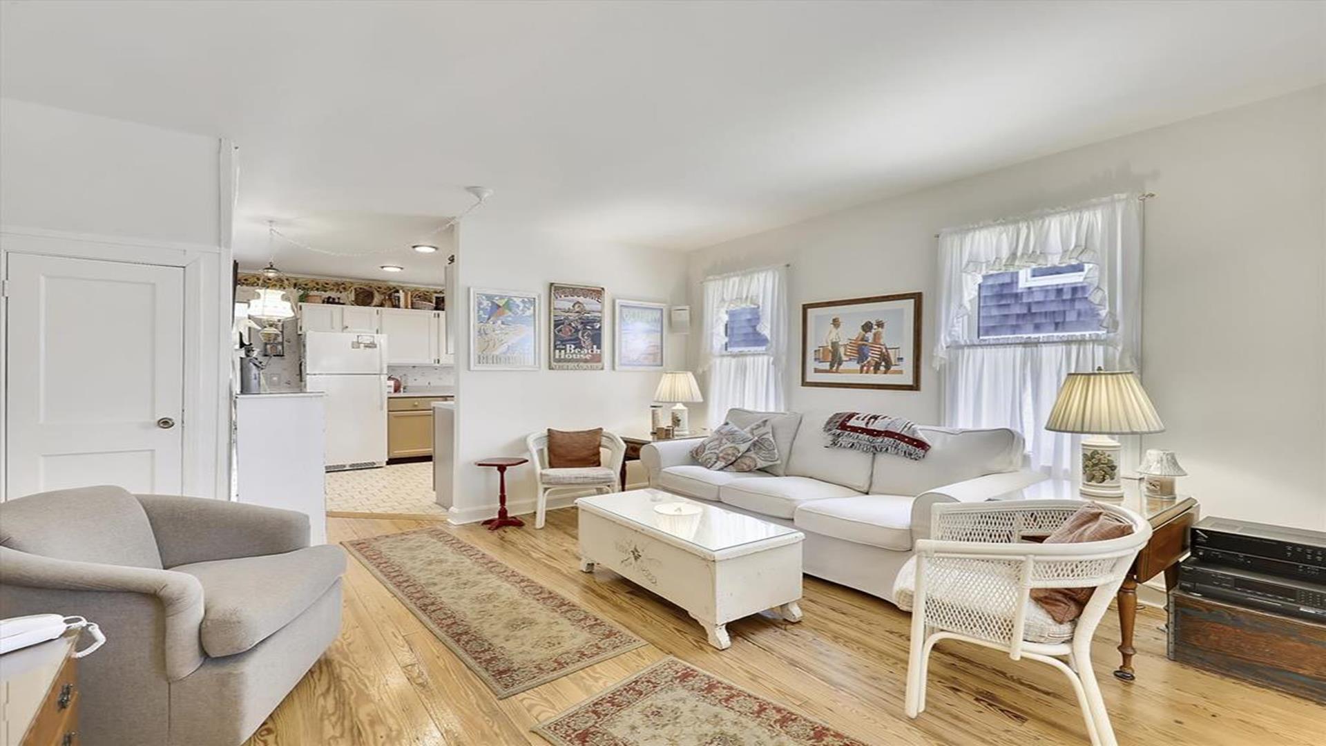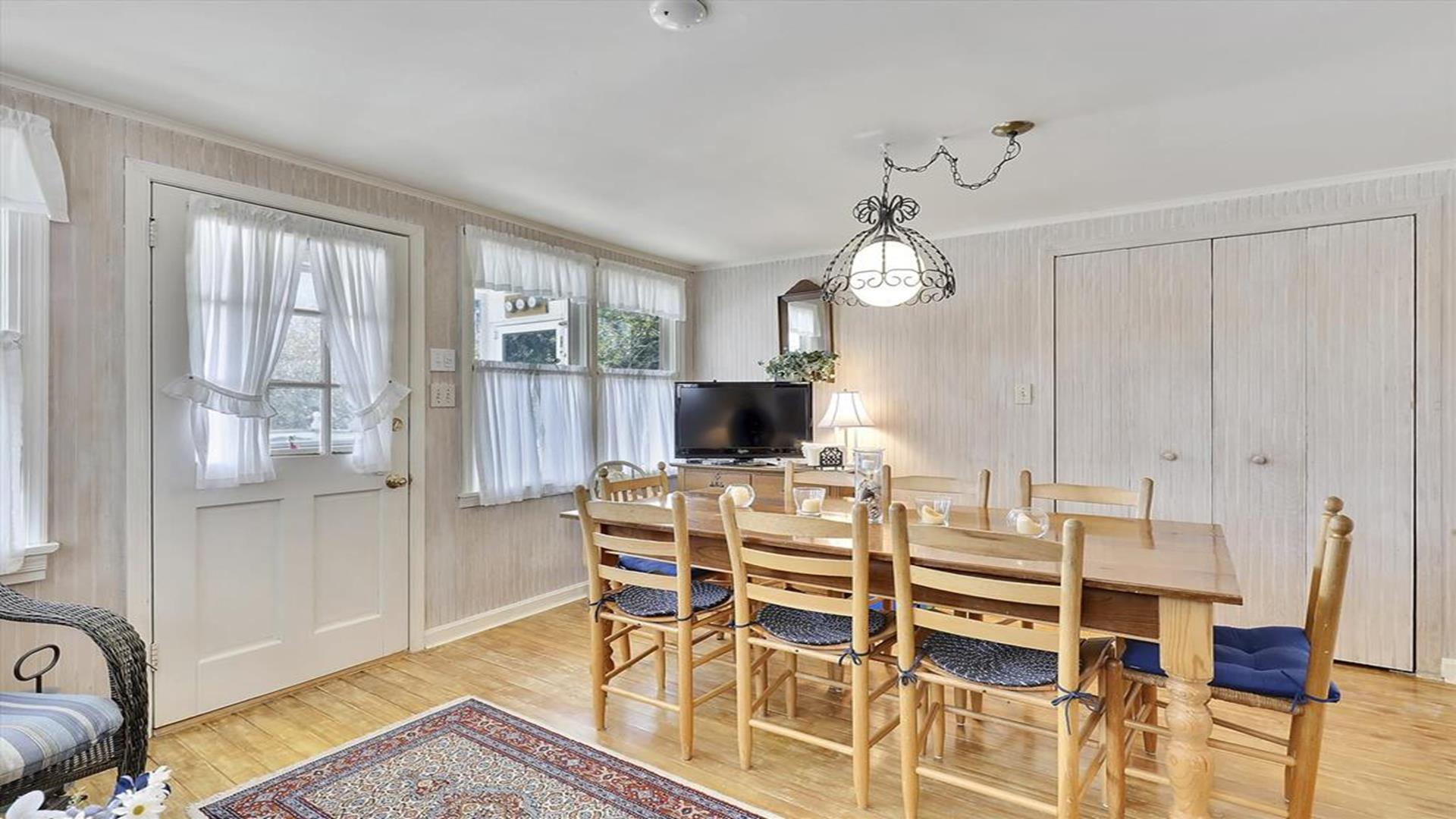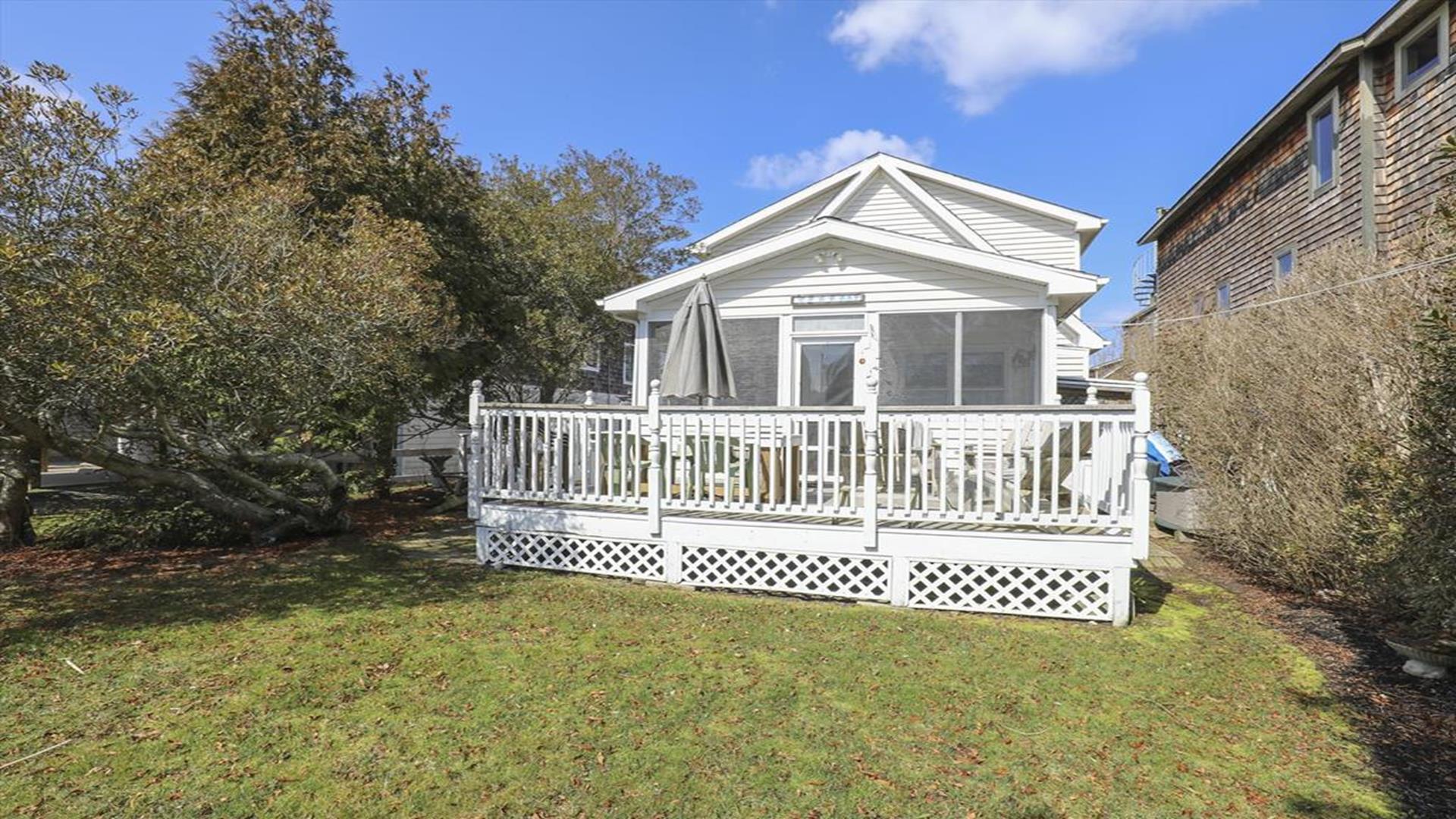 Welcome to your charming Bethany Beach getaway! This historic 4-bedroom, 2-bathroom cottage is just a half block away from the sandy shores, offering the perfect retreat for up to 8 guests. Step inside and be greeted by the cozy enclosed front porch, ideal for sipping your morning coffee or enjoying a good book. The home features a spacious open deck, as well as a private deck off one of the upstairs bedrooms, providing plenty of outdoor space to soak in the Bethany Beach atmosphere. Inside, you'll find a well-equipped kitchen with modern amenities such as a dishwasher, microwave, coffee maker, and toaster. The central AC ensures your comfort throughout your stay, while the washer and dryer make laundry a breeze. Relax in the living room with two TVs and cable TV, or unwind in the three-season room. The sleeping arrangements include a queen bed, a double bed, and four single beds, offering a comfortable night's sleep for everyone. With 8 dining seats inside, there's plenty of space for family meals and gatherings. Outside, enjoy the convenience of three parking spaces, an outside shower to rinse off after a day at the beach, and a BBQ charcoal grill for cookouts. The property also features two decks, a screened porch, and is smoke-free for your comfort. This Bethany Beach cottage is fully furnished and includes utilities, making it a hassle-free vacation destination. Please note that pets are not accepted, and guests are required to bring their own linens. Don't miss out on the opportunity to experience the history and charm of this Bethany Beach home. Book your stay today and create unforgettable memories by the sea!