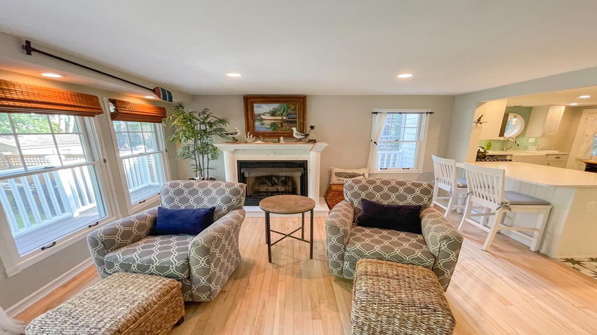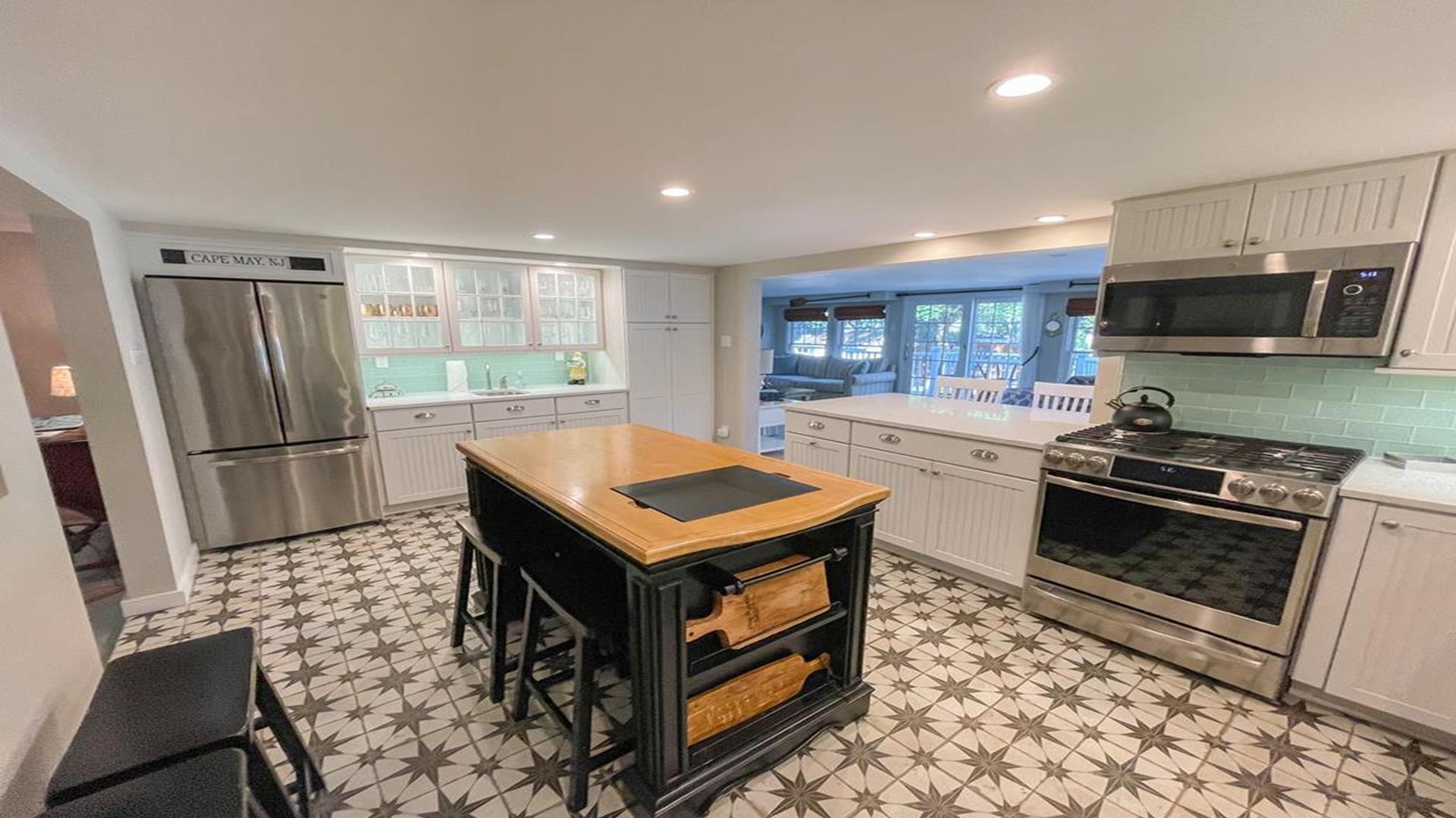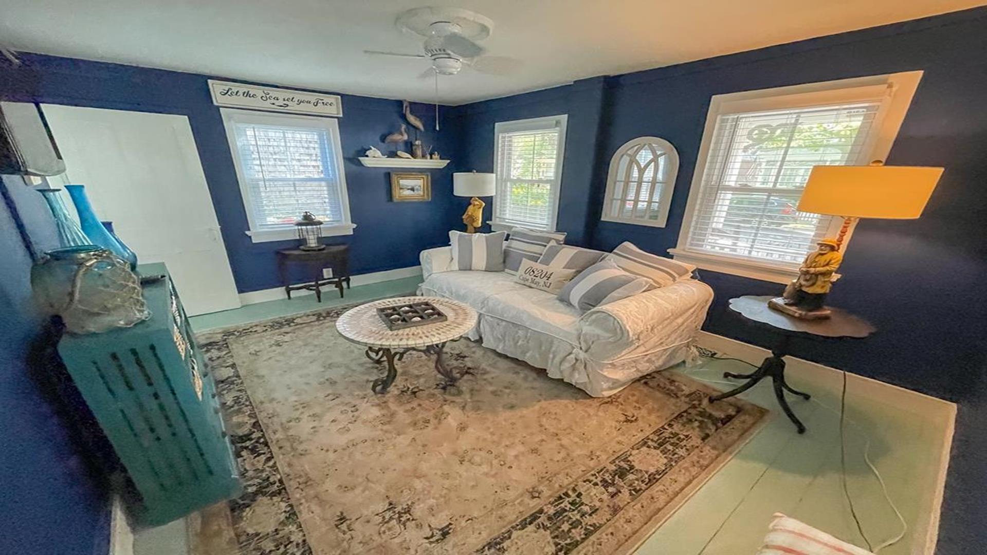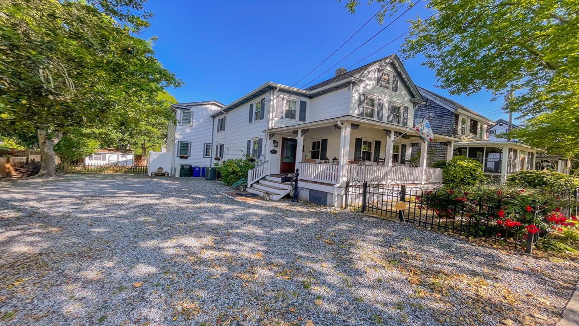 Welcome to 1136 Washington Street in Cape May. This beautifully updated 1880’s Whaler’s Cottage blends historic charm with modern comforts. Featuring 3 bedrooms, 2 full bathrooms, and 2,231 sq ft of living space, the home overlooks the historic, tree-lined Washington Street in the heart of Cape May. BEDROOMS: All BEDROOMS ARE LOCATED ON THE SECOND FLOOR. Bedroom 1: King bed, Bedroom 2: (2) Twin beds, Bedroom 3: Queen bed. FIRST FLOOR: Front Living Area: Double - Pull Out Couch. BATHROOMS: FIRST FLOOR: Bathroom 1: Shower Stall. SECOND FLOOR: Bathroom 2: walk in tiled shower and claw foot tub. LINENS: Please bring or rent your own blankets, pillows, sheets, and towels for your stay. PLEASE NOTE: Owner provided pillows and blankets on each bed are decorative only. INDOOR AMENITIES: Formal dining area with seating for 4–6 guests. Spacious eat-in kitchen with quartz counter tops, GE appliances, farmhouse sink, island seating, wet bar, and breakfast bar for two. Enjoy the sun porch with coffee bar, two separate living areas, and a second-floor spa-like bathroom with laundry. Additional highlights include central air, three gas fireplaces, (2) televisions with cable, (1) television with Roku device to log into your own streaming, Wi-Fi, and more! OUTDOOR AMENITIES: Enjoy the front porch with rocking chairs, a second-floor sun porch, and a paver patio with table and chairs. Additional amenities include BBQ grill, outdoor shower, and a shed for extra storage. PARKING: Stone driveway accommodates 3 cars. Additional un-metered street parking available nearby. BEACH EQUIPMENT: This home includes beach tags and beach chairs. Beach chairs are stored in the blue Steger Beach Boxes on Queen Street Beach. These items are a courtesy from the owner and shared among guests. The number of available items cannot be guaranteed during your stay. BIKES: The use of owner provided bicycles on the rental premises is at the tenant’s own risk. These bikes are a courtesy from the owner and shared among guests. The number and condition of bicycles cannot be guaranteed during your stay. ADDITIONAL NOTES: As part of the home's historic character, some floors and doorways are original and may be uneven or sloped. No pets accepted. OCCUPANCY 8. The property is monitored by a Ring security camera. CHECK IN TIME: 3:00 PM CHECK OUT TIME: 10:00 AM ATTRACTIONS: 0.1 Mile to the Emlen Physick Estate, Tennis Courts and Kiwanis Community Park, 0.9 miles to Cape May Beaches, 0.7 miles to the Washington Street Mall shopping, restaurants and entertainment. BOOK YOUR STAY TODAY! This property is rented through Coastline Realty LLC. Extra fees include $75 Processing Fee, $800 Security Deposit, $225 Cleaning Fee and an optional vacation insurance "Vacation Standard Protector" Tenant Cancellation Policy.