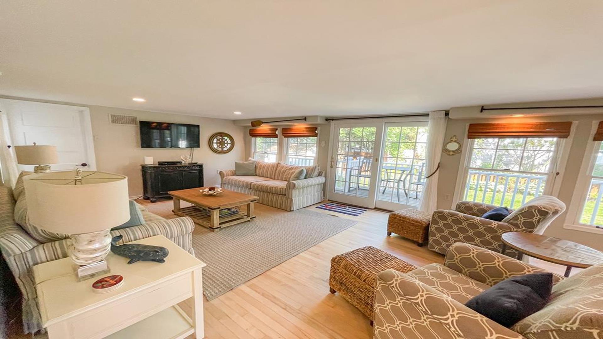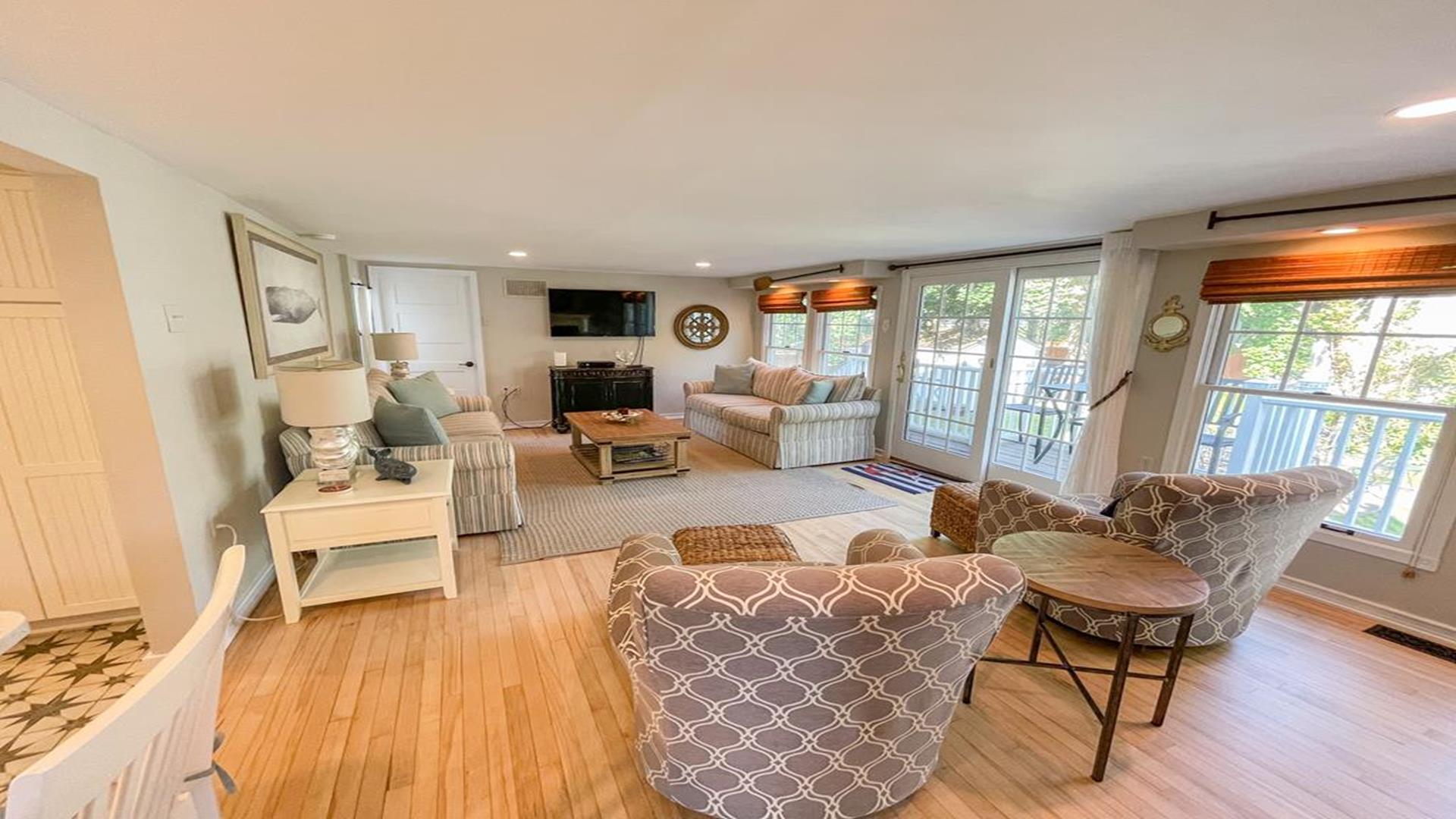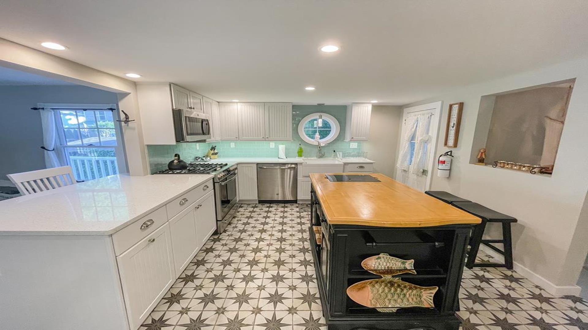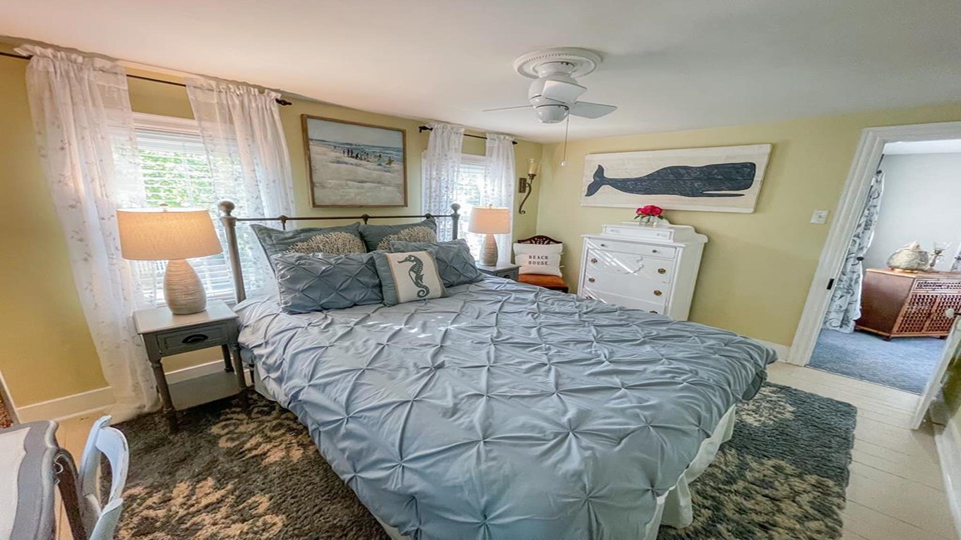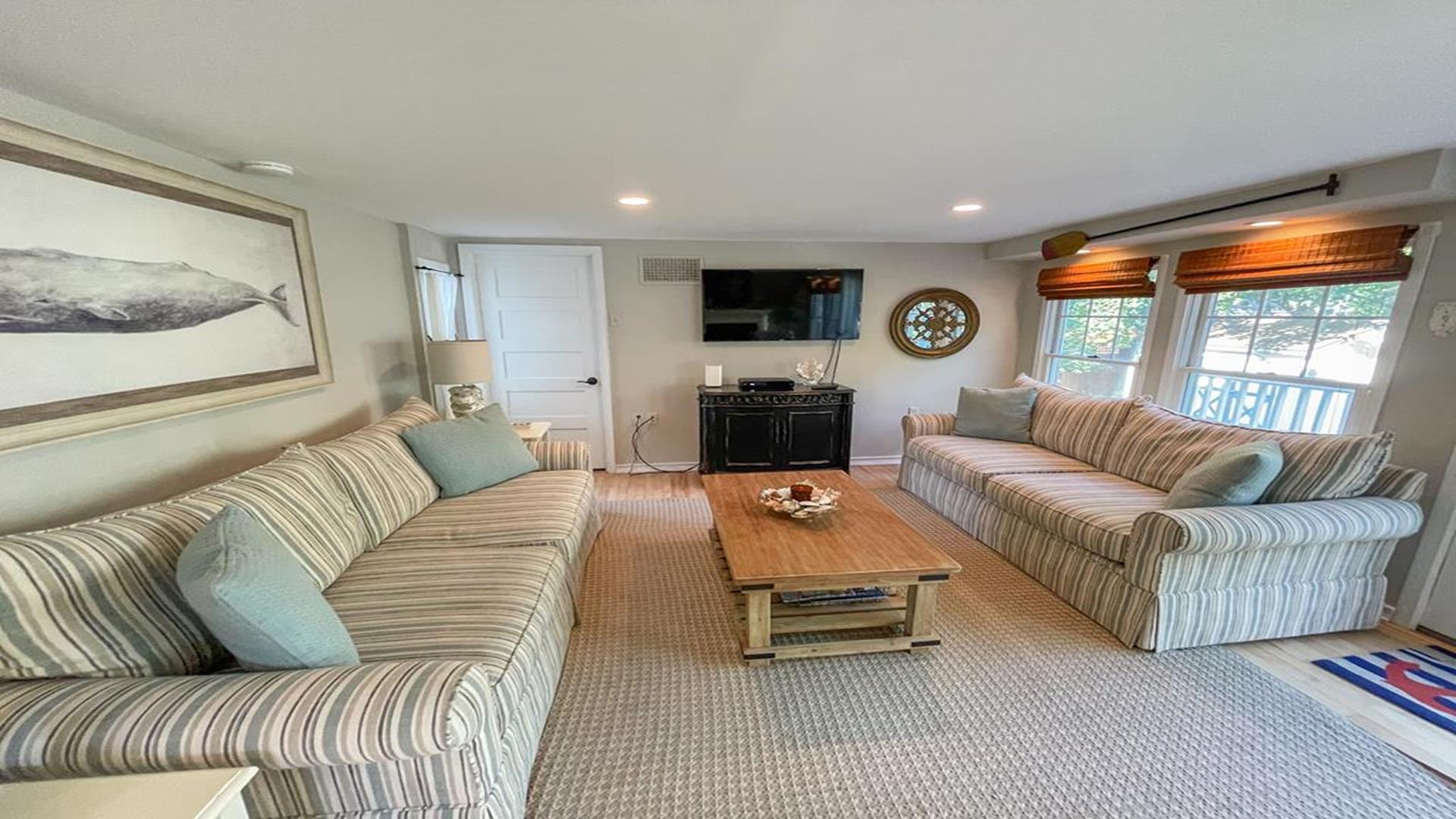 Welcome to 1136 Washington Street in Cape May. This beautifully updated 1880’s Whaler’s Cottage blends historic charm with modern comforts. Featuring 3 bedrooms, 2 full bathrooms, and 2,231 sq ft of living space, the home overlooks the historic, tree-lined Washington Street in the heart of Cape May. BEDROOMS: All BEDROOMS ARE LOCATED ON THE SECOND FLOOR. Bedroom 1: King bed, Bedroom 2: (2) Twin beds, Bedroom 3: Queen bed. FIRST FLOOR: Front Living Area: Double - Pull Out Couch. BATHROOMS: FIRST FLOOR: Bathroom 1: Shower Stall. SECOND FLOOR: Bathroom 2: walk in tiled shower and claw foot tub. LINENS: Please bring or rent your own blankets, pillows, sheets, and towels for your stay. PLEASE NOTE: Owner provided pillows and blankets on each bed are decorative only. INDOOR AMENITIES: Formal dining area with seating for 4–6 guests. Spacious eat-in kitchen with quartz counter tops, GE appliances, farmhouse sink, island seating, wet bar, and breakfast bar for two. Enjoy the sun porch with coffee bar, two separate living areas, and a second-floor spa-like bathroom with laundry. Additional highlights include central air, three gas fireplaces, (2) televisions with cable, (1) television with Roku device to log into your own streaming, Wi-Fi, and more! OUTDOOR AMENITIES: Enjoy the front porch with rocking chairs, a second-floor sun porch, and a paver patio with table and chairs. Additional amenities include BBQ grill, outdoor shower, and a shed for extra storage. PARKING: Stone driveway accommodates 3 cars. Additional un-metered street parking available nearby. BEACH EQUIPMENT: This home includes beach tags and beach chairs. Beach chairs are stored in the blue Steger Beach Boxes on Queen Street Beach. These items are a courtesy from the owner and shared among guests. The number of available items cannot be guaranteed during your stay. BIKES: The use of owner provided bicycles on the rental premises is at the tenant’s own risk. These bikes are a courtesy from the owner and shared among guests. The number and condition of bicycles cannot be guaranteed during your stay. ADDITIONAL NOTES: As part of the home's historic character, some floors and doorways are original and may be uneven or sloped. No pets accepted. OCCUPANCY 8. The property is monitored by a Ring security camera. CHECK IN TIME: 3:00 PM CHECK OUT TIME: 10:00 AM ATTRACTIONS: 0.1 Mile to the Emlen Physick Estate, Tennis Courts and Kiwanis Community Park, 0.9 miles to Cape May Beaches, 0.7 miles to the Washington Street Mall shopping, restaurants and entertainment. BOOK YOUR STAY TODAY! This property is rented through Coastline Realty LLC. Extra fees include $75 Processing Fee, $800 Security Deposit, $225 Cleaning Fee and an optional vacation insurance "Vacation Standard Protector" Tenant Cancellation Policy.