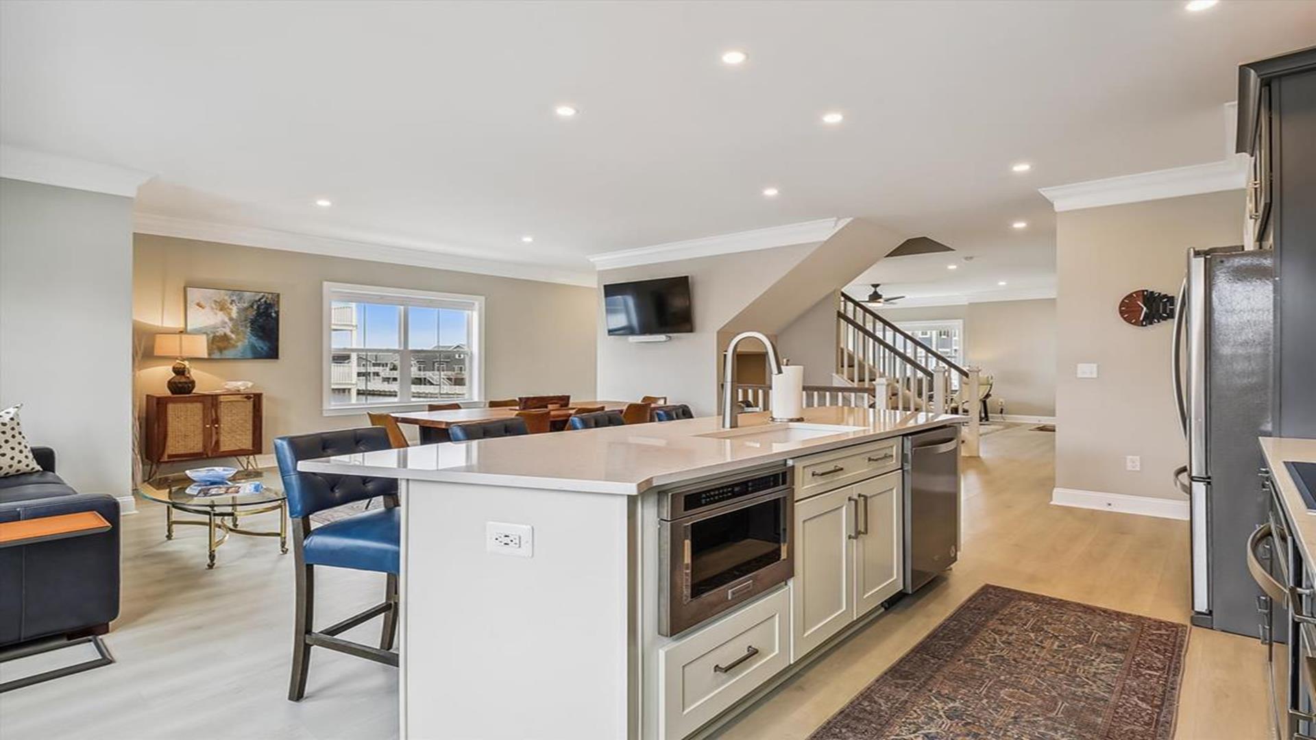 This 4 bedroom 3.5 bath, townhome is a fantastic get-a-way retreat. Located in the community of Lighthouse View II this property is one of eight townhouses located on Fenwick Island with a short walk to the beach. Enjoy the views from this canal-front home with water access for paddle-boards, kayaks, crabbing, and fishing. It is conveniently located to shops, fantastic restaurants, and the neighboring towns of Bethany Beach and Ocean City, MD, with outlet shopping. This spacious three-level end-of-group townhome is modern and nicely appointed. There are four bedrooms, including two primary suites and a bunk room. On the second floor, the kitchen, dining room, and family room with a 55" TV are open concept and make a wonderful family gathering space. There is a well-equipped kitchen with a breakfast bar and stainless steel appliances. Also on the second floor is a living area with a 70" TV and a powder room. There are three balconies and a fourth-floor rooftop deck. The difference is clear when you see the personal touches that the owner has included to make your stay go from good to great!