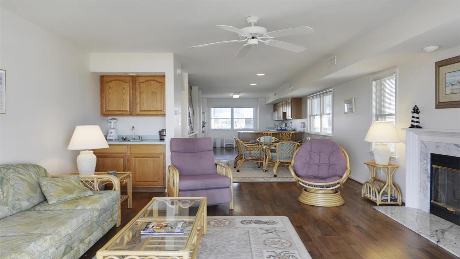 Right in the heart of Fenwick Island! This stunning oceanfront property is the perfect getaway for up to 8 guests, offering 3 bedrooms and 3 full bathrooms for your comfort and convenience. As you step inside, you'll be greeted by a spacious and beautifully furnished living area, complete with a cozy sofa bed and a Smart TV for your entertainment needs. The fully equipped kitchen features modern appliances such as a dishwasher, microwave, coffee maker, and toaster, making meal preparation a breeze. The sleeping arrangements include a luxurious king bed in the master bedroom, a queen bed in the second bedroom, and two single beds in the third bedroom. Each room is tastefully decorated and offers ample storage space for your belongings. Outside, you'll find a deck where you can soak up the sun and enjoy breathtaking views of the ocean. With three decks in total, there's plenty of space to relax and unwind. Take advantage of the outdoor shower after a day at the beach, and make use of the provided beach chairs and umbrellas for a day of fun in the sun. This property is pet-free and smoke-free, ensuring a clean and comfortable environment for all guests. Stay connected with complimentary wireless internet and enjoy your favorite shows on the two Smart TVs available. Conveniently located near local attractions and dining options, this rental offers the perfect blend of relaxation and entertainment. With utilities included and ample parking space for three vehicles, your stay will be stress-free and enjoyable. Don't miss out on the opportunity to experience waterfront living at its finest in Fenwick Island. Book your stay today and create unforgettable memories with your loved ones in this charming coastal retreat.