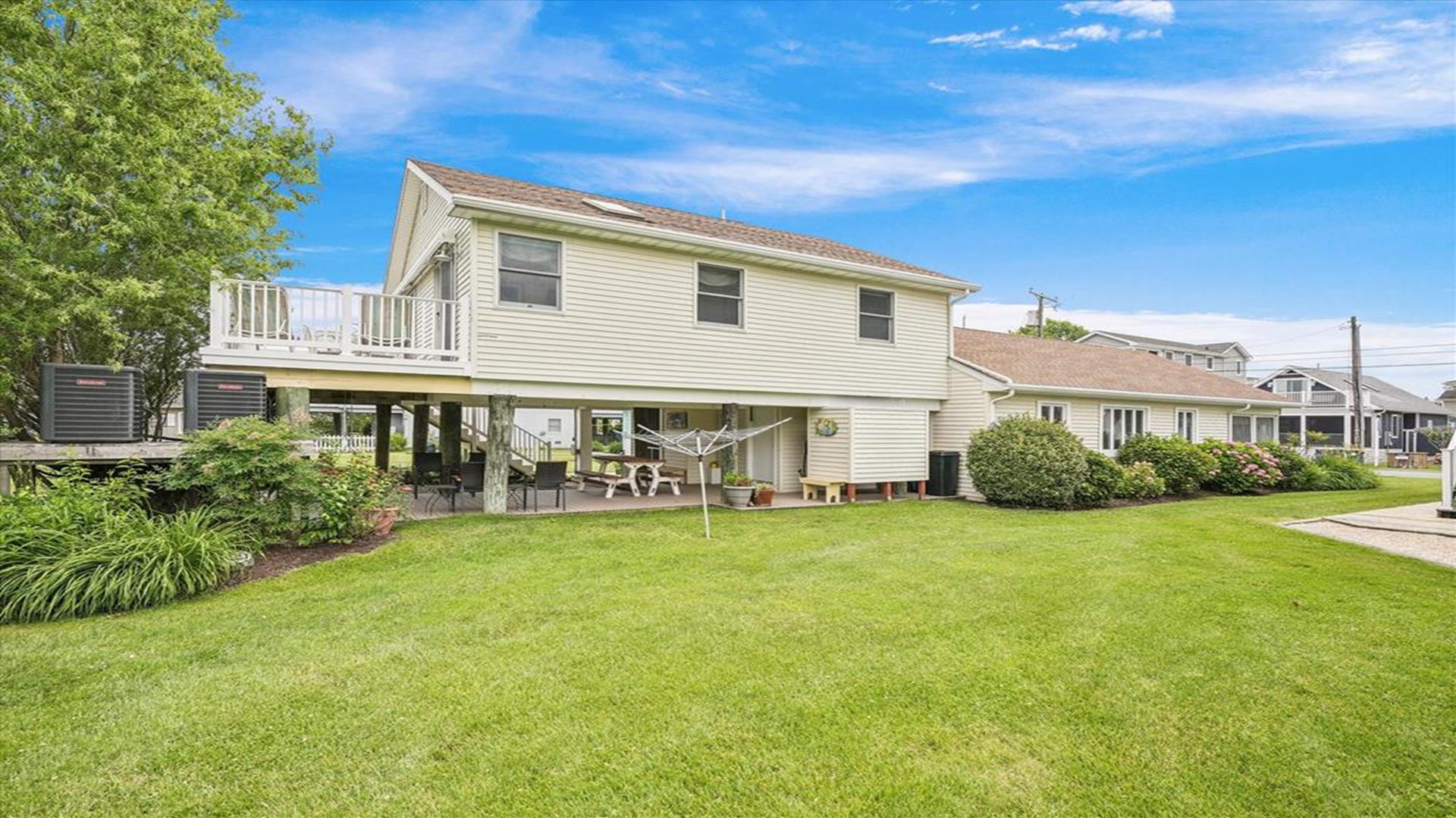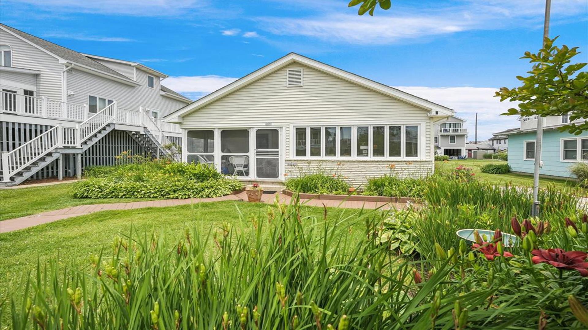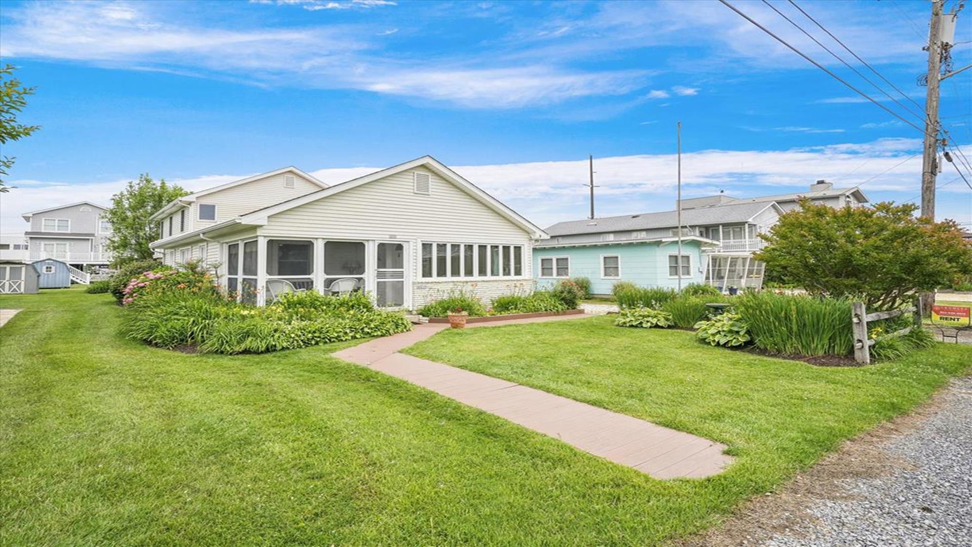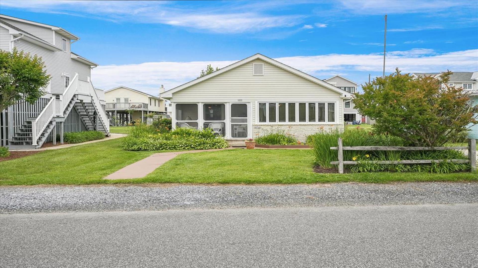 Welcome to this charming 4-bedroom, 2 1/2 bath cottage in the heart of Bethany Beach! Originally one of Bethany's original cottages, this property has been lovingly updated with a newer addition at the back, providing ample space for up to 8 guests. The older section of the cottage features 3 cozy bedrooms and 1 ½ baths, along with a comfortable living area and a delightful screen porch at the front. A small kitchen area on the first floor is equipped with a refrigerator, toaster, and coffee maker for your convenience. Upstairs, you'll find the main kitchen and dining area, along with the primary bedroom and bath. Step outside onto the spacious deck at the back and soak in the sunshine or enjoy a relaxing evening under the stars. Parking is a breeze with 3 spaces available at the house and an additional spot on the street. The property boasts modern amenities to enhance your stay, including 1 Queen bed, 1 Full sized bed and 4 Single beds, a dishwasher, microwave, disposal, and more. Stay comfortable year-round with central AC and ceiling fans throughout the cottage. Entertainment options include with wireless access for 3 TV's. When you're ready to unwind, head to the screened porch or fire up the BBQ for a cookout. After a day at the beach, rinse off in the convenient outdoor shower. Located in the desirable East of Route 1 area, this cottage is just a short distance from Bethany Beach's pristine shores, charming shops, and delicious dining options. Whether you're planning a family vacation or a getaway with friends, this property offers the perfect blend of comfort and convenience. Don't miss out on the opportunity to make unforgettable memories at this Bethany Beach gem. Book your stay today and experience the best of beach living!