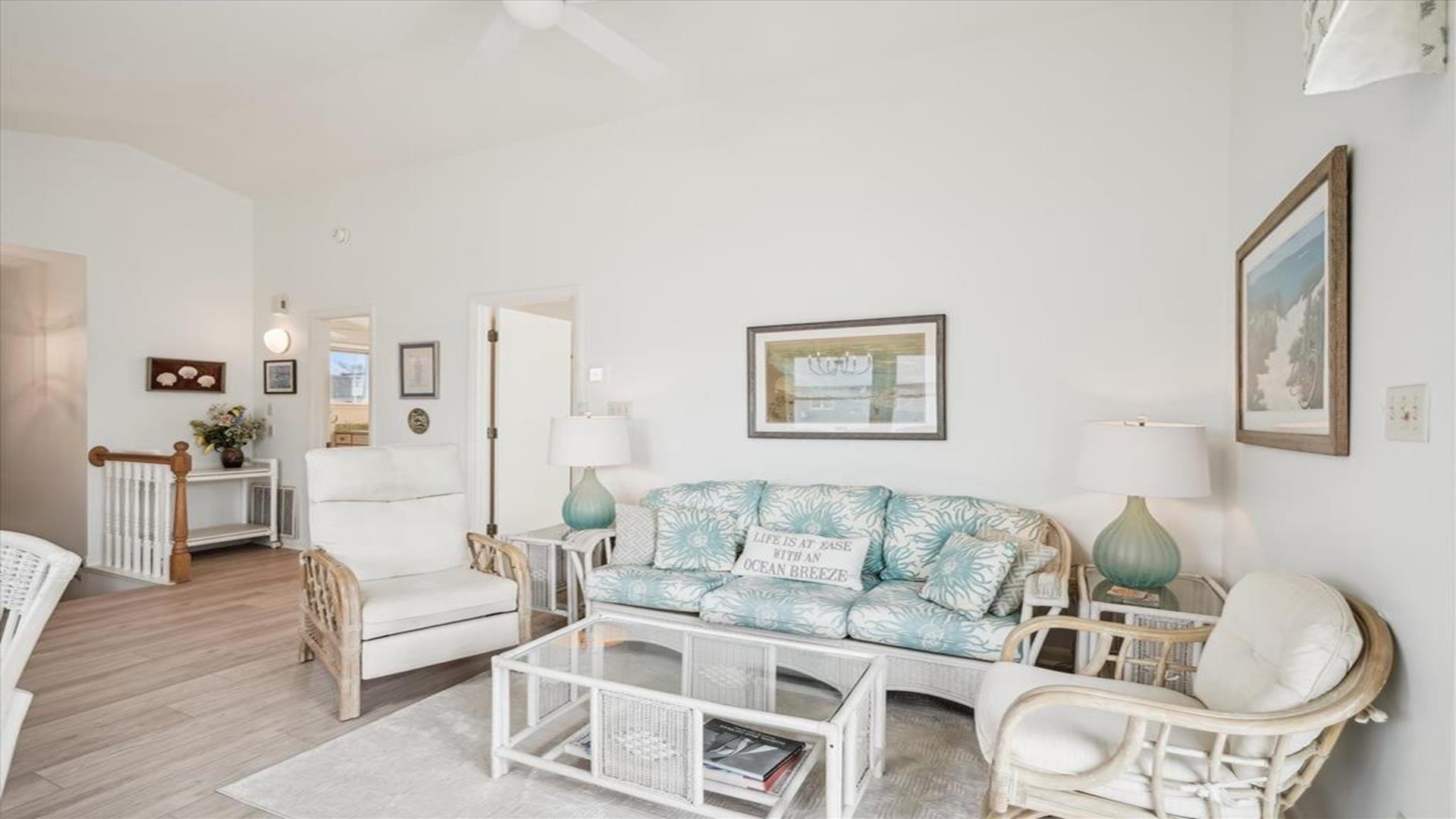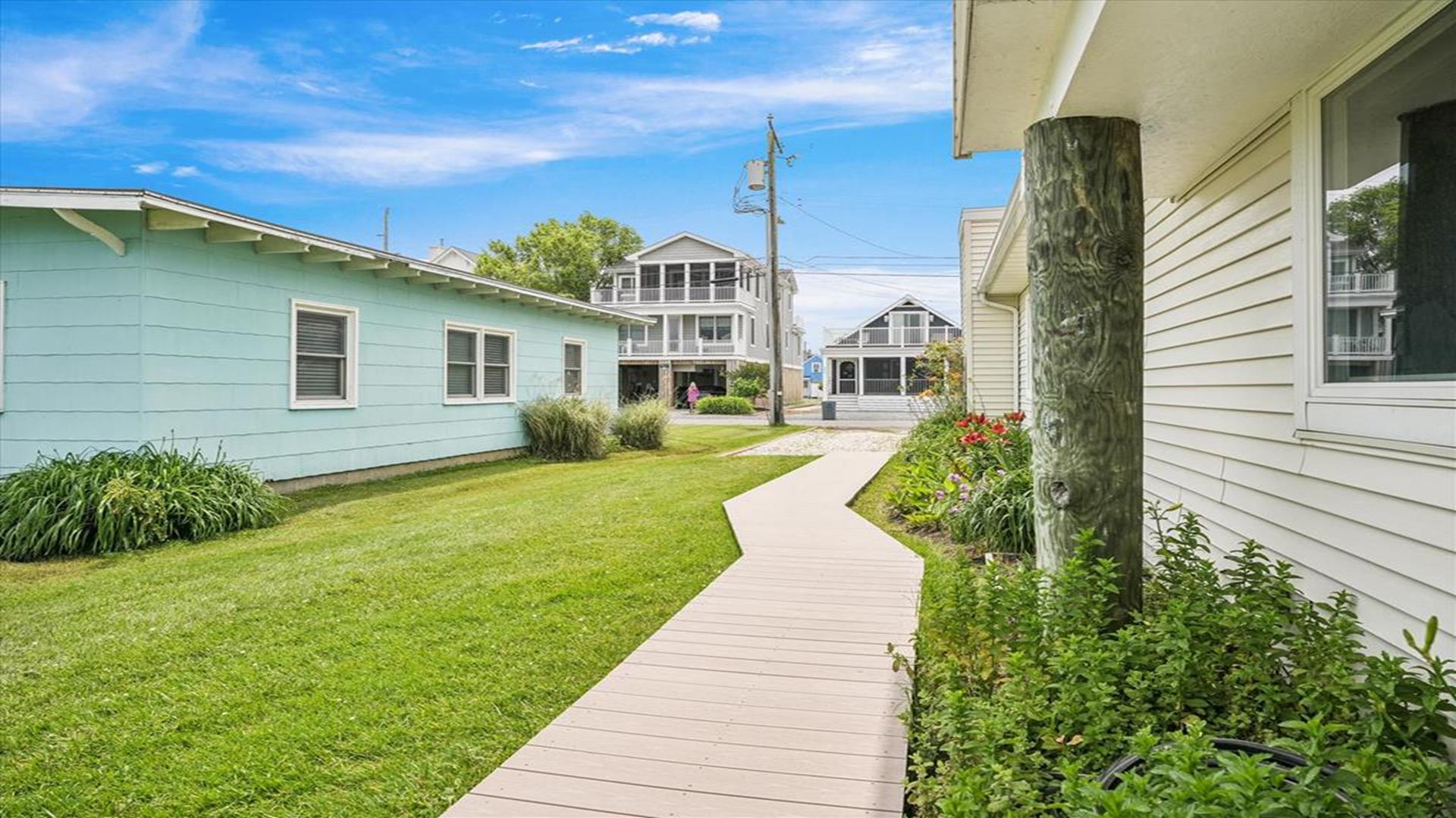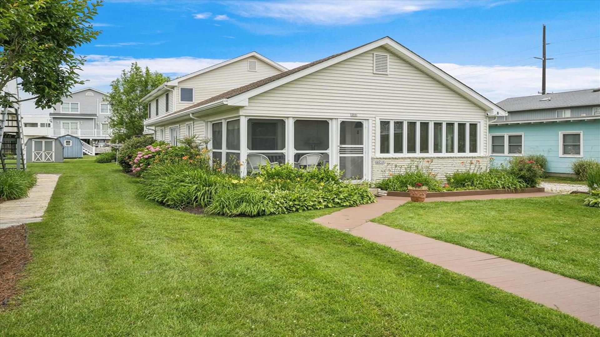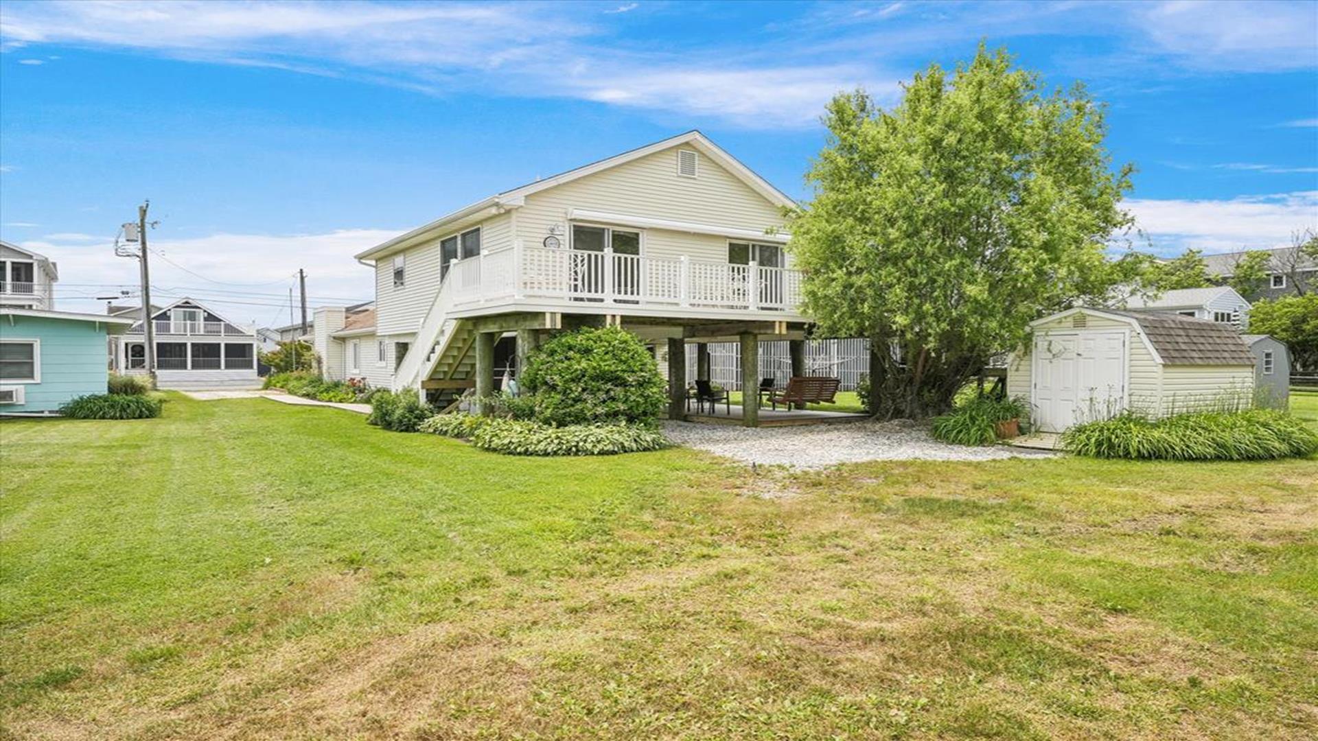 Welcome to this charming 4-bedroom, 2 1/2 bath cottage in the heart of Bethany Beach! Originally one of Bethany's original cottages, this property has been lovingly updated with a newer addition at the back, providing ample space for up to 8 guests. The older section of the cottage features 3 cozy bedrooms and 1 ½ baths, along with a comfortable living area and a delightful screen porch at the front. A small kitchen area on the first floor is equipped with a refrigerator, toaster, and coffee maker for your convenience. Upstairs, you'll find the main kitchen and dining area, along with the primary bedroom and bath. Step outside onto the spacious deck at the back and soak in the sunshine or enjoy a relaxing evening under the stars. Parking is a breeze with 3 spaces available at the house and an additional spot on the street. The property boasts modern amenities to enhance your stay, including 1 Queen bed, 1 Full sized bed and 4 Single beds, a dishwasher, microwave, disposal, and more. Stay comfortable year-round with central AC and ceiling fans throughout the cottage. Entertainment options include with wireless access for 3 TV's. When you're ready to unwind, head to the screened porch or fire up the BBQ for a cookout. After a day at the beach, rinse off in the convenient outdoor shower. Located in the desirable East of Route 1 area, this cottage is just a short distance from Bethany Beach's pristine shores, charming shops, and delicious dining options. Whether you're planning a family vacation or a getaway with friends, this property offers the perfect blend of comfort and convenience. Don't miss out on the opportunity to make unforgettable memories at this Bethany Beach gem. Book your stay today and experience the best of beach living!