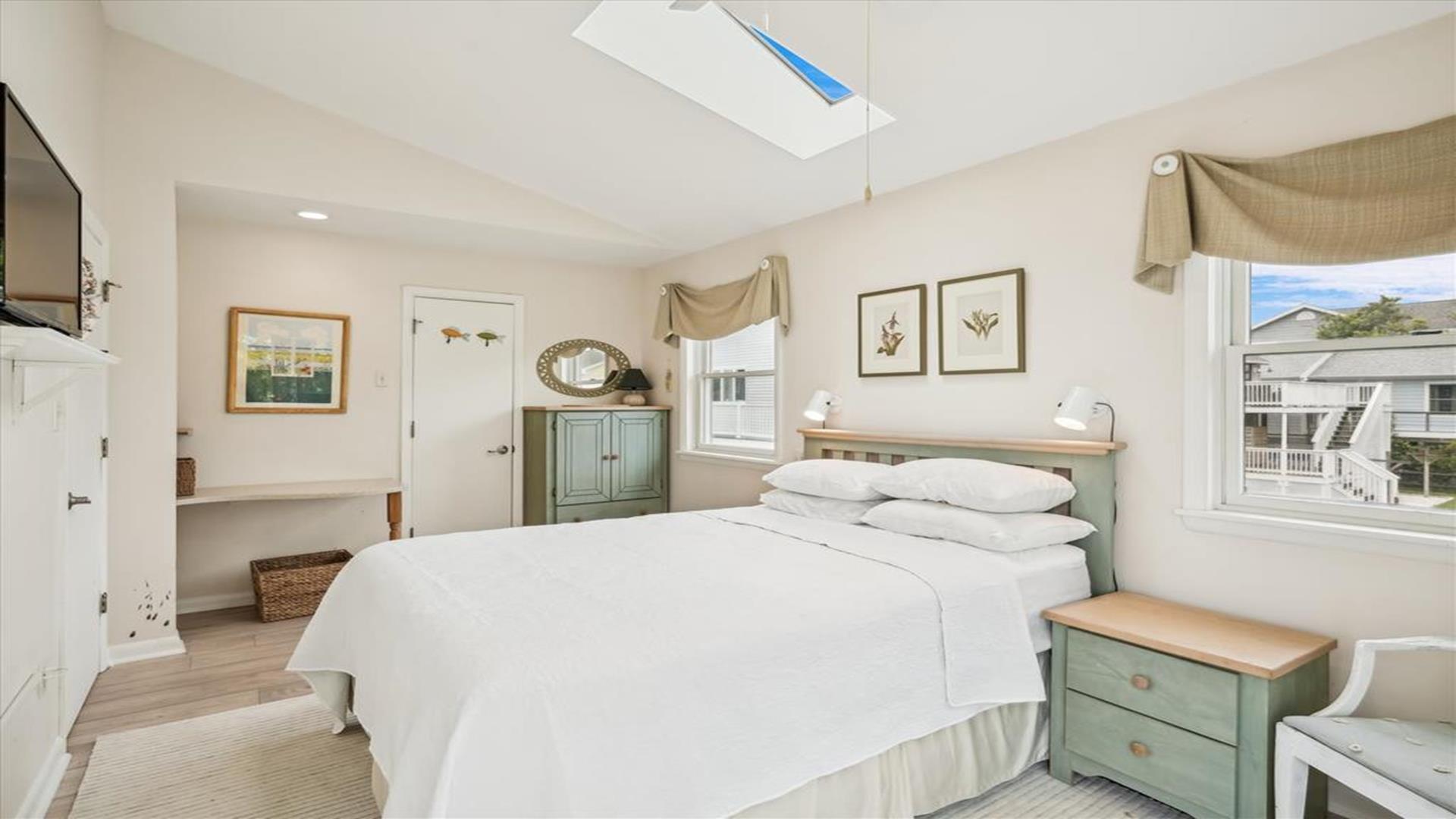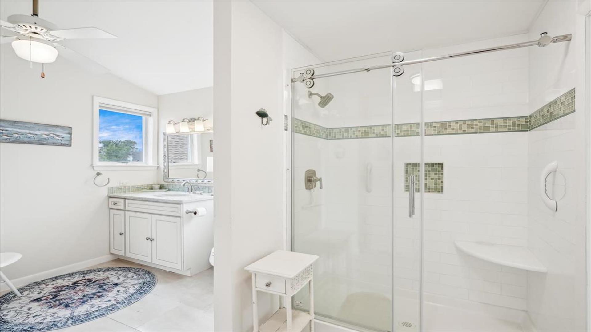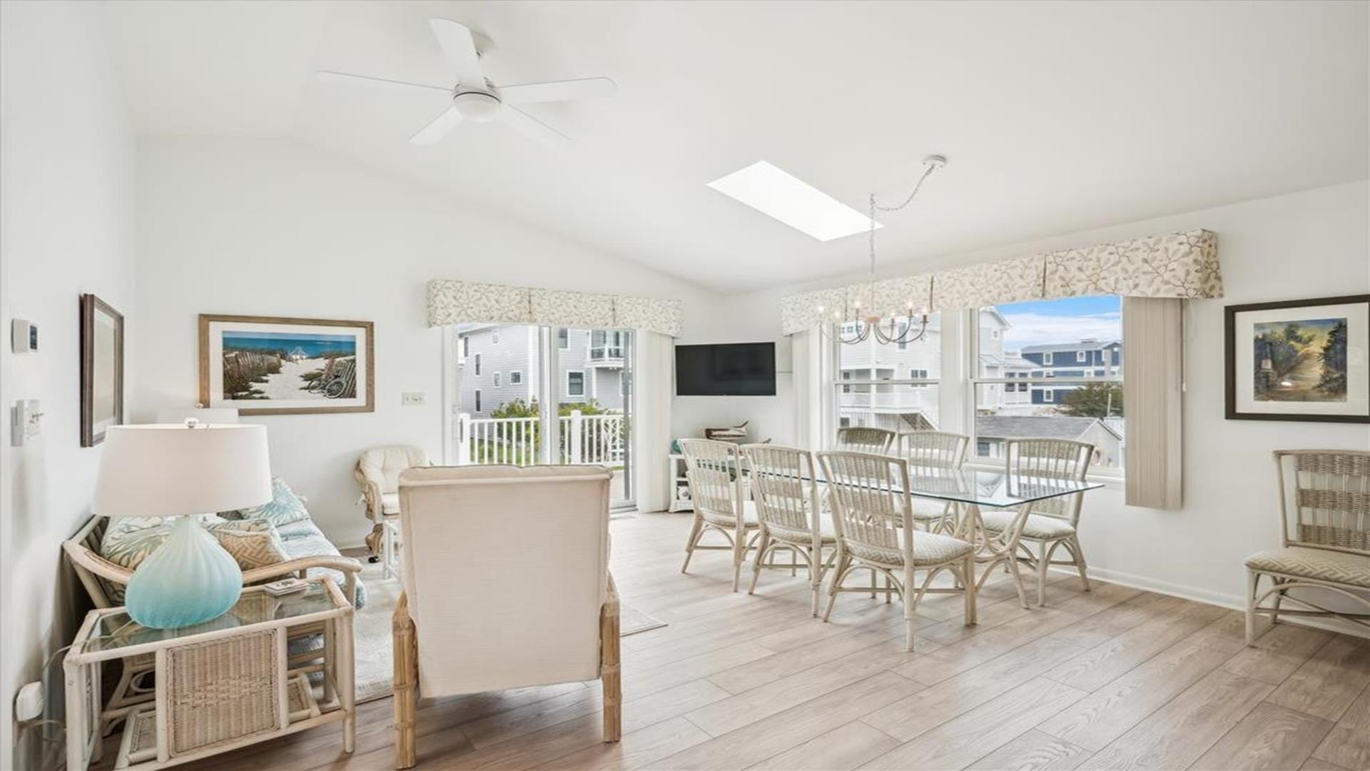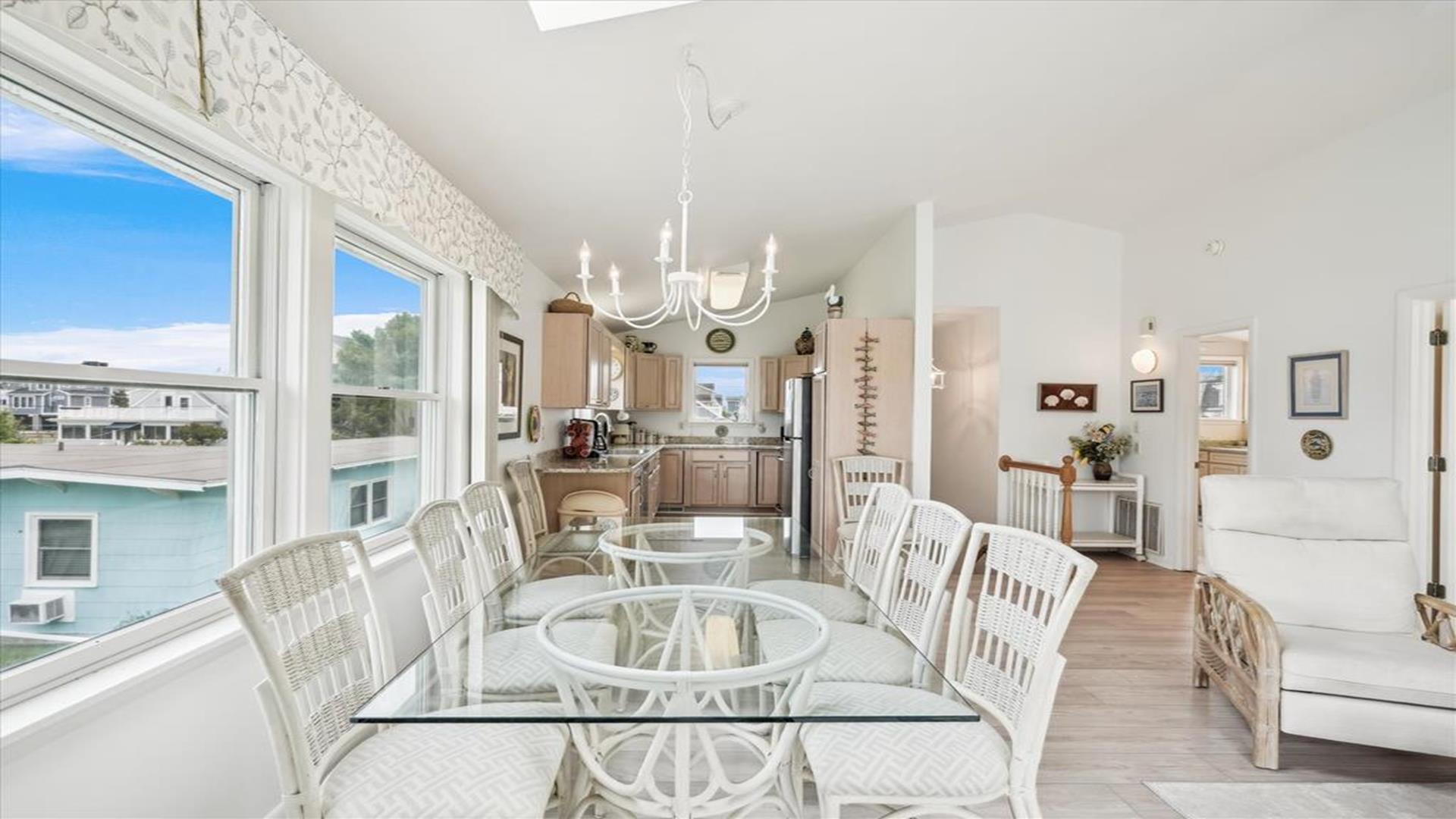 Welcome to this charming 4-bedroom, 2 1/2 bath cottage in the heart of Bethany Beach! Originally one of Bethany's original cottages, this property has been lovingly updated with a newer addition at the back, providing ample space for up to 8 guests. The older section of the cottage features 3 cozy bedrooms and 1 ½ baths, along with a comfortable living area and a delightful screen porch at the front. A small kitchen area on the first floor is equipped with a refrigerator, toaster, and coffee maker for your convenience. Upstairs, you'll find the main kitchen and dining area, along with the primary bedroom and bath. Step outside onto the spacious deck at the back and soak in the sunshine or enjoy a relaxing evening under the stars. Parking is a breeze with 3 spaces available at the house and an additional spot on the street. The property boasts modern amenities to enhance your stay, including 1 Queen bed, 1 Full sized bed and 4 Single beds, a dishwasher, microwave, disposal, and more. Stay comfortable year-round with central AC and ceiling fans throughout the cottage. Entertainment options include with wireless access for 3 TV's. When you're ready to unwind, head to the screened porch or fire up the BBQ for a cookout. After a day at the beach, rinse off in the convenient outdoor shower. Located in the desirable East of Route 1 area, this cottage is just a short distance from Bethany Beach's pristine shores, charming shops, and delicious dining options. Whether you're planning a family vacation or a getaway with friends, this property offers the perfect blend of comfort and convenience. Don't miss out on the opportunity to make unforgettable memories at this Bethany Beach gem. Book your stay today and experience the best of beach living!