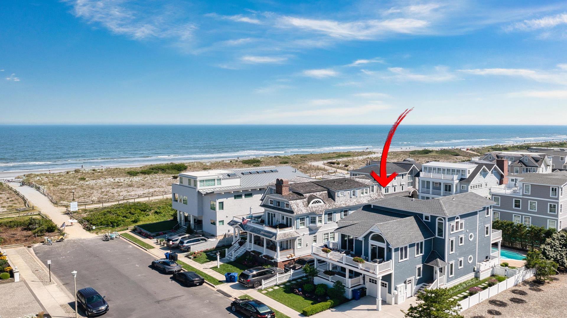 Newly renovated, this beautiful home just THIRD BACK on one of the nicest Beach Blocks in Avalon. Underground utilities, beautiful homes, and offering fabulous ocean views! This south side of the street location has an over-sized swimming pool with full southern exposure built under past pool setback rules which allowed larger pools. This special home is spacious providing three stories, 5 bedrooms, and an expansive open great room perfect for entertaining. The first level is comprised of three large bedrooms, two full bathrooms, a laundry room (with a full sized refrigerator and ice maker) and a fourth bedroom that is currently set up as a first floor family room with sofa bed. The family room has slider access to the rear, covered deck, which walks down to the southern exposed backyard. The second floor entertaining space includes huge front and rear decks with plenty of seating options, all with wide spanning views of the ocean. A screened in, exterior dining area on the east side of the home offers an intimate setting right off of the kitchen, great for dining or game playing. The designer furnished entertaining space is beautifully furnished, great ocean views, distributed audio and vaulted ceilings, which add drama to the space. The kitchen features quality appliances and a large center island with soapstone counters. The rear of the second floor offers a large, junior suite with private bath. The entire third floor is dedicated to the master suite and features some of the best views in the home. The home offers ample exterior entertaining areas such as a first floor covered porch, 2 second floor sun decks, a screened porch and a sun deck off the master in addition to the ample deck area around the pool. The street-scape on 13th Street is simply beautiful. The home is just steps to the beach! A storage garage on the front of the home allows for plenty of room to store your beach equipment and bikes.