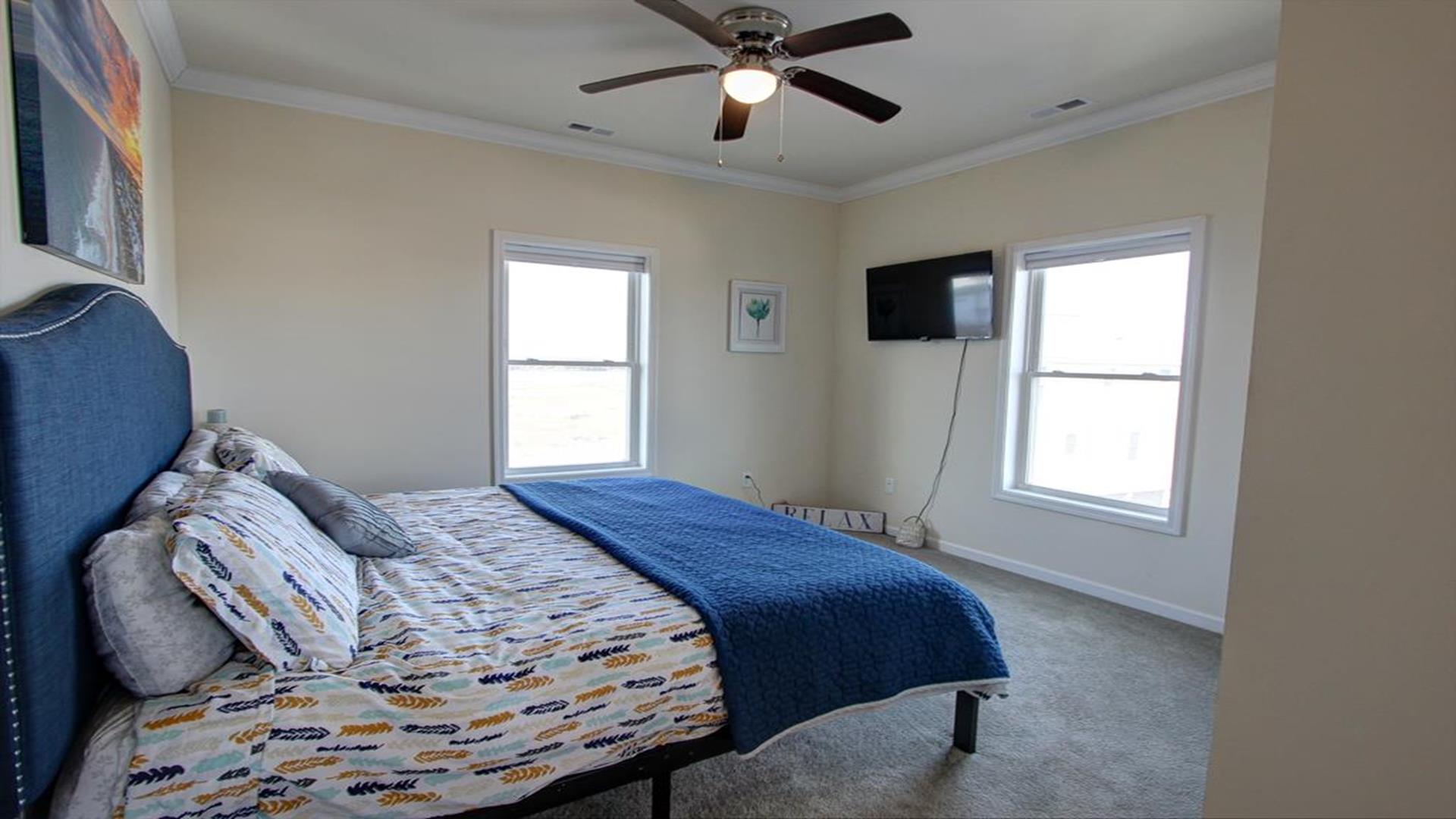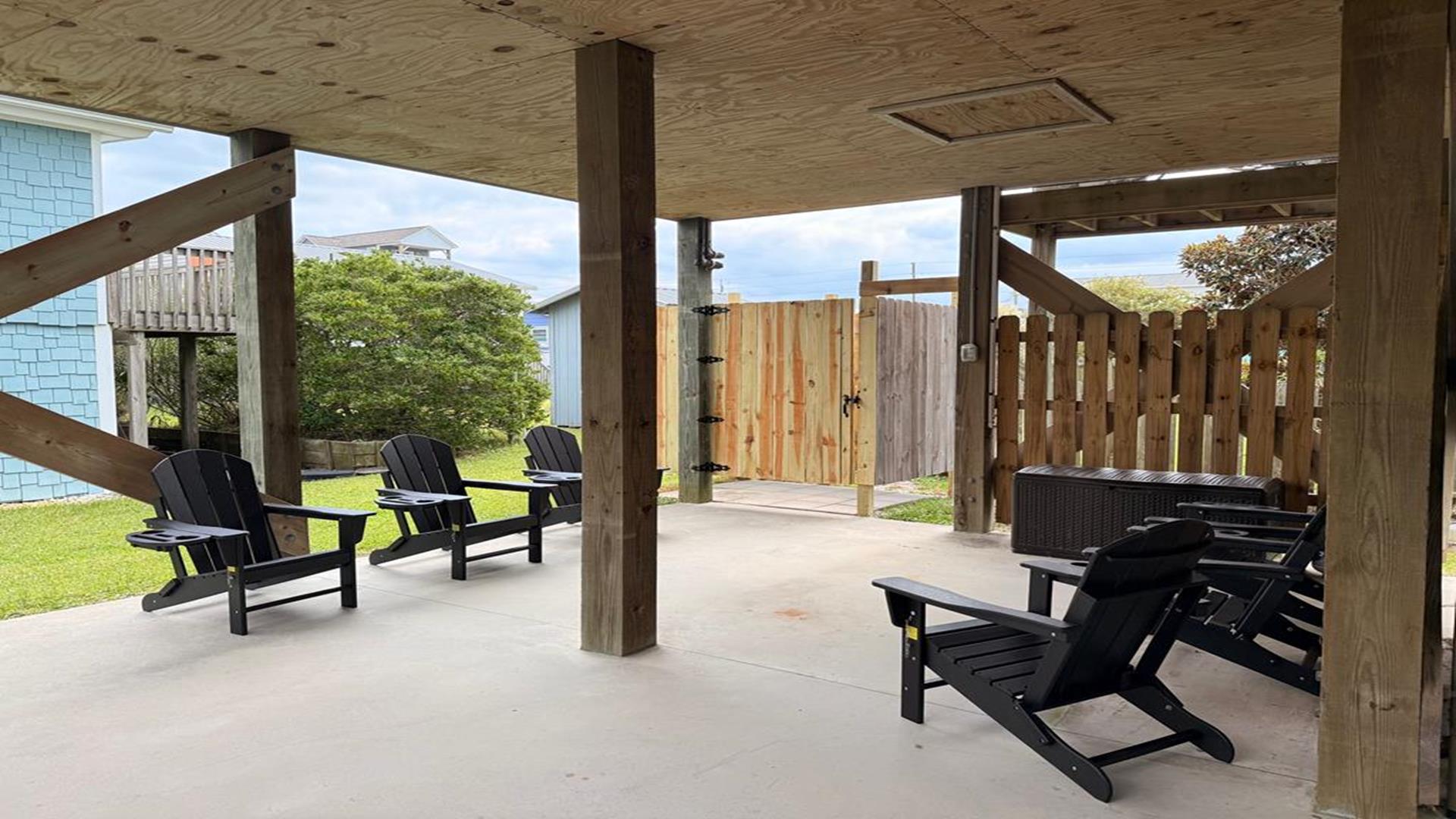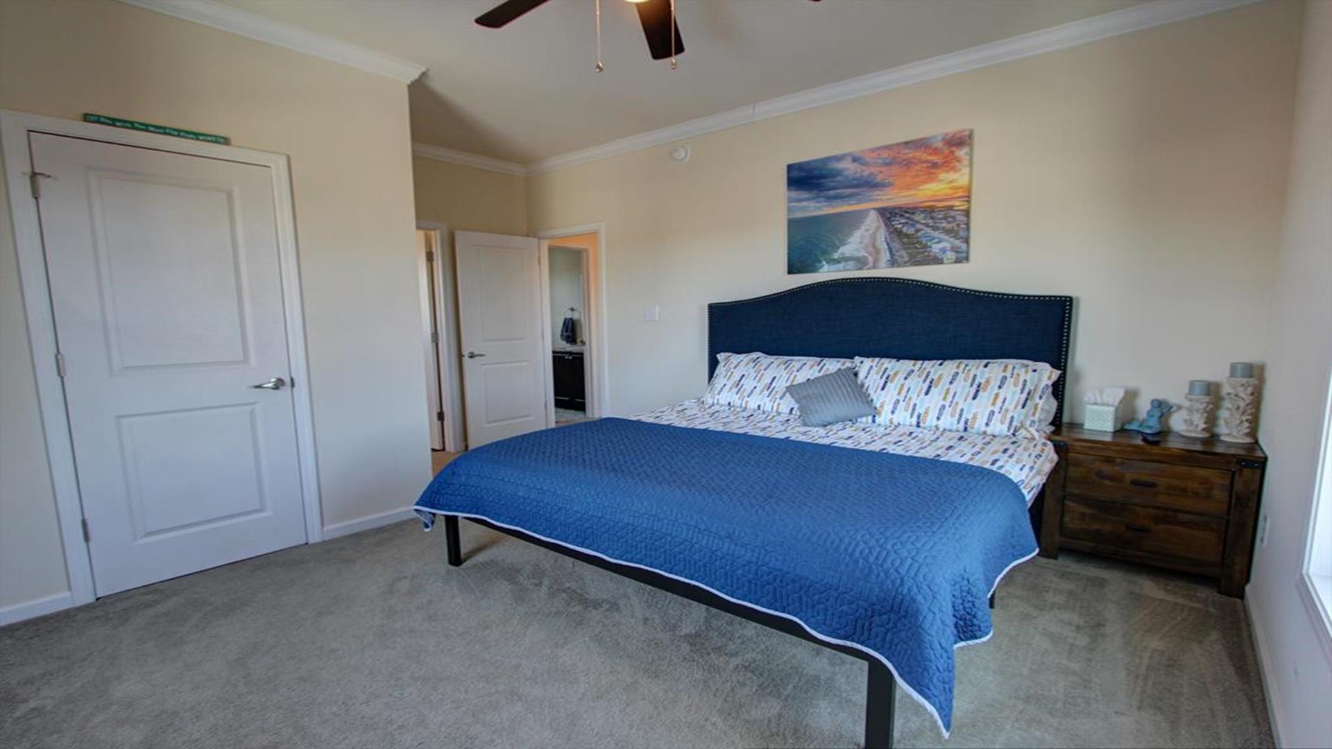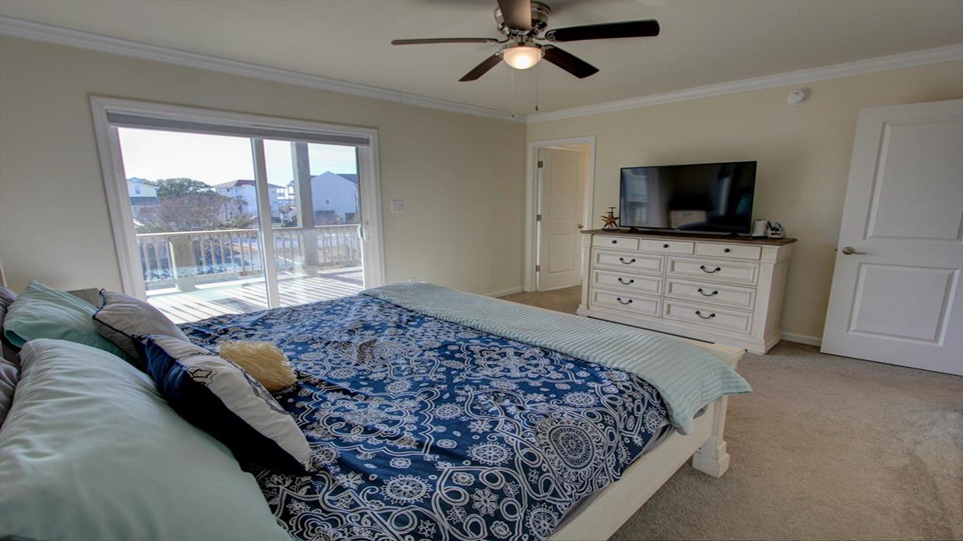 Enjoy amazing water views from this beautiful beach house. From the large wraparound decks, you can see the ocean, beach access, and panoramic views of the waterway. On the top floor with the best views, there is a spacious living, dining, and kitchen area. The huge dining table is perfect for family meals and gathering for games. There is a king bedroom with a private bath along with a half bath on this level. On the first floor, there is another king bedroom with private bath and a door to the covered deck. The third bedroom has two queen beds. The fourth bedroom has a pyramid bunkbed and a double bed. There is a hall bath with tub/shower and a separate laundry room. On the ground level, there is a covered area with furniture, grill, and storage building. The beach access is only a short distance away and best of all, you can bring your pet w/$215 fee for 1 dog. *Keyless Entry, Exterior Security Camera 4 BR, 3.5 Baths / Occupancy Limit: 12 - 2 K, 2 Q, 2 D, 1 T, LINENS ARE NOT INCLUDED unless purchased NO SMOKING ALLOWED