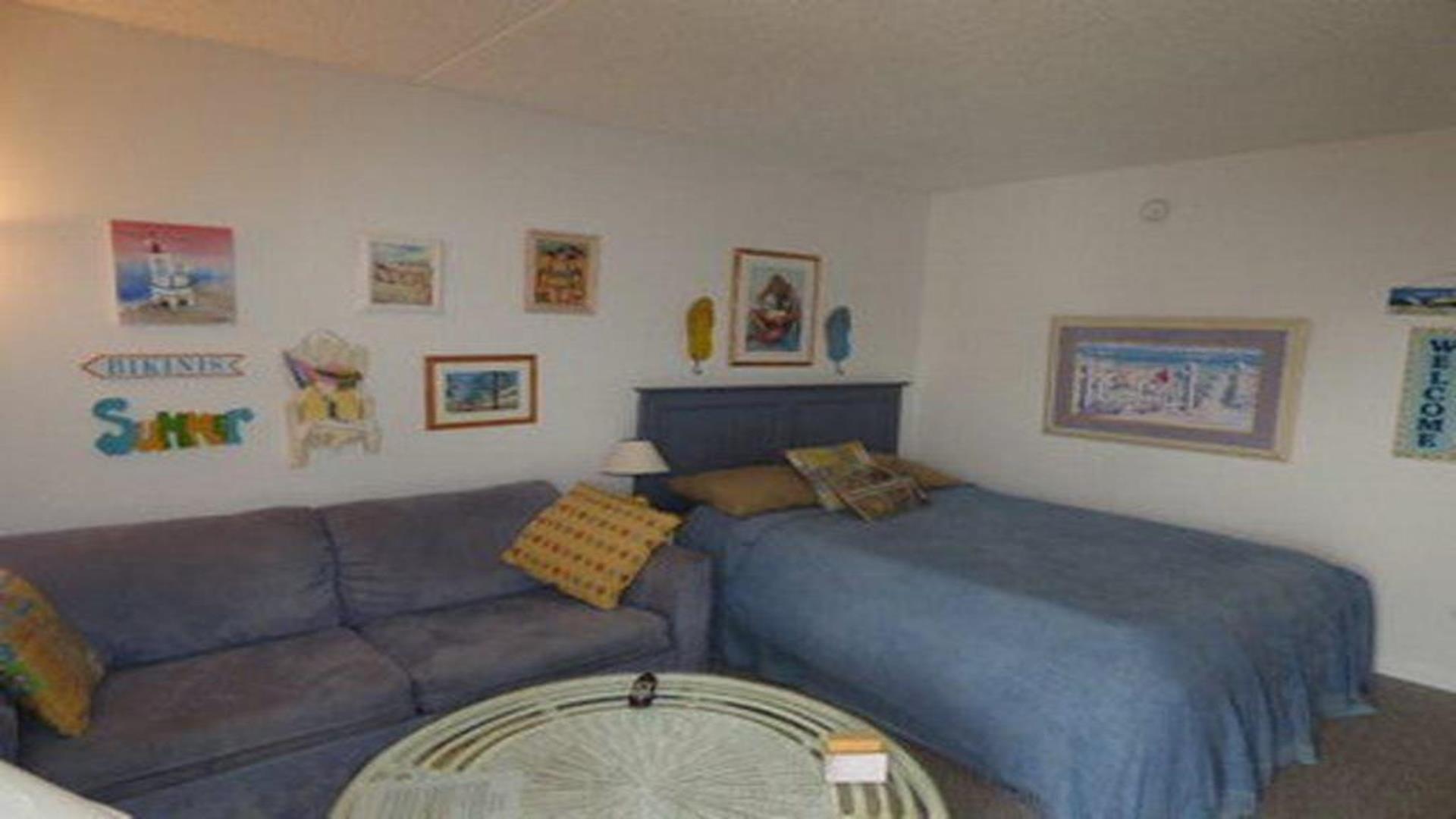 Reasonably priced "Oceanic" EFFICIENCY Motel/condo. Building offers in ground swimming pool, on site coin operated laundry, outside shower and outside gas BBQ grill. Tastefully decorated by local interior designer, including plenty of built in cabinets, dresser drawers and hanging closet space. (No need to live out of your suitcase!) Featuring 1 Queen bed and 1 pullout sofa bed sleeping 4. Mini Kitchen, full bath and assigned parking. Very close to the 11th Street beach and active boardwalk with hours of fun with "Music Pier" concerts, movies, amusements, water park, miniture golf, boardwalk shops, restaurants and much more.