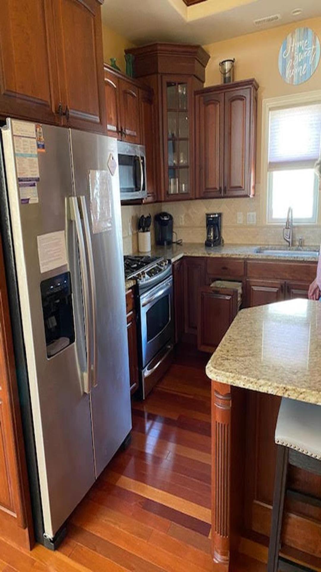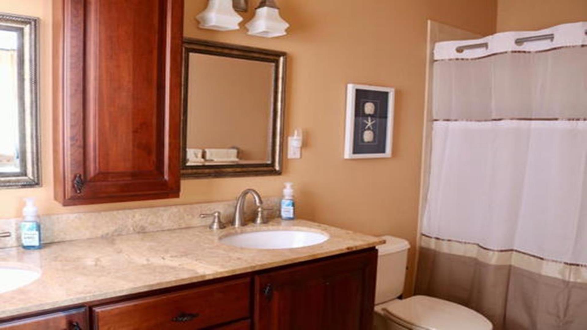 This home has it all! If you enjoy nature, relaxation, and breathtaking water views then this rental is for you! Enjoy stunning sunsets with unobstructed bay views from the deck, living room, dining room, and two master bedroom suites. This home also features an ocean view from the second floor deck. High end interior features include hardwood floors, granite counter tops, and upscale kitchen and bathrooms. Relax and unwind in luxury as you spend time on a quiet and serene part of the island. You are within a short walk to the beach, library, "Fish Alley”, restaurants, playground, and other shopping. This home offers four bedrooms and a bonus room that can sleep 12.Master suite 1 offers top floor view, queen bed, double sink, and full tub with shower. Master Suite 2 features a king bed, double sink, and large tile shower. The second master is spacious enough for a pack & play Oran inflatable mattress, if desired. Both master suites face the bay. The third bedroom has a queen bed. The fourth bedroom features a pyramid bunk bed with trundle underneath. The top bunk bed is a single, bottom bunk bed is full, and the hidden trundle is a single. This kid friendly room features an Xbox One, complete with games. The bonus room has a sofa and a sleeper sofa.32" flat screen TV s are in each bedroom and larger flat screen TV s are in the living and bonus rooms. The pyramid bunk, Queen, Master Queen, and bonus room all have Roku streaming capability to access your Netflix, Amazon Prime, Hulu or Vudu accounts. The living room TV also has streaming capability through a Blu-Ray player. The home is equipped with high speed internet & cable, gas grills, new deck furniture, a fully equipped modern kitchen with Keurig and dishwasher, washer/dryer, central air and heat, ceiling fans, garage for storage, beach chairs, umbrella, beach toys. There is an enclosed outside shower with a fenced in, private back yard! The driveway parks two cars with additional street parking.