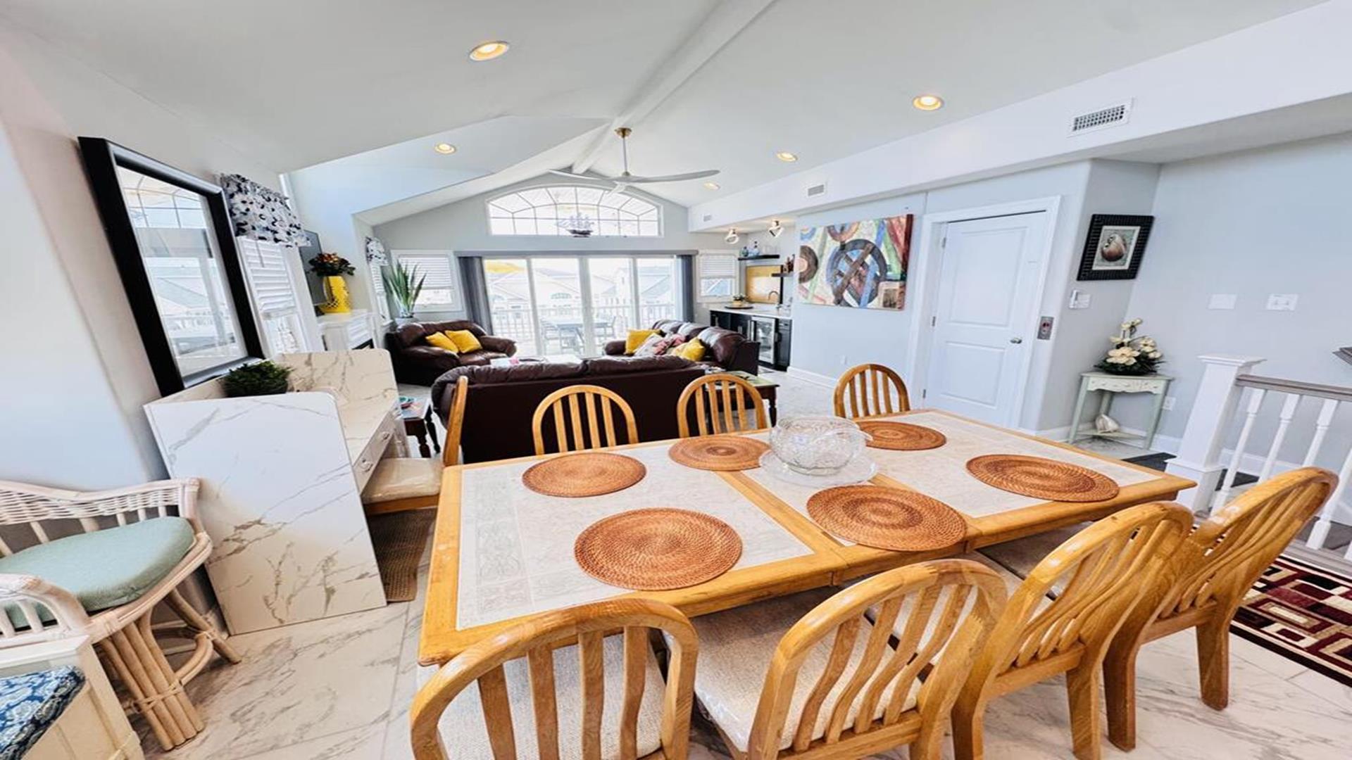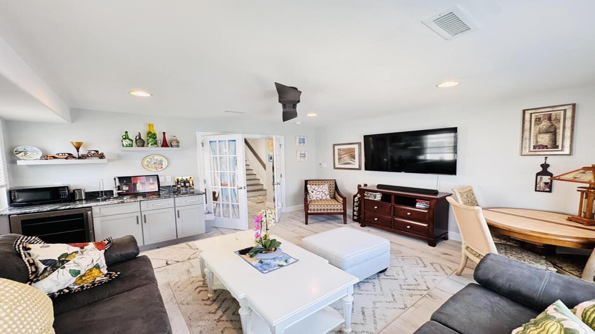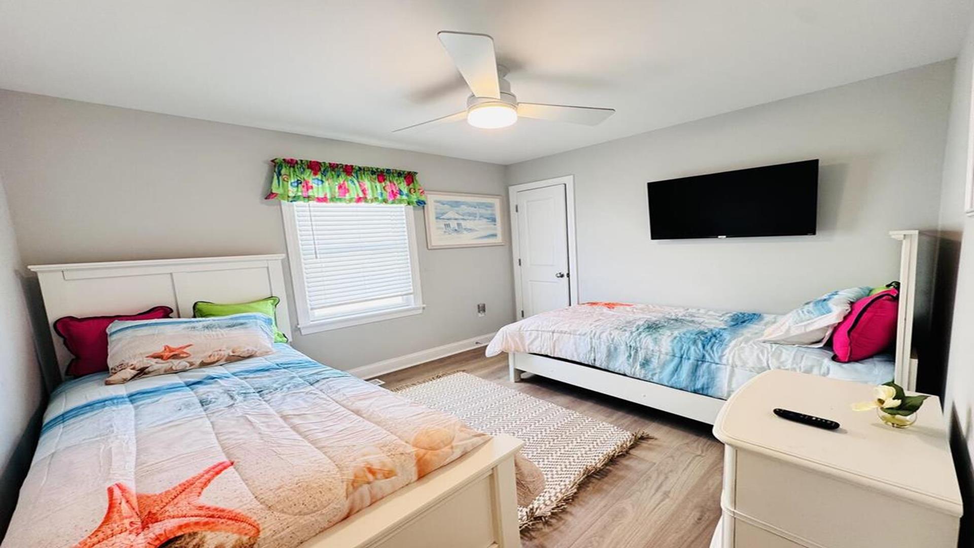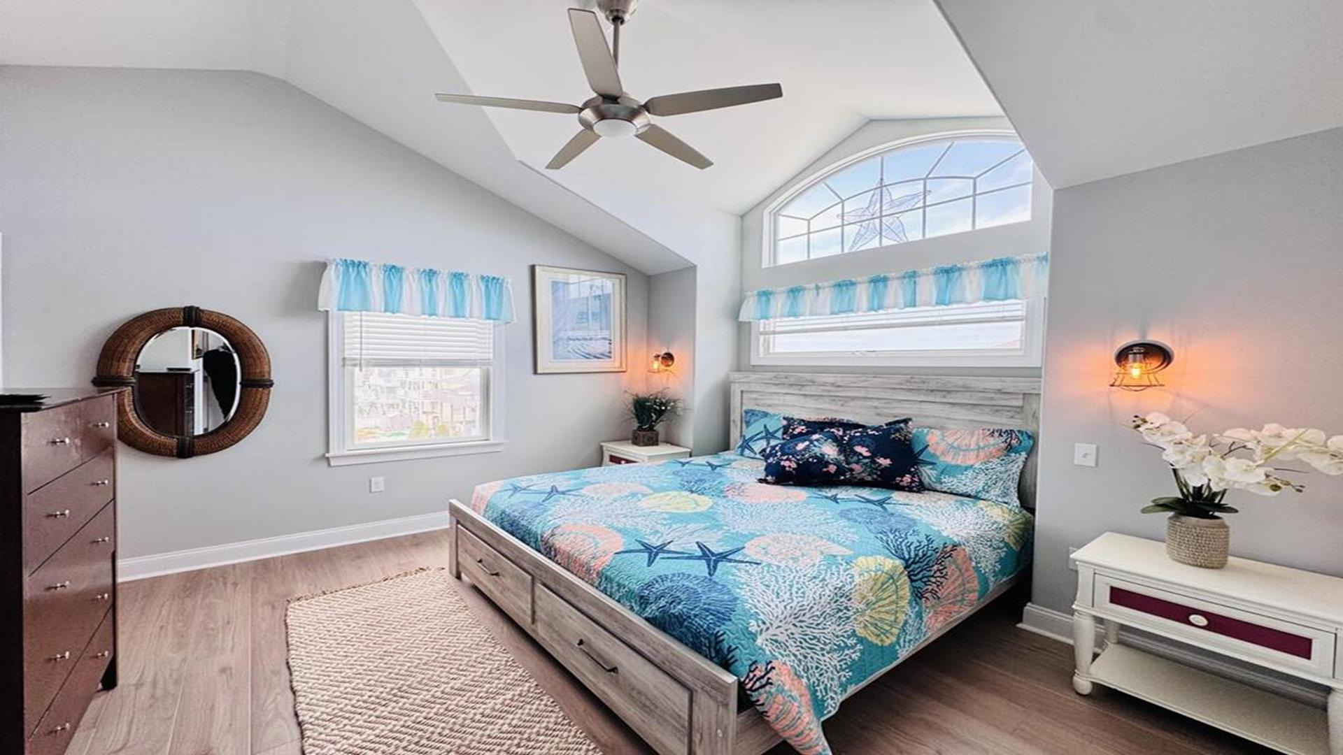New 2026 POOL!!! Heated pool with large tanning ledge and an umbrella with 2 LED lite bubblers. Across from that is a waterfall that is illuminated, cascading down into the pool. At the bottom of the water fall is a spa bench with jets for relaxation. 5 bedroom/4.5 bath townhouse with ground floor elevator and bonus room with full bath! Elevator goes from Garage up to 2nd and third floors. Does not stop at Bonus room level. Mini bar and tv in the garage. As you enter, the front door you have a full bath with bonus room. The room features a queen sleeper sofa and wet bar. Up a flight of steps to the second floor you will find 4 bedrooms and 2 full baths with the laundry closet. One bedroom features a king suite with private bath and spacious deck. The next bedroom features twin single beds, third bedroom features a pyramid bunk bed (single top, full or double on the bottom. The final bedroom features a queen bed. There is also a shared hallway bath on this floor. Top Floor features the beautiful and spacious great room. The living room features a wet bar off the large deck. There is a half bath off the kitchen. The final bedroom is another king bed with private bath. This unit truly has it all. BOOK BOTH SIDES WITH A CONNECTING DOOR FROM THE TOP DECK! BOOK TODAY AS THIS WILL NOT LAST LONG!!!! 5 Beach Tags & 6 Beach Chairs are provided but NOT Guaranteed