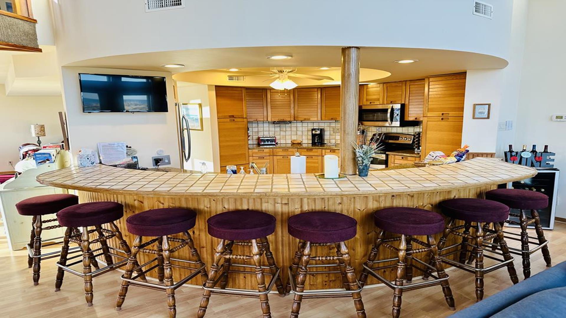 Oceanfront Townhome- 4 Bedrooms, 3.5 Baths. Imagine waking up every morning to spectacular sunrises over the ocean. You will be simply amazed! On the first floor (ground) are three bedrooms and two bathrooms, both with walk in showers. On the second and main floor there are the kitchen, living room, dining room, sitting area and the decks,. In the loft on 3rd floor are two single beds , a queen , a full bath, and a sitting TV area. Let camelot make your vacation dreams come true. $75 Booking Fee (non-refundable).Owner provides Linens