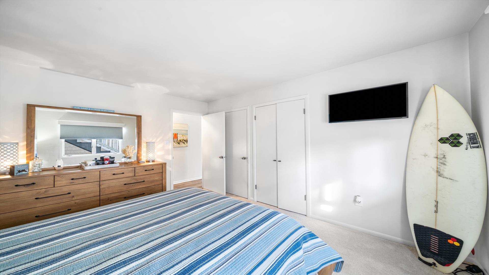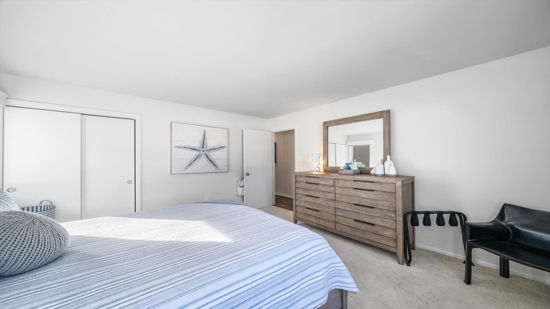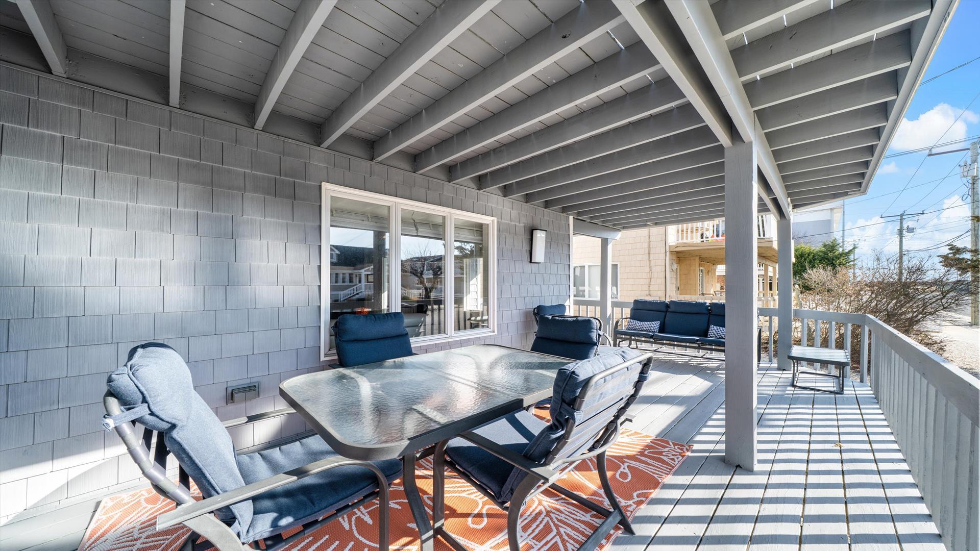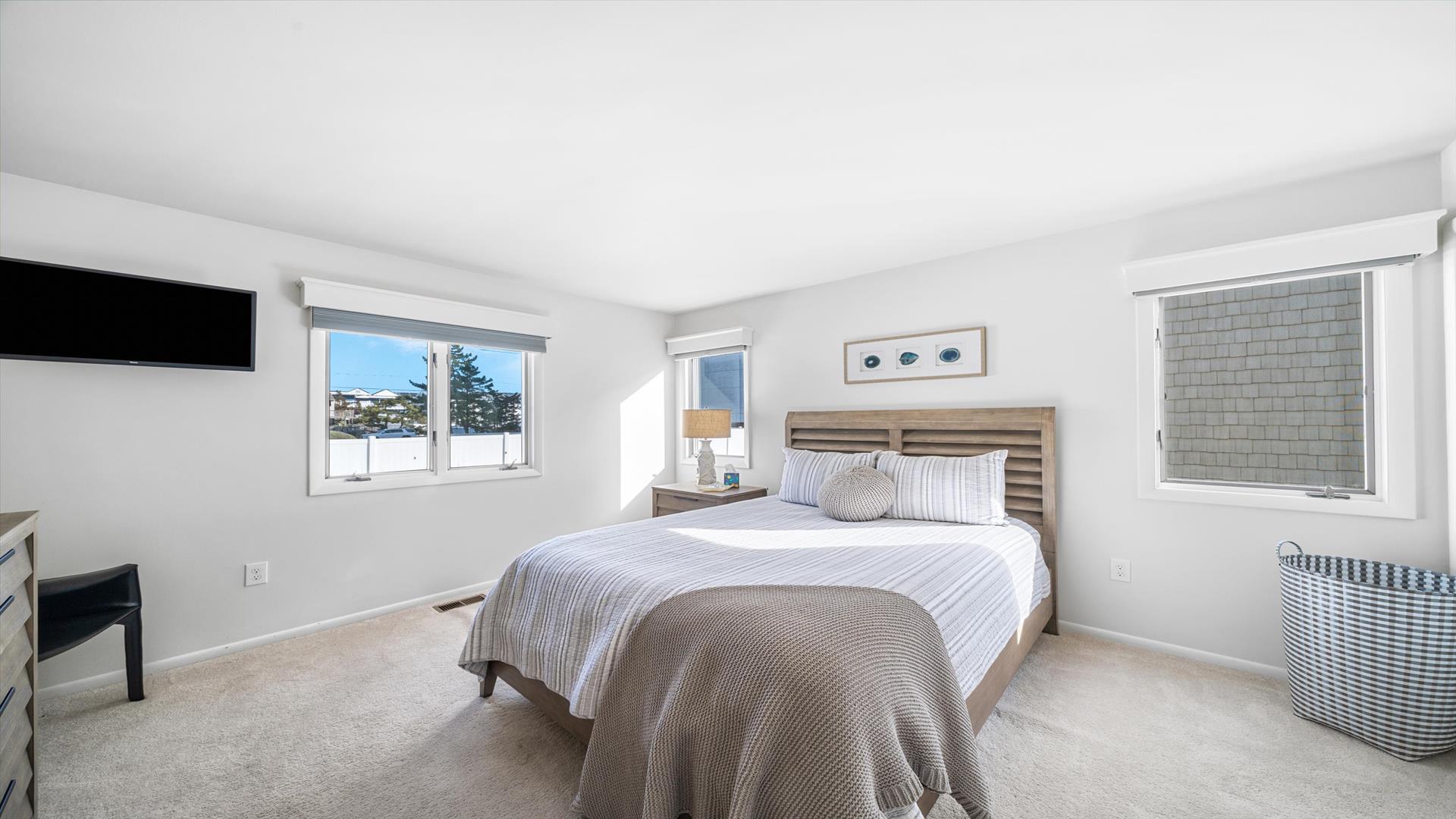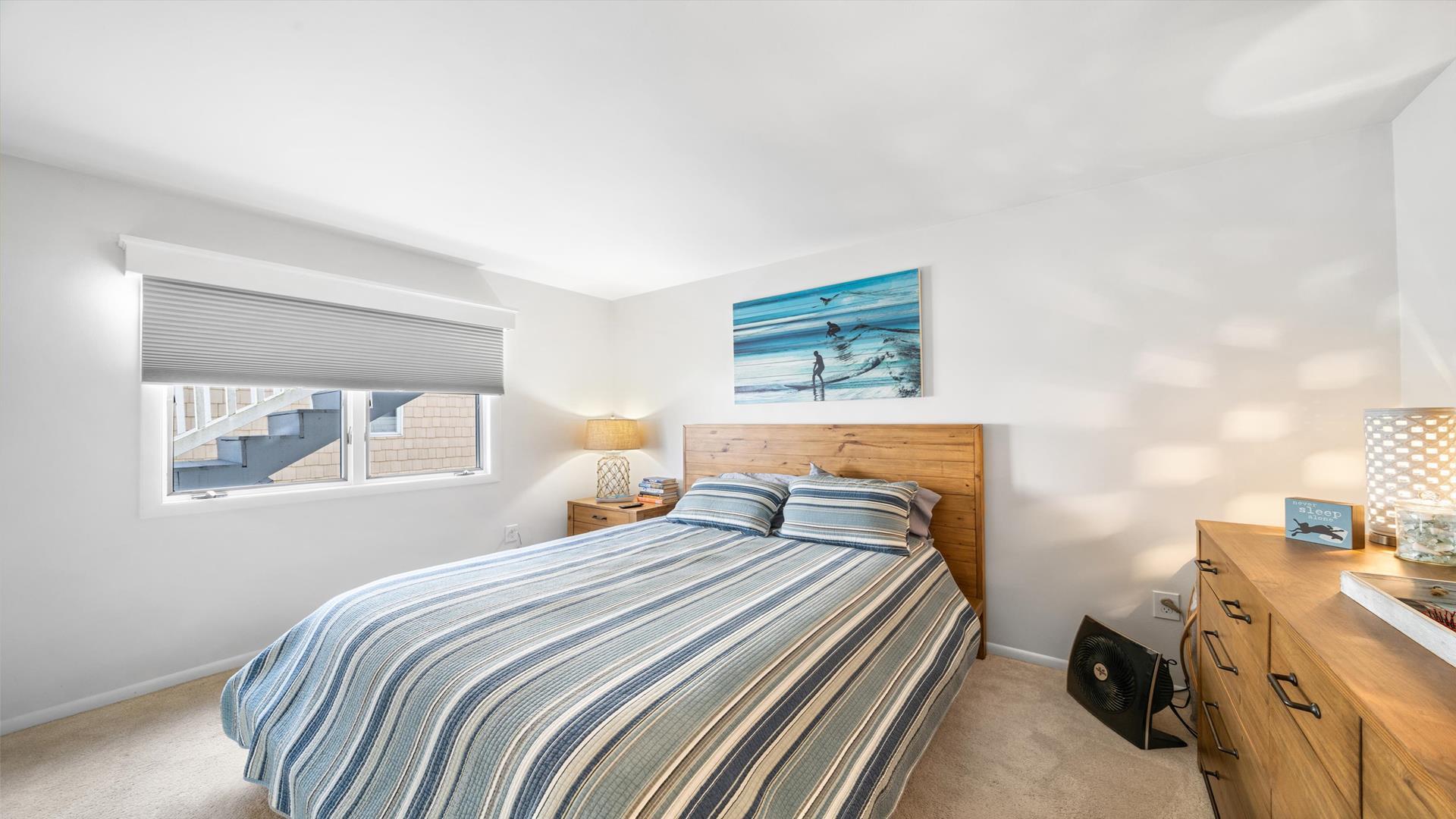 Welcome to your dream vacation rental in the heart of Stone Harbor! This charming property is just 2 blocks away from the pristine beaches, offering the perfect retreat for up to 6 guests. As you step inside, you'll be greeted by a cozy living space with modern furnishings and a flat-screen TV, perfect for relaxing after a day of sun and sand. The fully equipped kitchen features all the amenities you need, including a dishwasher, microwave, disposal, and Keurig coffee maker. Whip up delicious meals and dine together at the spacious dining area. The property boasts 3 inviting bedrooms, including 1 queen bed and 2 double beds, ensuring a restful night's sleep for everyone. With 2 full bathrooms, getting ready in the morning or winding down at night will be a breeze. Enjoy the fresh sea breeze on the deck furniture or open/covered porch, ideal for sipping your morning coffee or unwinding with a glass of wine in the evening. Stay cool and comfortable with the provided AC unit, and take advantage of the convenience of a washer, dryer, ironing board, and vacuum cleaner during your stay. For entertainment, there are 4 TVs throughout the property and complimentary wireless internet access. This rental is pet-free and smoke-free, ensuring a clean and allergy-friendly environment for all guests. Don't forget to rinse off the sand after a beach day with the shared outside shower. With pots, pans, silverware, dinnerware, and blankets provided, all you need to bring are your own linens. Cleaning is included in the rate, making your stay hassle-free and enjoyable. Book your stay at this lovely Stone Harbor property today and create unforgettable memories with your loved ones. Don't miss out on this fantastic opportunity for a beach getaway!