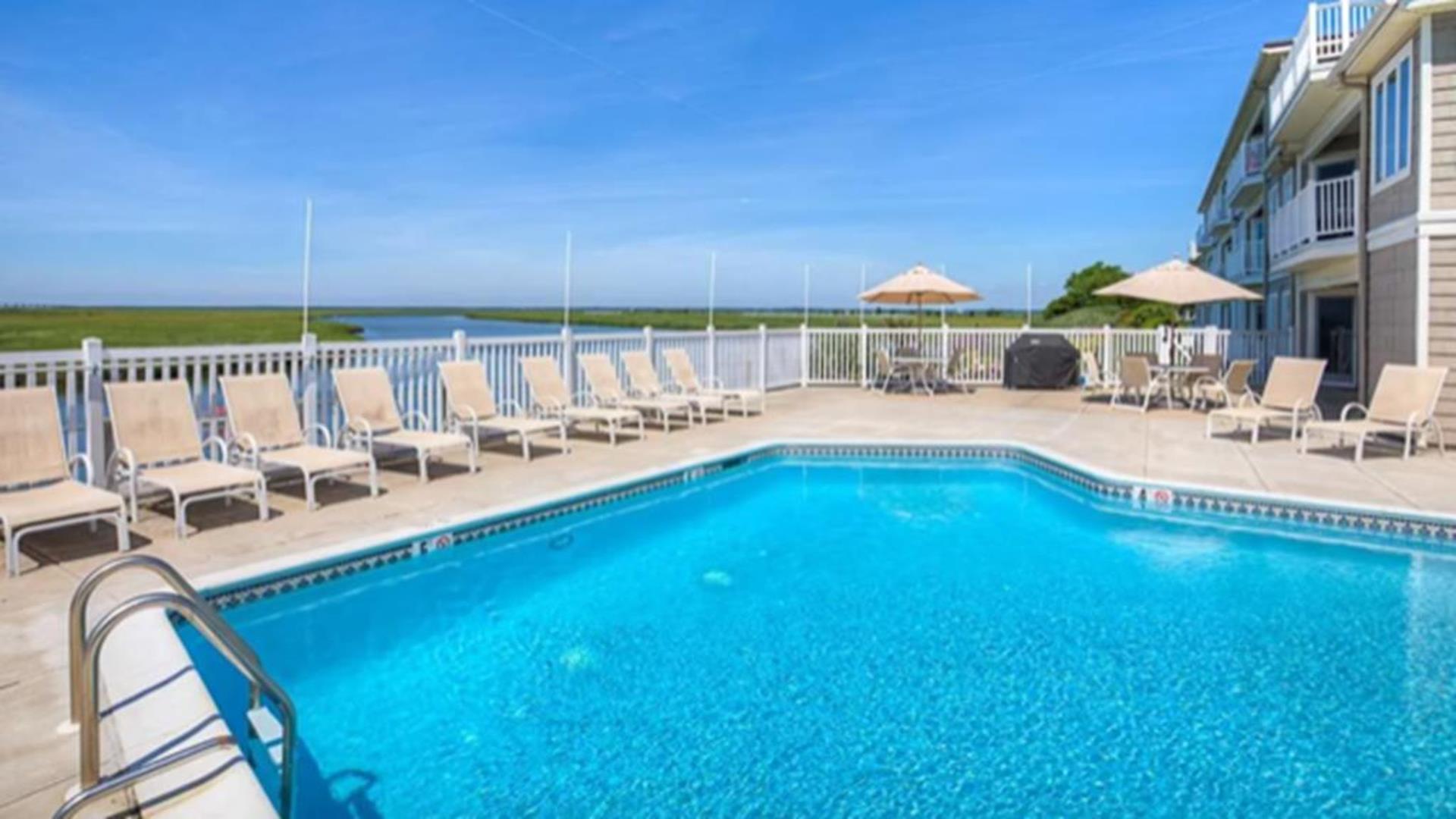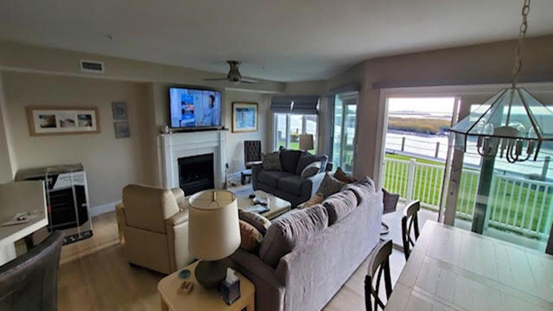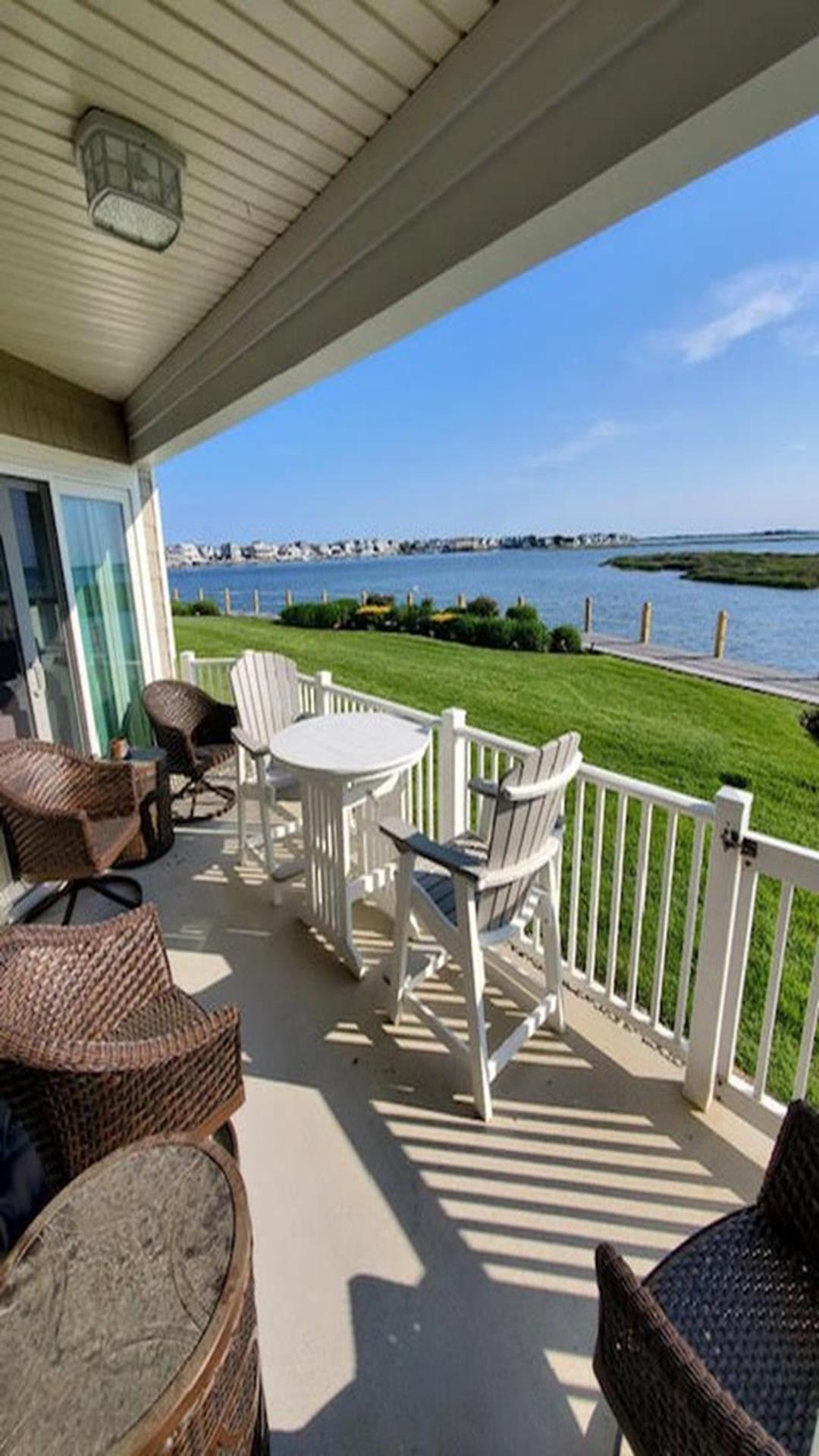 Harbor Landing is a premiere condominium complex right across the bridge from Stone Harbor. This beautiful condo offers luxury living with unparalleled bay views and magnificent sunsets. This immaculately cared for first floor unit boasts three spacious bedrooms, two full bathrooms, (includes masterbath with separate shower and jacuzzi tub), and is beautifully furnished with elegant seashore charm. Relax poolside with your family and enjoy the sprawling bay views or lounge on your private deck with the same water view. All of this and just a short 5-minute walk into the downtown shopping, restaurants and beaches of Stone Harbor. Immaculately maintained complex has a lovely bayside swimming pool with BBQ grill area, elevator, clubhouse/fitness room, storage and ample parking. 6 Stone Harbor beach tags are included.