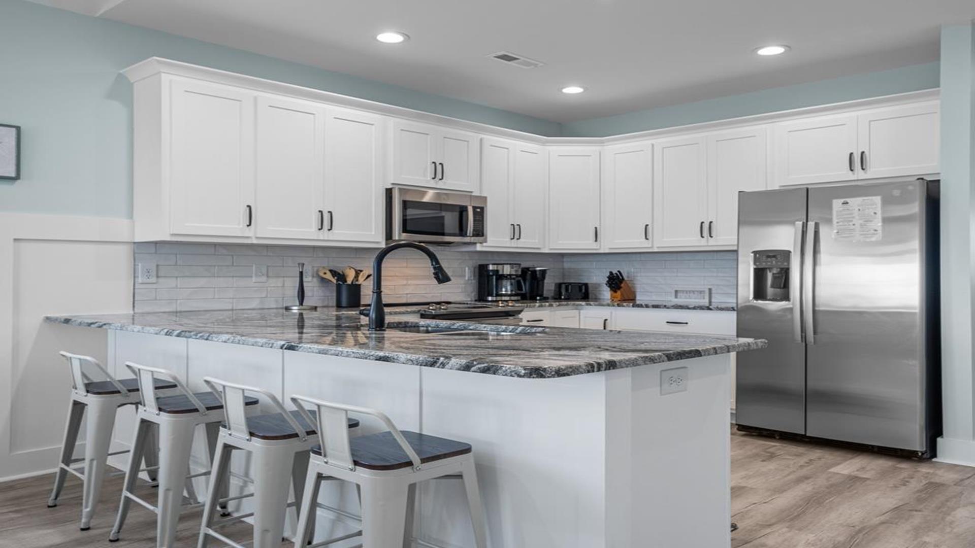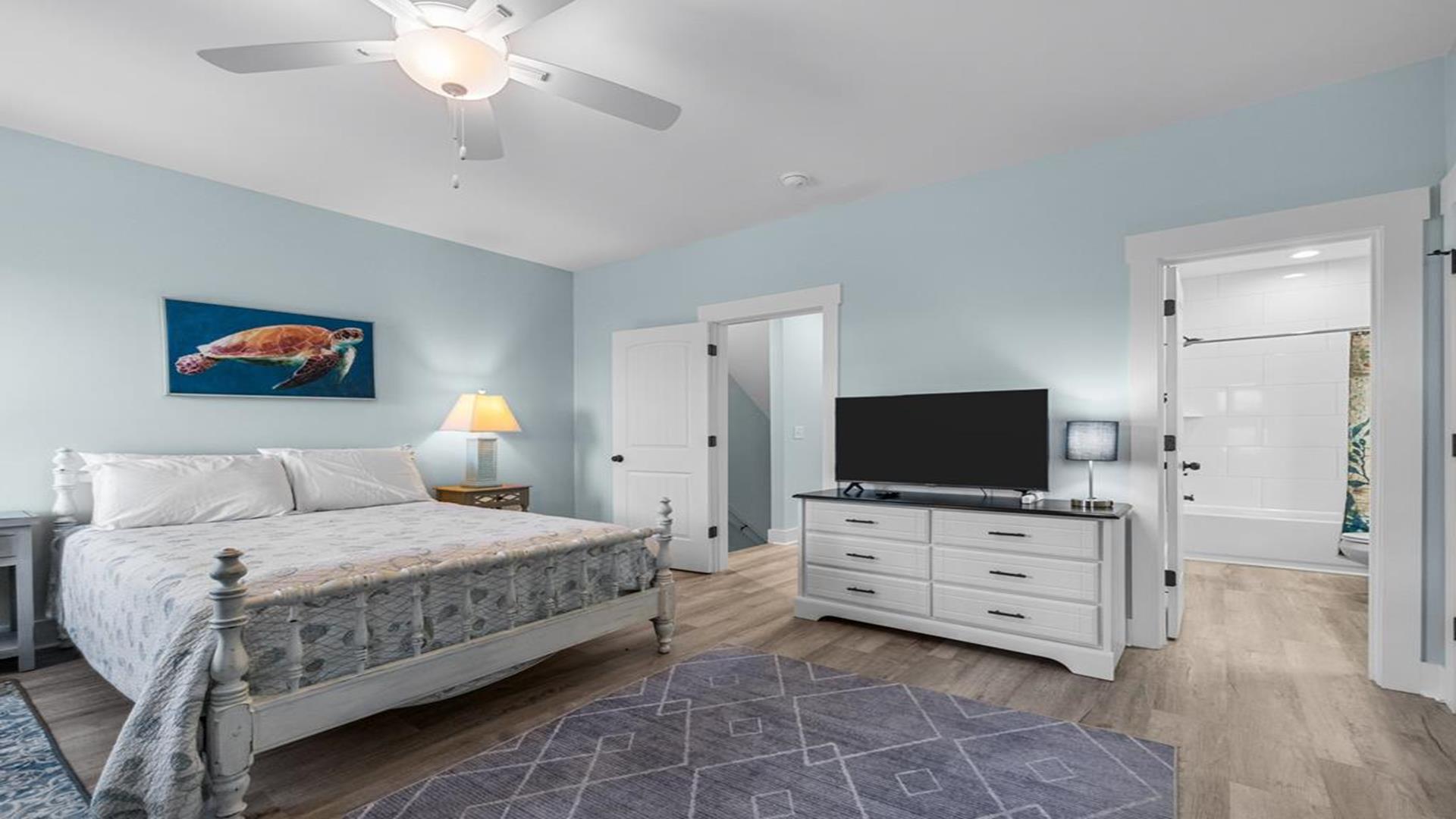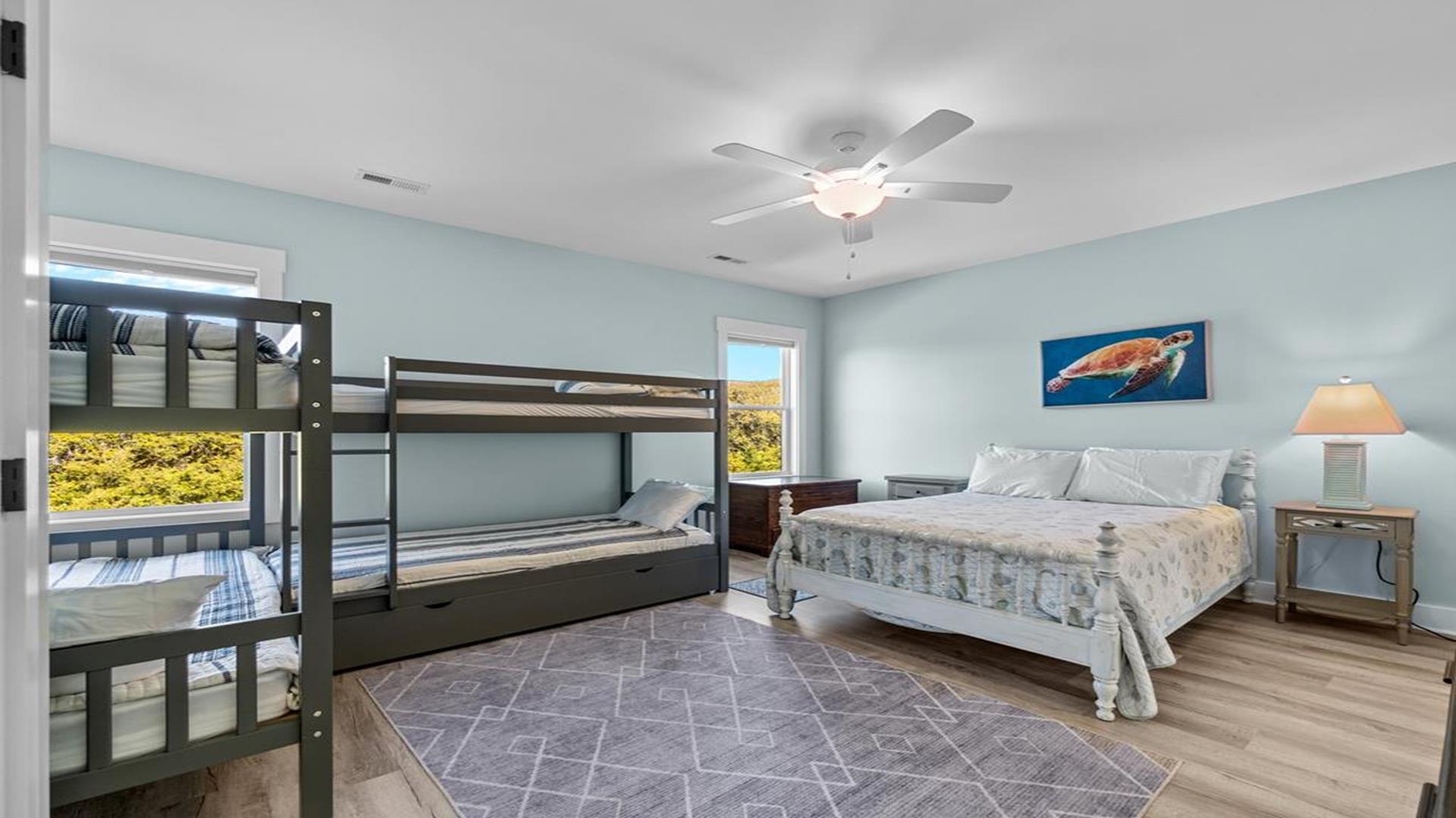 Beautifully home with three levels of spacious living space and views of the Sea! Enter the foyer from the covered area on the ground level, go up to the first level to find two bedrooms each with a private bath. The first-floor king bedroom has a door to the covered deck. The other bedroom has two bunkbeds and a double bed. On the second level is the large living, dining and kitchen area with a door to the covered deck with ocean views! There is a bedroom with two queen beds and a full bath on this level. On the top floor, the fourth bedroom has a king bed and private bath with the best ocean views! Note: no door at the top of the stairs. On the ground level, there is a covered area with an enclosed outdoor shower. Home is only joined by the ground floor storage area. The beach access is only a short distance away on a quiet street and best of all, you can bring your pet. Dogs are allowed w/$215 fee for 1 dog, $404 for 2. 4 BR, 4 Baths / Occupancy Limit: 14 - 2 K, 2 Q, 1 D, 2 BB (4T), LINENS ARE NOT INCLUDED unless purchased, NO SMOKING ALLOWED. *OPTIONAL Equipment Rental - $200 plus tax includes: 4 bikes, 4 helmets, 12 beach chairs, 2 beach umbrellas, 4 boogie boards, 1 cooler w wheels, 1 beach wagon, and 1 Shibumi Shade. *Keyless Entry