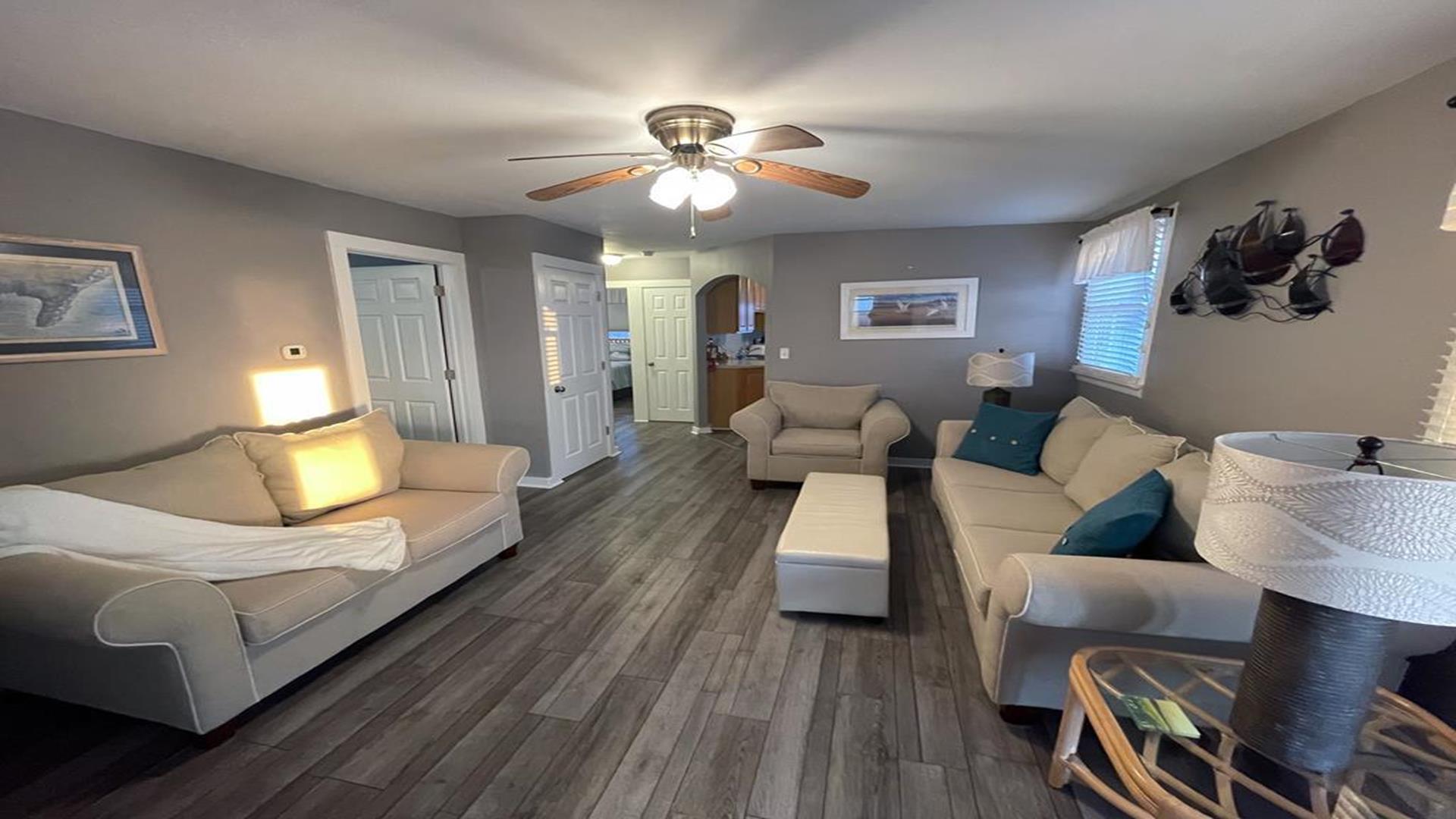 SECOND FLOOR APARMENT- Welcome to 505 Beach Avenue in Villas — a unique bayfront property offering a rare opportunity to rent just the second floor.The second floor includes 2 bedrooms and 1 bathroom. Enjoy private bay access and one-of-a-kind Delaware Bay sunsets on the deck. This special property is also pet friendly! BEDROOMS: Bedroom 1: Queen Bed, Bedroom 1: Twin Beds (2). LINENS: PLEASE BRING YOUR OWN SHEETS AND TOWELS FOR YOUR STAY. BLANKETS AND PILLOWS PROVIDED. BATHROOM: Shower Stall. AMENITIES: equipped kitchen, washer and dryer, enclosed porch, exterior porch enclosed outside shower, fire pit, parking for 2 cars (street parking available), corn hole, hammock, direct access to the bay. INCLUDES: 4 bikes, 4 beach chairs, 4 beach umbrellas. PLEASE NOTE: This property does include exterior stairs to access the unit. PETS: This home is pet friendly, all pet requests must be confirmed with the owner. ATTRACTIONS: 8.7 mile drive to Historic Cape May for beaches and attractions. 9.4 miles to the Cape May Lighthouse. 7.9 miles to Wildwood beaches and attractions. BOOK YOUR STAY TODAY! This property is rented through Coastline Realty LLC Extra fees include $300 Security Deposit, $200 Cleaning Fee, $75 Processing Fee, $150 PER pet fee and an optional vacation insurance "Vacation Standard Protector" Tenant Cancellation Policy. This is a Pet Friendly Property. If you are not bringing a pet during your stay, you will not be responsible for Pet Rent. For online booking, your lease will be adjusted accordingly.
