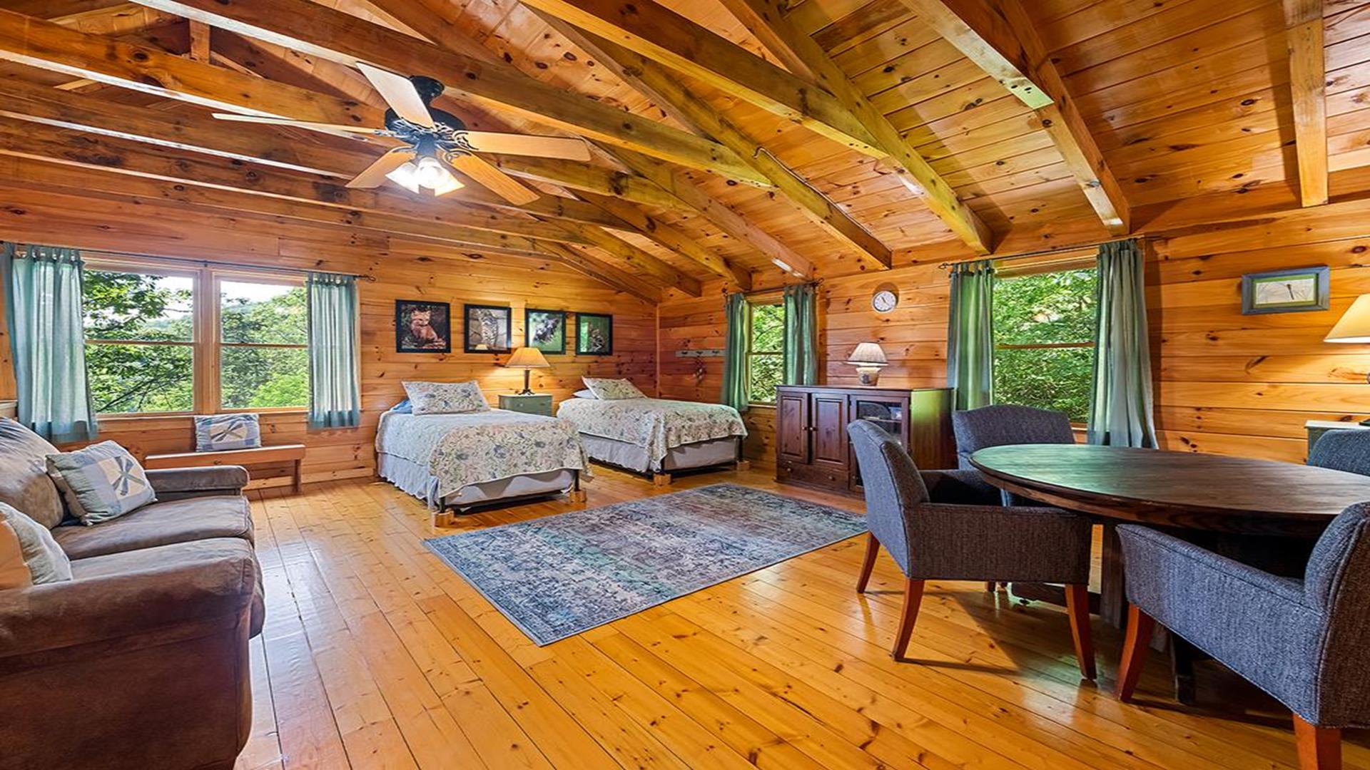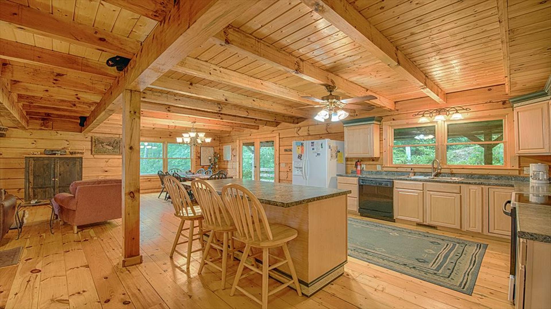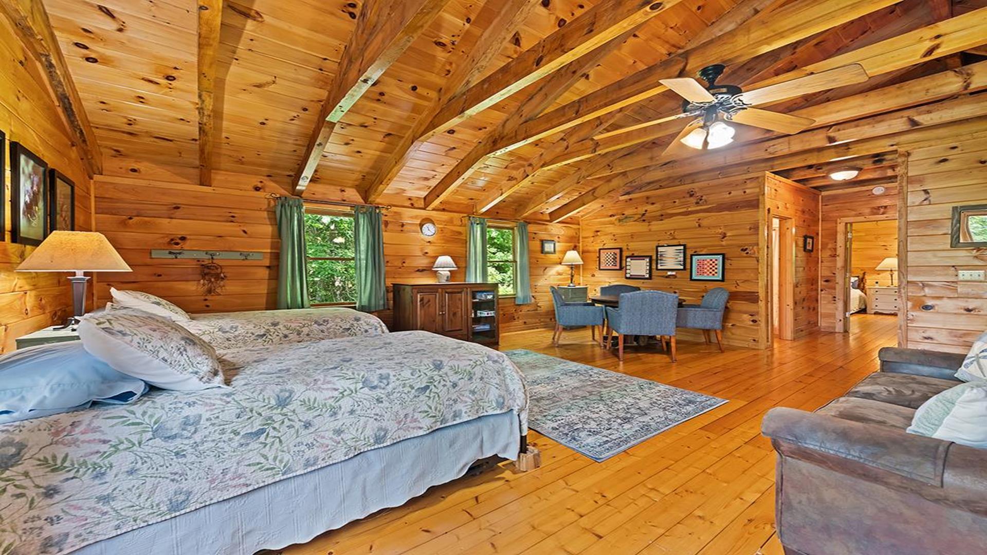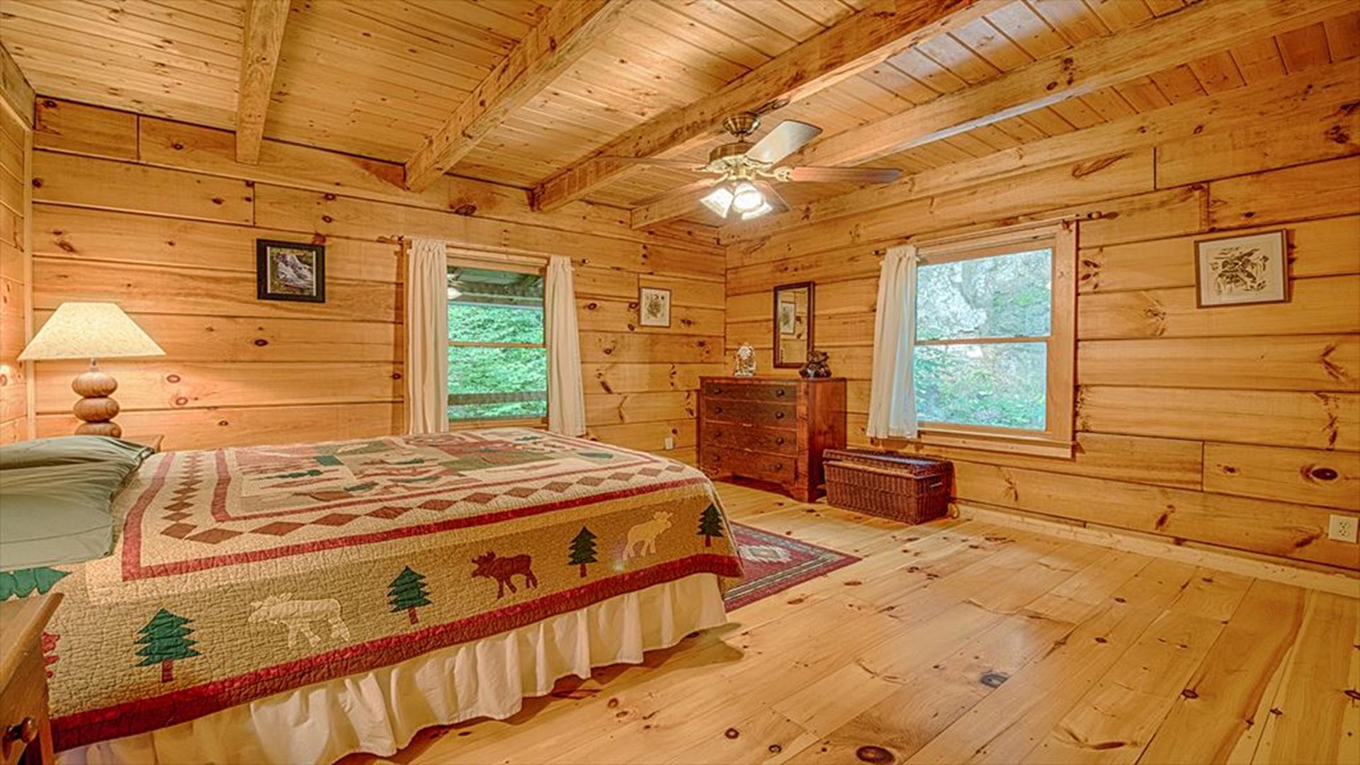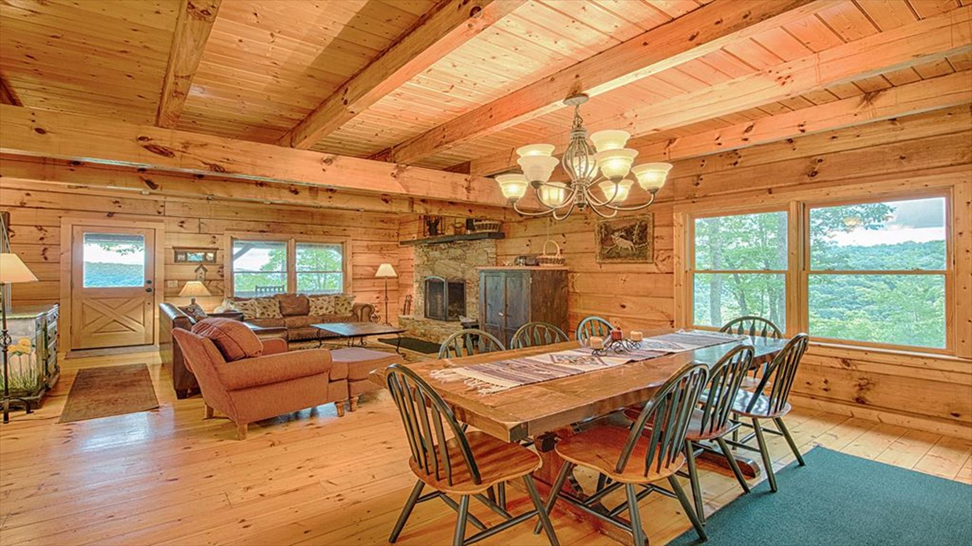 Note to Guests: If you experience any issues booking—such as website timeouts, date glitches, or payment errors—please reach out right away. We’re happy to assist! Welcome to Elk Point Cabin, managed by Carolina Mountain Vacation Homes A trusted, family-owned business proudly serving Maggie Valley and Waynesville travelers since the early 1990s. Nestled on 10 private acres between Maggie Valley and Waynesville, this authentic log cabin combines rustic mountain charm with modern comfort. With sweeping Smoky Mountain views and Great Smoky Mountains National Park just 2 miles away, Elk Point Cabin is the perfect year-round retreat for nature lovers and relaxation seekers alike. THE SPACE This spacious retreat accommodates up to 8 guests and features: • 3 bedrooms – 2 queens on the main level and 1 king Sleep Number upstairs • Sleeping loft with 2 trundles (ideal for kids) • 2 full bathrooms • Open great room with vaulted ceilings and a stone wood-burning fireplace • Fully equipped kitchen with cookware, dishes, utensils, microwave, and coffee options (Keurig & regular) • Washer / dryer for guest use Please note: Access from the driveway is via a short inclined stone pathway with handrail; the property is not suitable for guests with mobility challenges. RELAXATION & OUTDOOR LIVING Enjoy two covered decks with rocking chairs and a swing, perfect for morning coffee or stargazing at night. After a day of hiking or sightseeing, unwind in the five-person hot tub, gather at the fire pit, or grill dinner on the charcoal BBQ. AMENITIES • 3 bedrooms / 2 full baths • King Sleep Number bed, 2 queens, loft with 2 trundles • High-speed Wi-Fi (2025 upgrade) • Satellite TV • Wood-burning fireplace • Hot tub and fire pit • Charcoal grill • Central heat & AC • Washer / dryer • Fully stocked kitchen with microwave, cookware, and coffee makers • Linens & towels provided • Starter paper products and soaps included • 1 small dog (≤ 35 lbs) allowed – $75 + tax fee (required disclosure when booking) • No smoking inside the home LOCATION HIGHLIGHTS • Cataloochee Valley / Elk Viewing Area – 3 mi • Maggie Valley – 14 mi • Waynesville – 16 mi • Cherokee – 30 mi • Asheville & Biltmore Estate – 36 mi Day-trip favorites: Pigeon Forge, Gatlinburg, Grandfather Mountain, and Lake Lure. HOUSE RULES • Check-in after 4 PM / Check-out by 10 AM • Maximum occupancy: 8 guests • No parties or events • No smoking inside the home • 1 small dog (≤ 35 lbs) allowed with fee • Minimum renter age: 25 years • Please respect neighbors and the mountain environment HOST MESSAGE Our team at Carolina Mountain Vacation Homes looks forward to welcoming you to Elk Point Cabin, where ten acres of privacy, breathtaking views, and the sounds of nature create the ultimate Smoky Mountain experience.