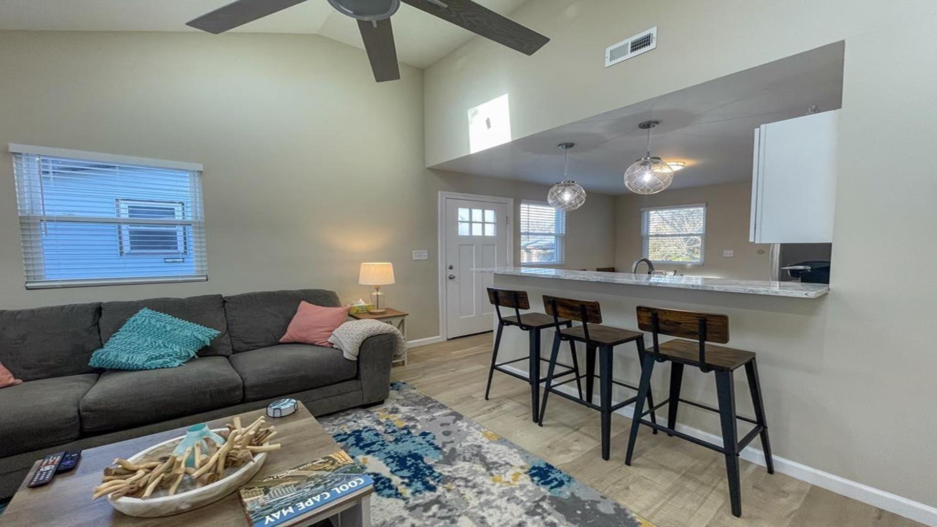 Welcome to your charming vacation retreat in the heart of West Cape May! This cozy 3-bedroom, 1-bathroom property is the perfect getaway for up to 6 guests. As you step inside, you'll find a well-equipped eat-in kitchen with modern appliances including a dishwasher, microwave, disposal, toaster, and blender. The comfortable living room is the ideal spot to unwind after a day of exploring the city. The property features 1 queen bed, 1 double bed, and 1 single bed, ensuring a good night's sleep for everyone. Stay comfortable year-round with central AC, electric heat, and ceiling fans throughout the house. Outside, you'll find a private yard, deck furniture, and a BBQ gas grill for al fresco dining. Enjoy the convenience of 2 parking spaces and close proximity to Park Blvd shops, including Nikki's Cafe and Juicery and Ostara's coffee shop. Additional amenities include a stackable washer, and dryer, iron, ironing board, TV, Keurig coffee maker, WIFI, and a TV streaming device for entertainment. Cable is not provided. Please note that this property is smoke-free and does not allow pets. Tenants are required to bring their own linens. Don't miss out on this fantastic vacation rental with all the comforts of home and more. Book your stay today and make unforgettable memories in West Cape May!