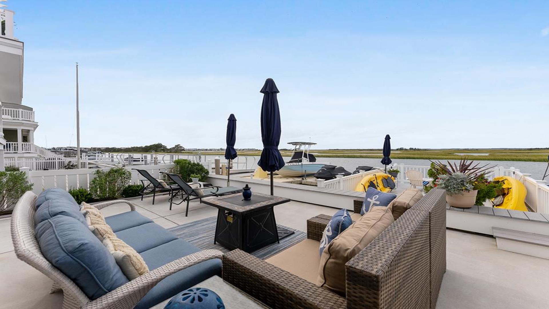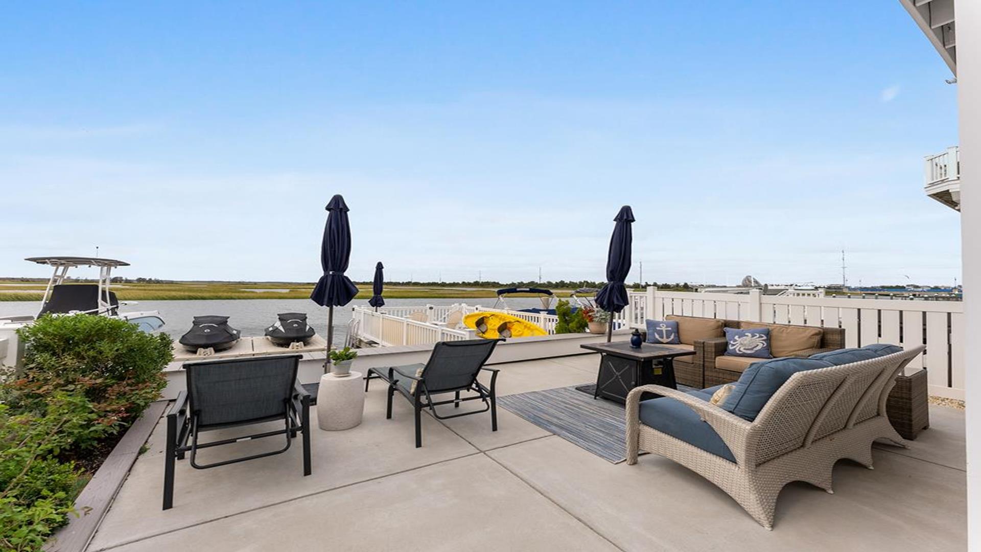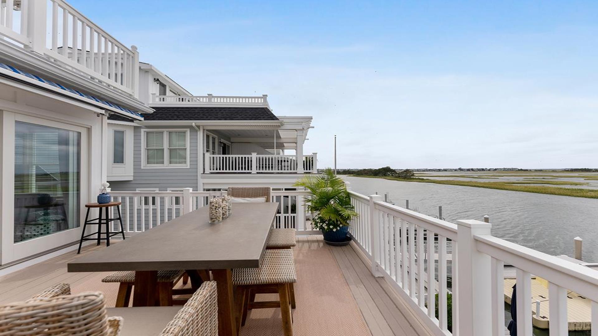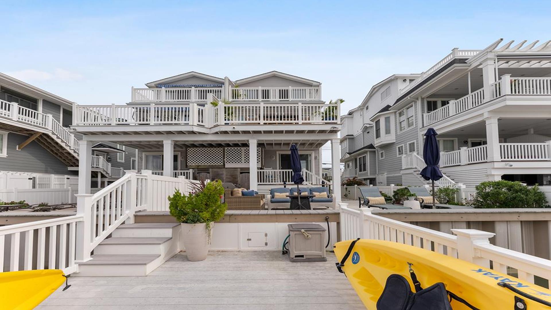 Stunning bayfront townhome! This completely renovated and stylishly furnished 4 bedroom, 4 full bath home features 1 boat slip with 2 jet ski ramps and a generously-sized pier reserved exclusively for the south unit. The ground-level bayside deck and pier offer ample space for entertainment, where you can lounge in the sun or enjoy water activities like kayaking, paddleboarding, or boating. Enjoy the most exquisite bay and sunset panoramas Avalon has to offer! Perfectly situated just a short walk away from both the beach and downtown Avalon. The first level floor boasts a generously-sized family room with a television, a queen sleeper sofa, and convenient access to the bayside dock and deck. A bedroom on this level features a queen-sized bed with an adjacent hallway bathroom. The bright and sunlit second-floor great room features a well-appointed kitchen with a center island, hardwood floors, and access to the bay-view deck. Both the indoor and outdoor dining areas offer comfortable seating for both family and guests. You can also enjoy breathtaking views from the second and third-floor decks while dining al fresco. The second-story deck features a new awning, perfect for enjoying afternoon shade or taking a siesta. On the second floor, you'll find a full bath in the hallway along with two bedrooms, and 2 bathrooms. One of these bedrooms is furnished with a full-sized bed and a pair of twin bunk beds, while the other bedroom features a king-sized bed. Enjoy the master suite on the third floor with a king-sized bed, an ensuite bathroom with a bathtub & shower and private deck. Extra amenities include an enclosed outdoor shower, electric car charger, three televisions, wireless internet, access to the garage for your bikes & gear, (1) off-street parking space, (2) double kayaks, (1) paddleboard and an assortment of bayfront floats & toys. Availability is limited.... reserve your Avalon vacation today!