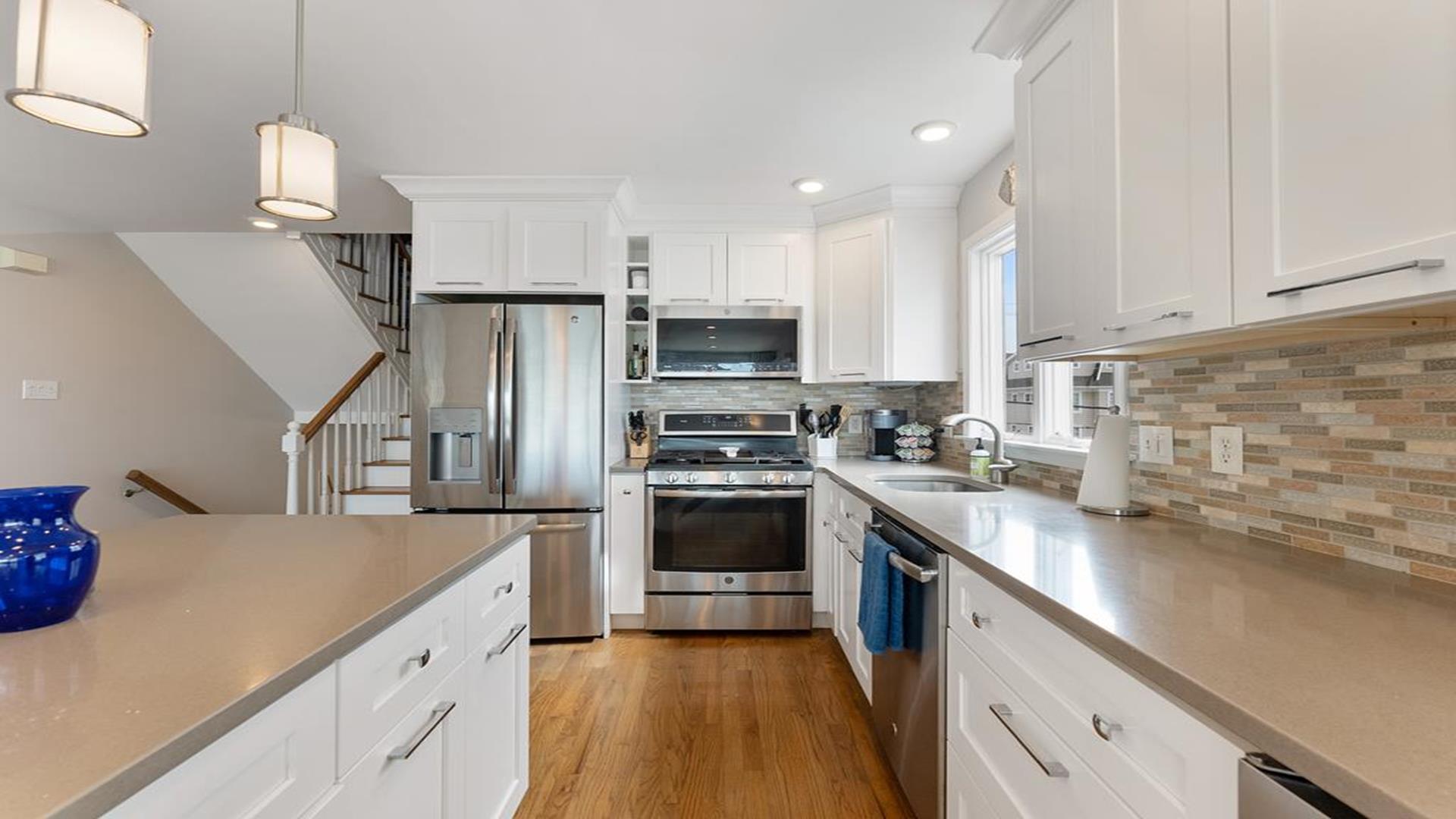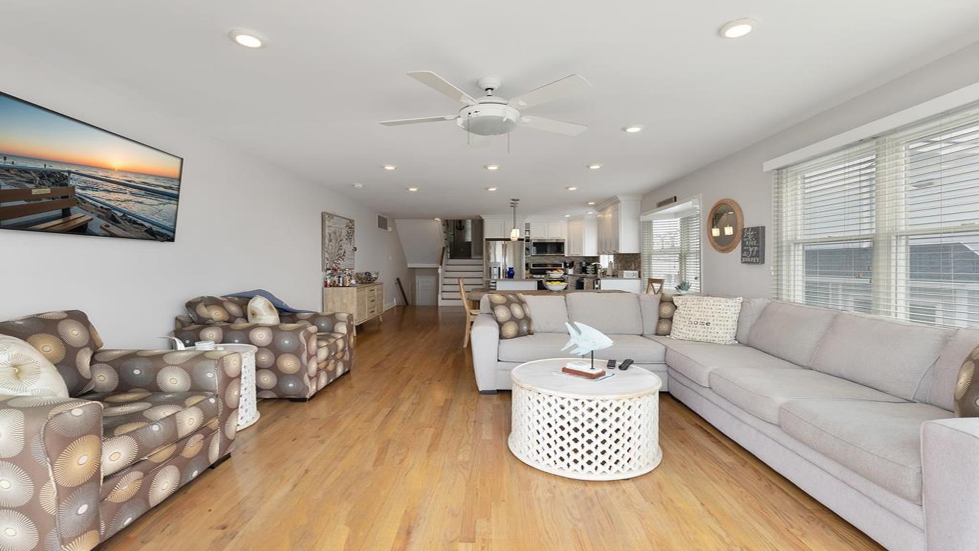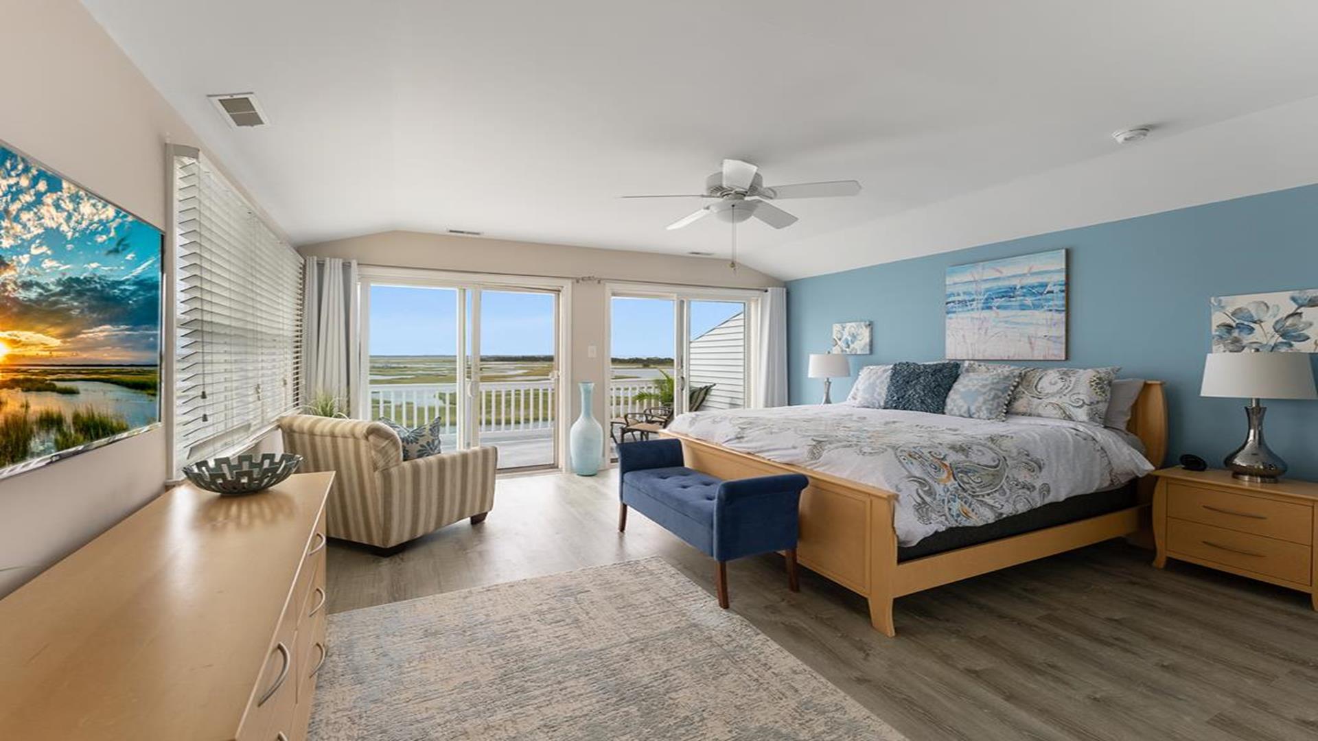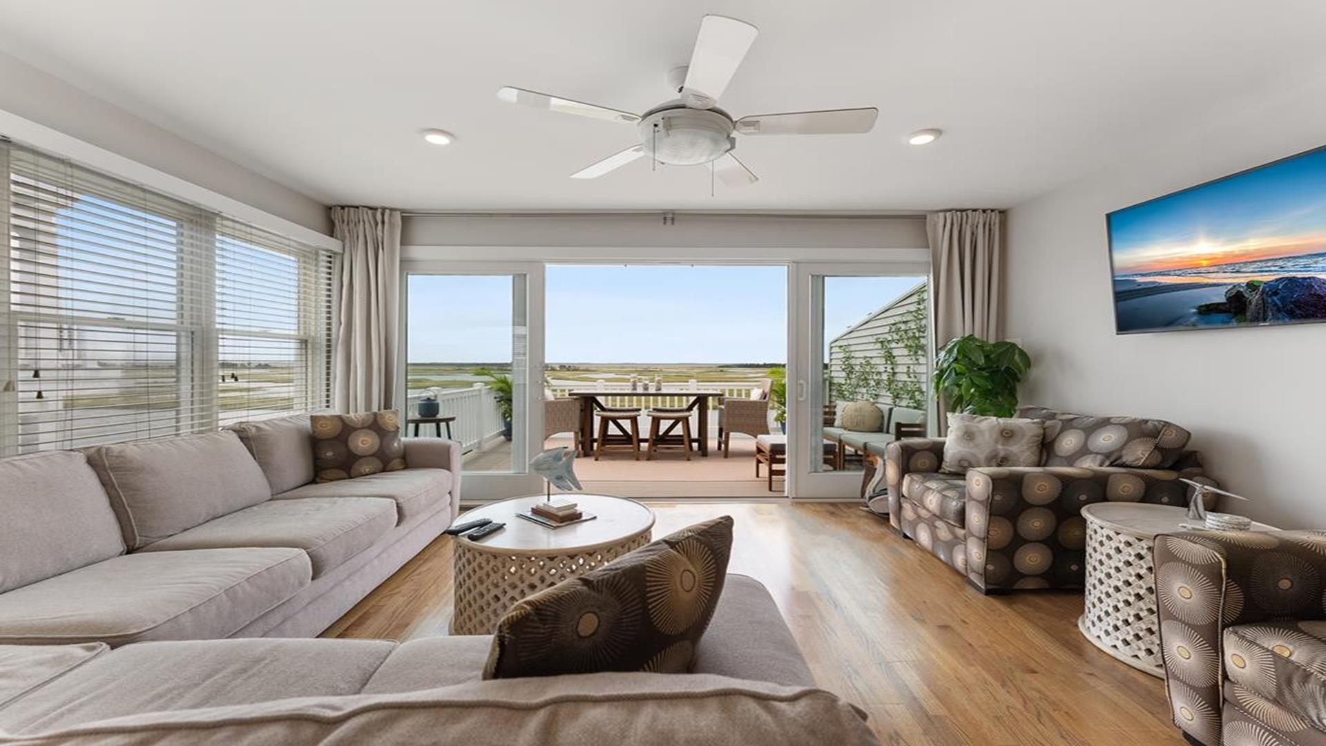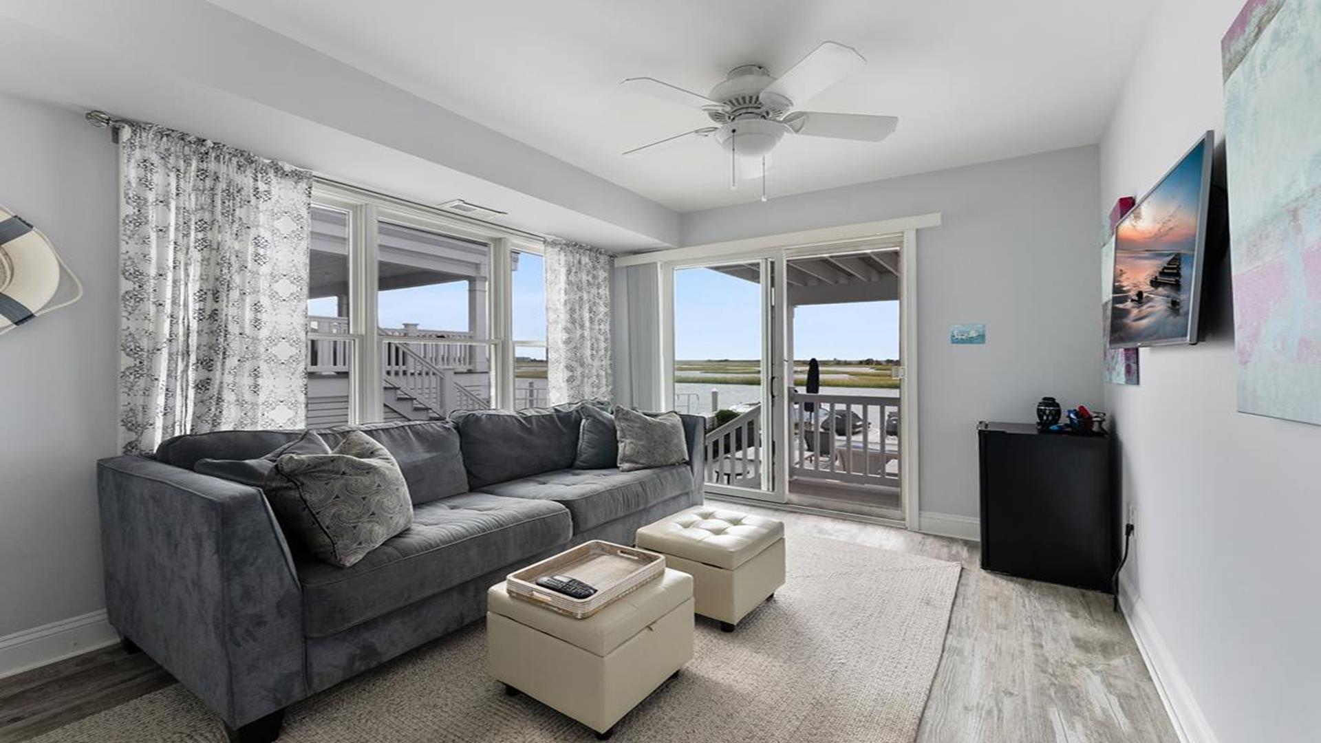 Stunning bayfront townhome! This completely renovated and stylishly furnished 4 bedroom, 4 full bath home features 1 boat slip with 2 jet ski ramps and a generously-sized pier reserved exclusively for the south unit. The ground-level bayside deck and pier offer ample space for entertainment, where you can lounge in the sun or enjoy water activities like kayaking, paddleboarding, or boating. Enjoy the most exquisite bay and sunset panoramas Avalon has to offer! Perfectly situated just a short walk away from both the beach and downtown Avalon. The first level floor boasts a generously-sized family room with a television, a queen sleeper sofa, and convenient access to the bayside dock and deck. A bedroom on this level features a queen-sized bed with an adjacent hallway bathroom. The bright and sunlit second-floor great room features a well-appointed kitchen with a center island, hardwood floors, and access to the bay-view deck. Both the indoor and outdoor dining areas offer comfortable seating for both family and guests. You can also enjoy breathtaking views from the second and third-floor decks while dining al fresco. The second-story deck features a new awning, perfect for enjoying afternoon shade or taking a siesta. On the second floor, you'll find a full bath in the hallway along with two bedrooms, and 2 bathrooms. One of these bedrooms is furnished with a full-sized bed and a pair of twin bunk beds, while the other bedroom features a king-sized bed. Enjoy the master suite on the third floor with a king-sized bed, an ensuite bathroom with a bathtub & shower and private deck. Extra amenities include an enclosed outdoor shower, electric car charger, three televisions, wireless internet, access to the garage for your bikes & gear, (1) off-street parking space, (2) double kayaks, (1) paddleboard and an assortment of bayfront floats & toys. Availability is limited.... reserve your Avalon vacation today!