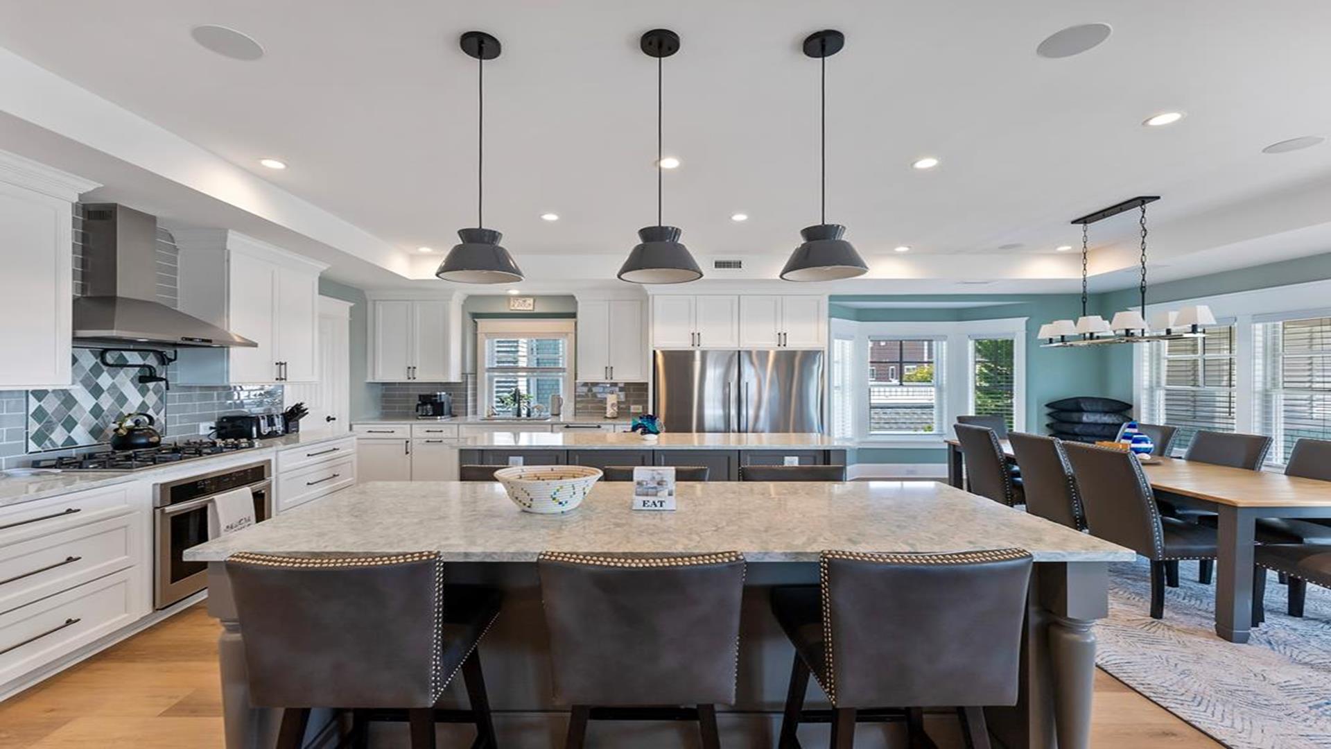 This luxurious 7-bedroom, 6.2-bathroom beach home, located just three houses from the ocean, features stunning views, a 4-stop elevator, and a large heated pool and spa. Spread over an oversized lot, it includes spacious living areas, a chef’s kitchen, and multiple ensuite bedrooms—six of which have private decks. The home includes a flexible office space that doubles as a 7th bedroom, multiple gathering spaces, and a well-equipped laundry area. There is also a powder room and commercial ice maker that can be accessed from the pool area. The first floor also includes a large family room with plenty of seating and access to a private deck. The outdoor space is perfect for relaxation, with a sun shelf, spa, and furnished covered deck. Conveniently close to the beach, town, and tennis courts, it also comes with beach gear and bikes for guest use. The bedroom layout is as follows, first floor includes an ensuite bedroom with a queen bed and a second ensuite bedroom with 2 single beds. The second level includes 2 bedrooms, one ensuite with king size bed and the private office with 1 single bed. The third story includes 3 ensuite bedrooms each with a king sized bed. Enjoy ocean views from the East side ensuite bedroom. Sorry, no pets permitted.