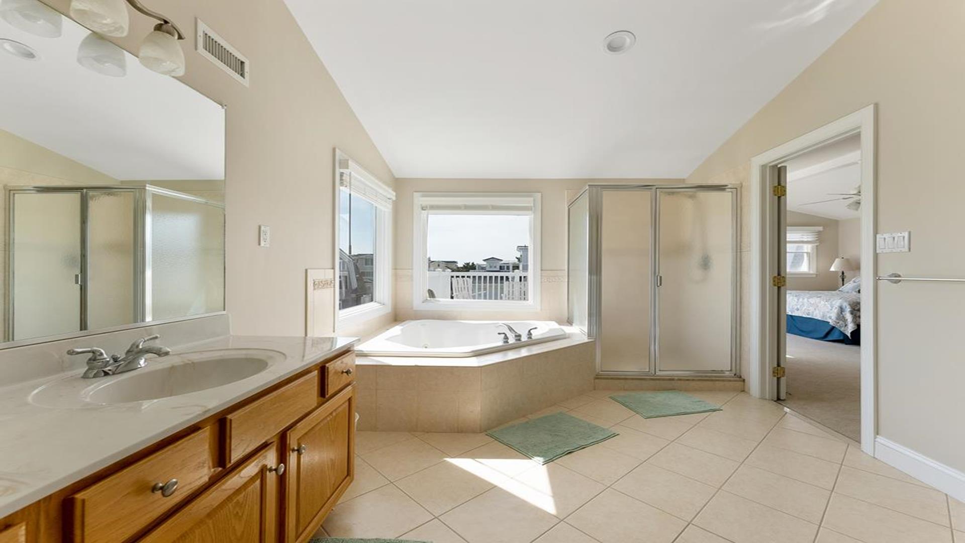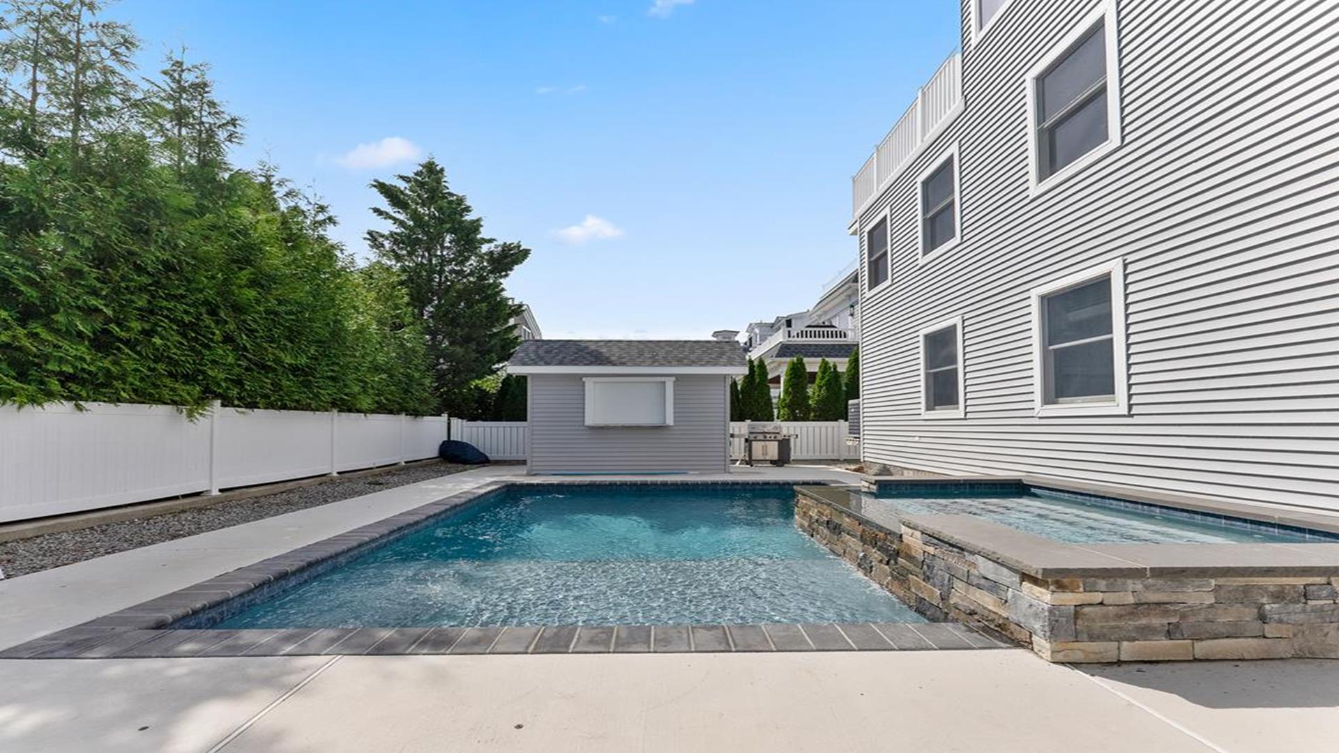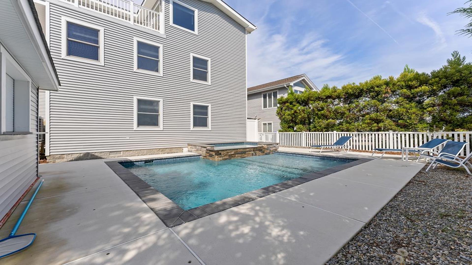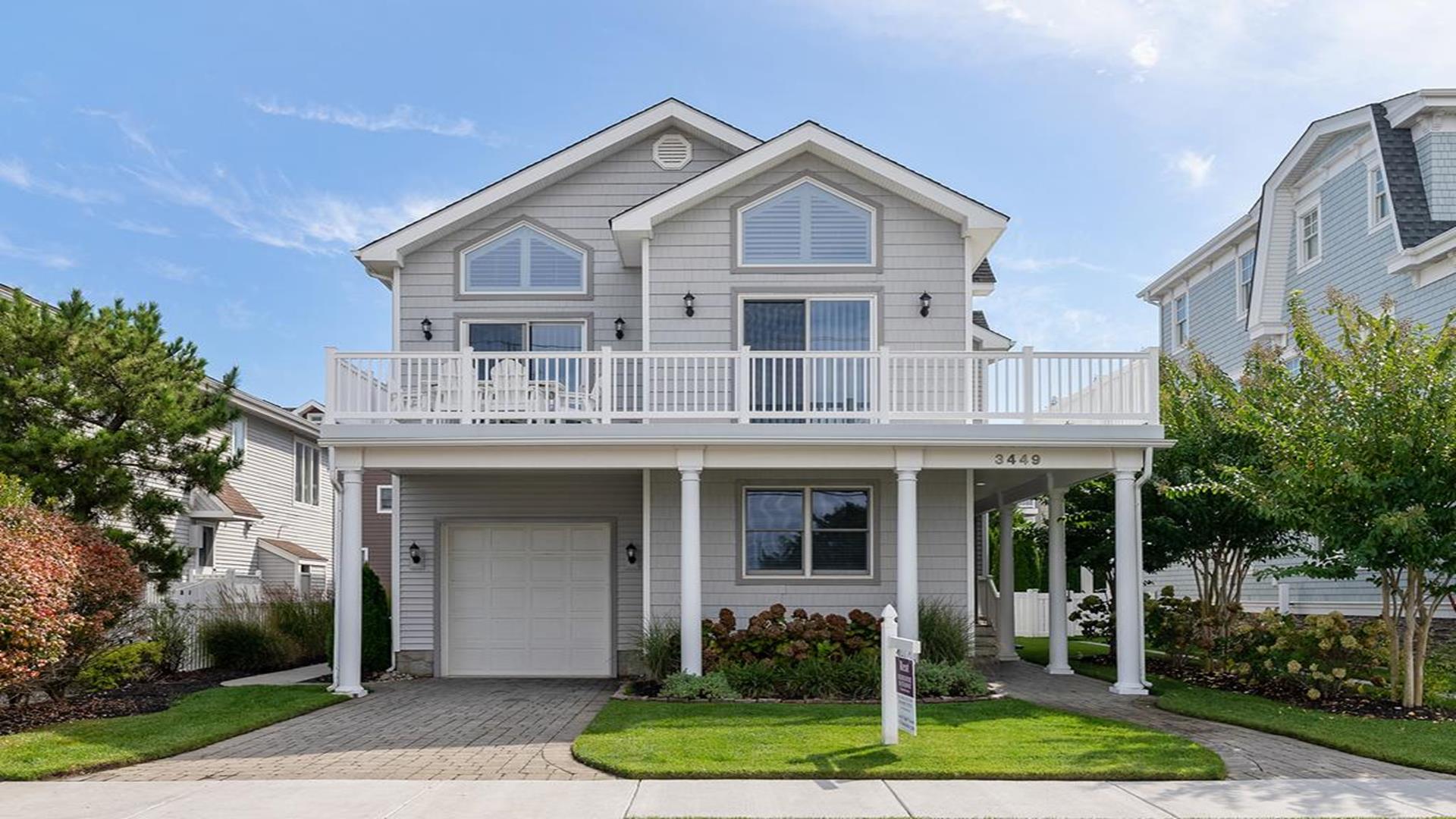 Beach Block Home with POOL!! This spectacular upside down 3 story, 5 bedroom and 5 bath home is a stone’s throw away from some of the widest beaches on Seven Mile Island. 3449 First Avenue is an immaculate beach block beauty located on the East side of First Avenue. Park your car and walk to everything Avalon has to offer from tennis, basketball, downtown, and the 39th Street playground. This home features a first-floor family room with wet bar, the perfect place for to relax and it includes a queen-sized sleep sofa. There are two bedrooms located on the first floor. One bedroom includes a queen and private bathroom. The second bedroom includes 2 twin beds. There is also a hallway bath on this floor. The expansive second floor boats a modern kitchen which opens into a magnificent great room with sliders to the west facing sundeck. There are two bedrooms on this level, one has two twin beds and the other offers a queen-sized bed and has an en-suite bath. There is also a hallway bathroom for the convenience on this level. The third-floor master suite includes a king-sized bed and features a private deck with great ocean views and an opulent master bathroom with Jacuzzi tub. The home is complete with off-street parking for 2 cars. Other amenities include hardwood flooring throughout, upgraded cable, beach tags and beach gear ((included but not guaranteed). THIS PROPERTY RENTS FRIDAY TO FRIDAY. The owner requires a $1800 Security Deposit on weekly rentals. Reserve this beautiful Avalon home today!