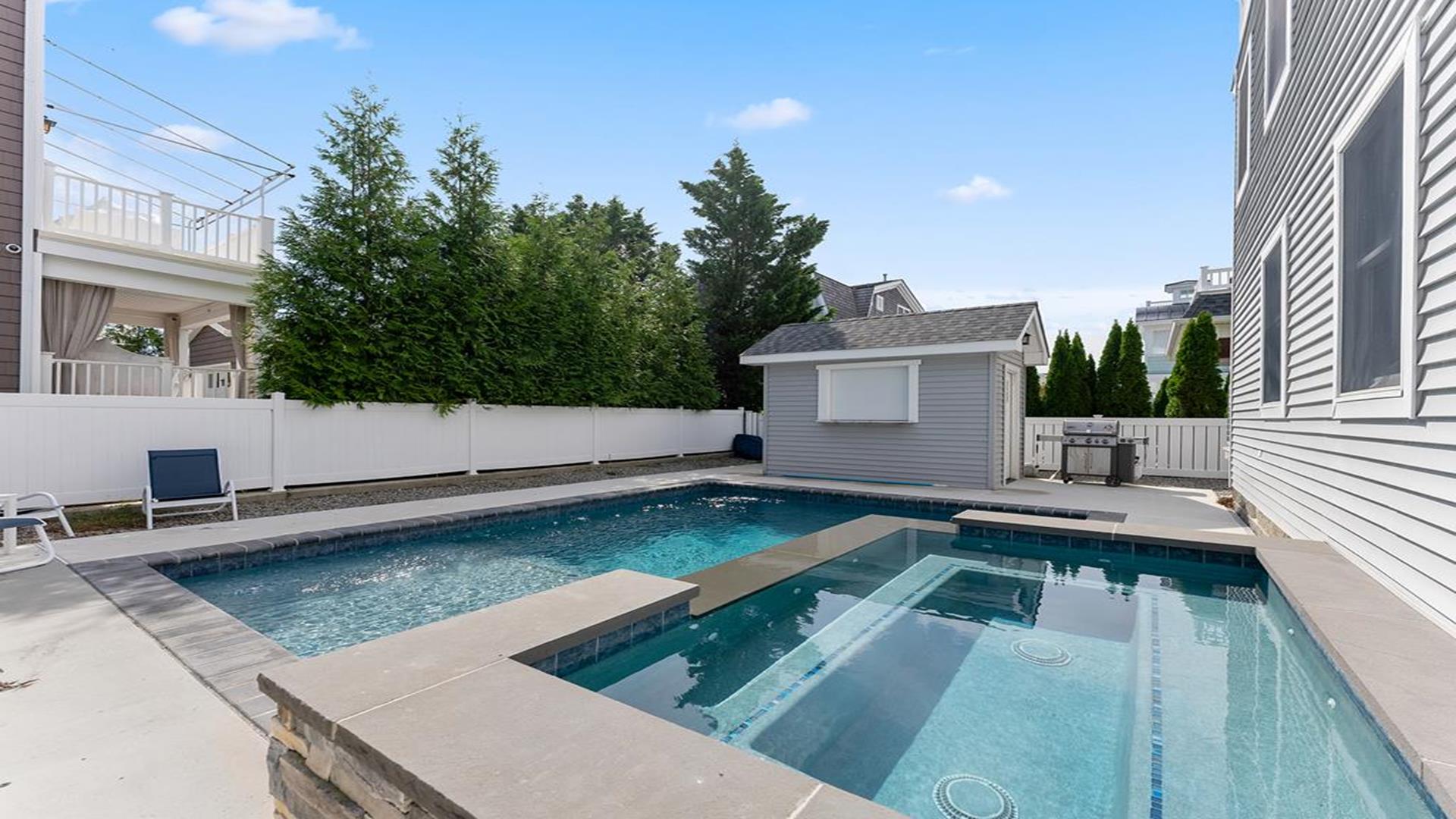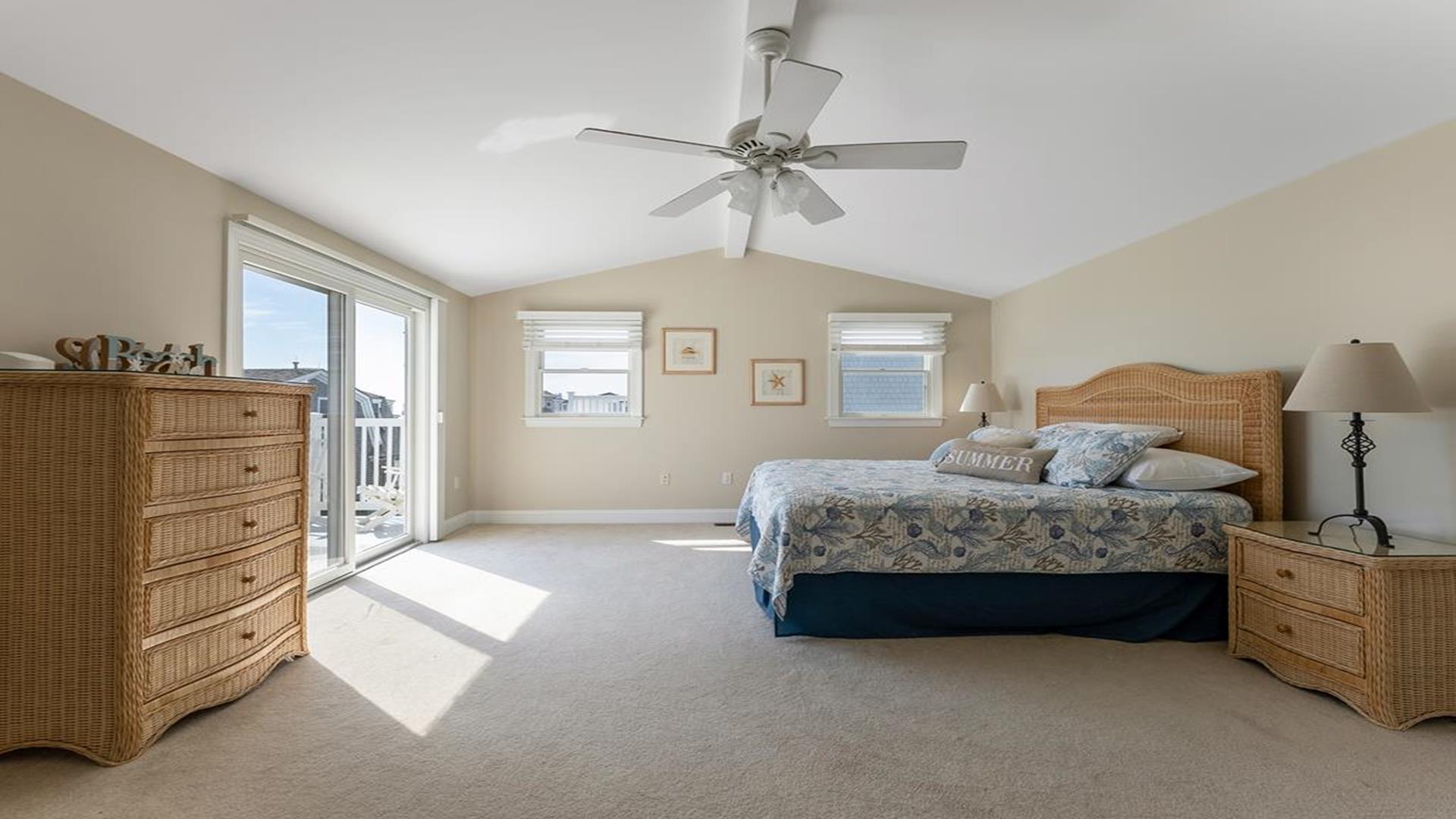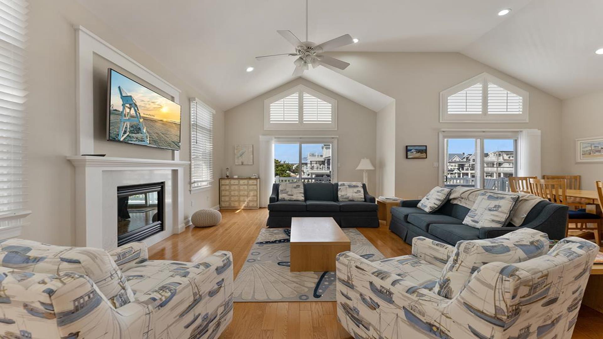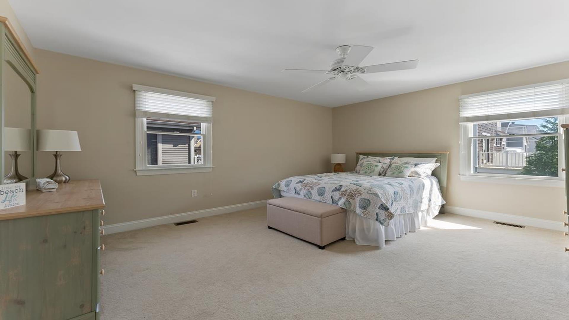 Beach Block Home with POOL!! This spectacular upside down 3 story, 5 bedroom and 5 bath home is a stone’s throw away from some of the widest beaches on Seven Mile Island. 3449 First Avenue is an immaculate beach block beauty located on the East side of First Avenue. Park your car and walk to everything Avalon has to offer from tennis, basketball, downtown, and the 39th Street playground. This home features a first-floor family room with wet bar, the perfect place for to relax and it includes a queen-sized sleep sofa. There are two bedrooms located on the first floor. One bedroom includes a queen and private bathroom. The second bedroom includes 2 twin beds. There is also a hallway bath on this floor. The expansive second floor boats a modern kitchen which opens into a magnificent great room with sliders to the west facing sundeck. There are two bedrooms on this level, one has two twin beds and the other offers a queen-sized bed and has an en-suite bath. There is also a hallway bathroom for the convenience on this level. The third-floor master suite includes a king-sized bed and features a private deck with great ocean views and an opulent master bathroom with Jacuzzi tub. The home is complete with off-street parking for 2 cars. Other amenities include hardwood flooring throughout, upgraded cable, beach tags and beach gear ((included but not guaranteed). THIS PROPERTY RENTS FRIDAY TO FRIDAY. The owner requires a $1800 Security Deposit on weekly rentals. Reserve this beautiful Avalon home today!