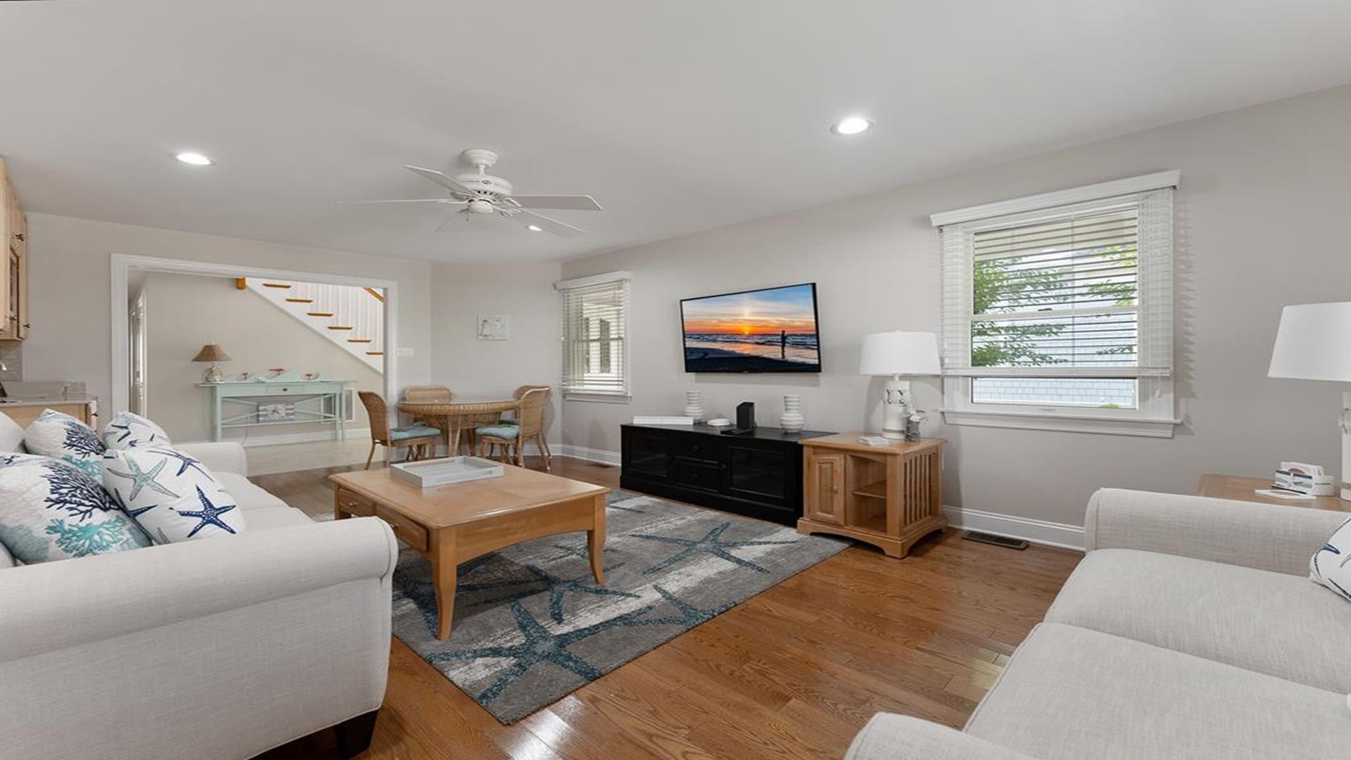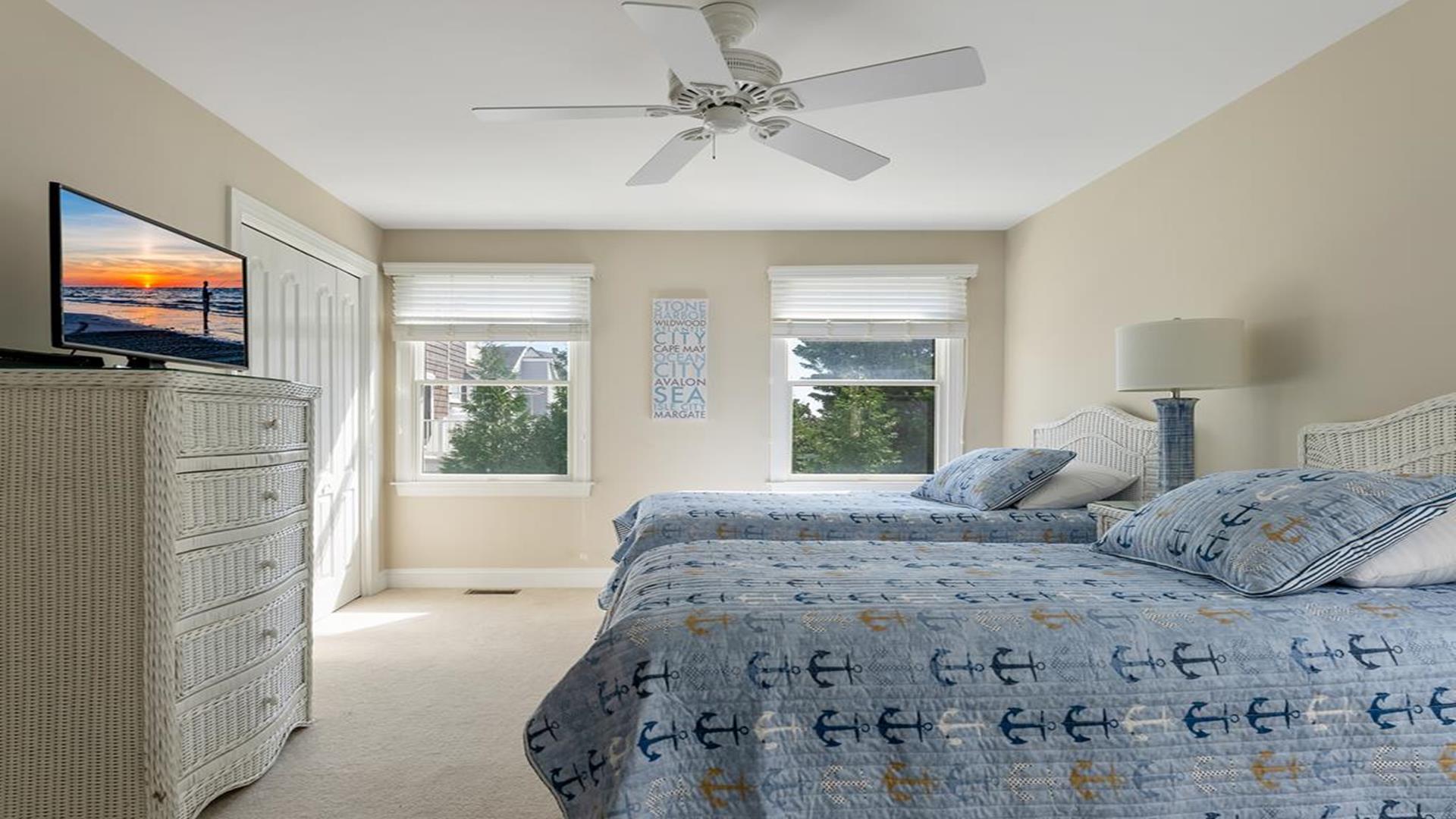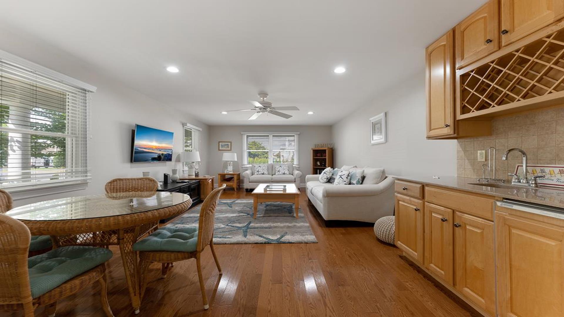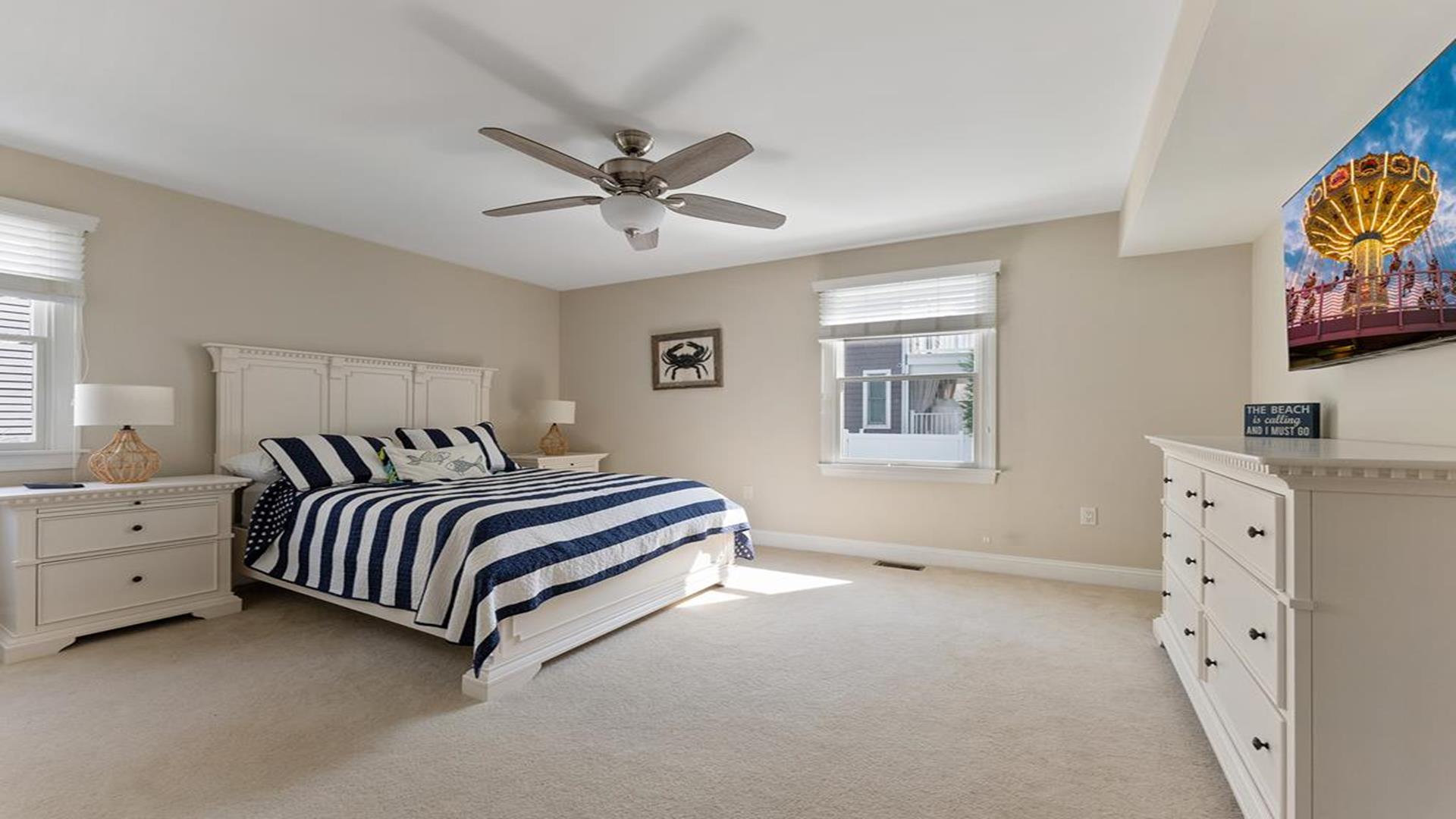 Beach Block Home with POOL!! This spectacular upside down 3 story, 5 bedroom and 5 bath home is a stone’s throw away from some of the widest beaches on Seven Mile Island. 3449 First Avenue is an immaculate beach block beauty located on the East side of First Avenue. Park your car and walk to everything Avalon has to offer from tennis, basketball, downtown, and the 39th Street playground. This home features a first-floor family room with wet bar, the perfect place for to relax and it includes a queen-sized sleep sofa. There are two bedrooms located on the first floor. One bedroom includes a queen and private bathroom. The second bedroom includes 2 twin beds. There is also a hallway bath on this floor. The expansive second floor boats a modern kitchen which opens into a magnificent great room with sliders to the west facing sundeck. There are two bedrooms on this level, one has two twin beds and the other offers a queen-sized bed and has an en-suite bath. There is also a hallway bathroom for the convenience on this level. The third-floor master suite includes a king-sized bed and features a private deck with great ocean views and an opulent master bathroom with Jacuzzi tub. The home is complete with off-street parking for 2 cars. Other amenities include hardwood flooring throughout, upgraded cable, beach tags and beach gear ((included but not guaranteed). THIS PROPERTY RENTS FRIDAY TO FRIDAY. The owner requires a $1800 Security Deposit on weekly rentals. Reserve this beautiful Avalon home today!