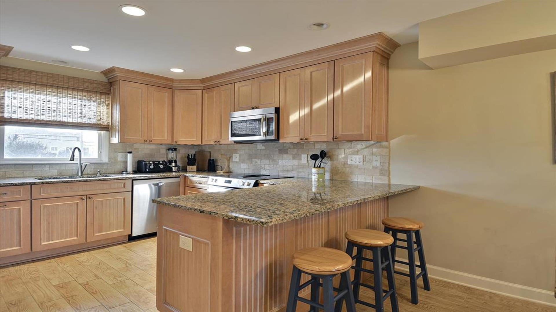 Located in the heart of Bethany overlooking the Atlantic Ocean. A fantastic retreat remodeled townhouse with a great deal to offer . . . 4 large bedrooms each with their own luxurious bath and custom tile -- and two are oceanfront with balconies, gourmet kitchen with granite, stainless steel appliances, custom cabinetry, peninsula for casual dining, dining room to accommodate large gatherings, half bath on living level for convenience, greatroom with corner raised hearth fireplace, custom porcelain tile throughout the first level. Relax on the oceanfront patio and indulge all your senses . . . take a dip in the ocean right at your back door . . . stroll into town and enjoy everything Bethany has to offer.