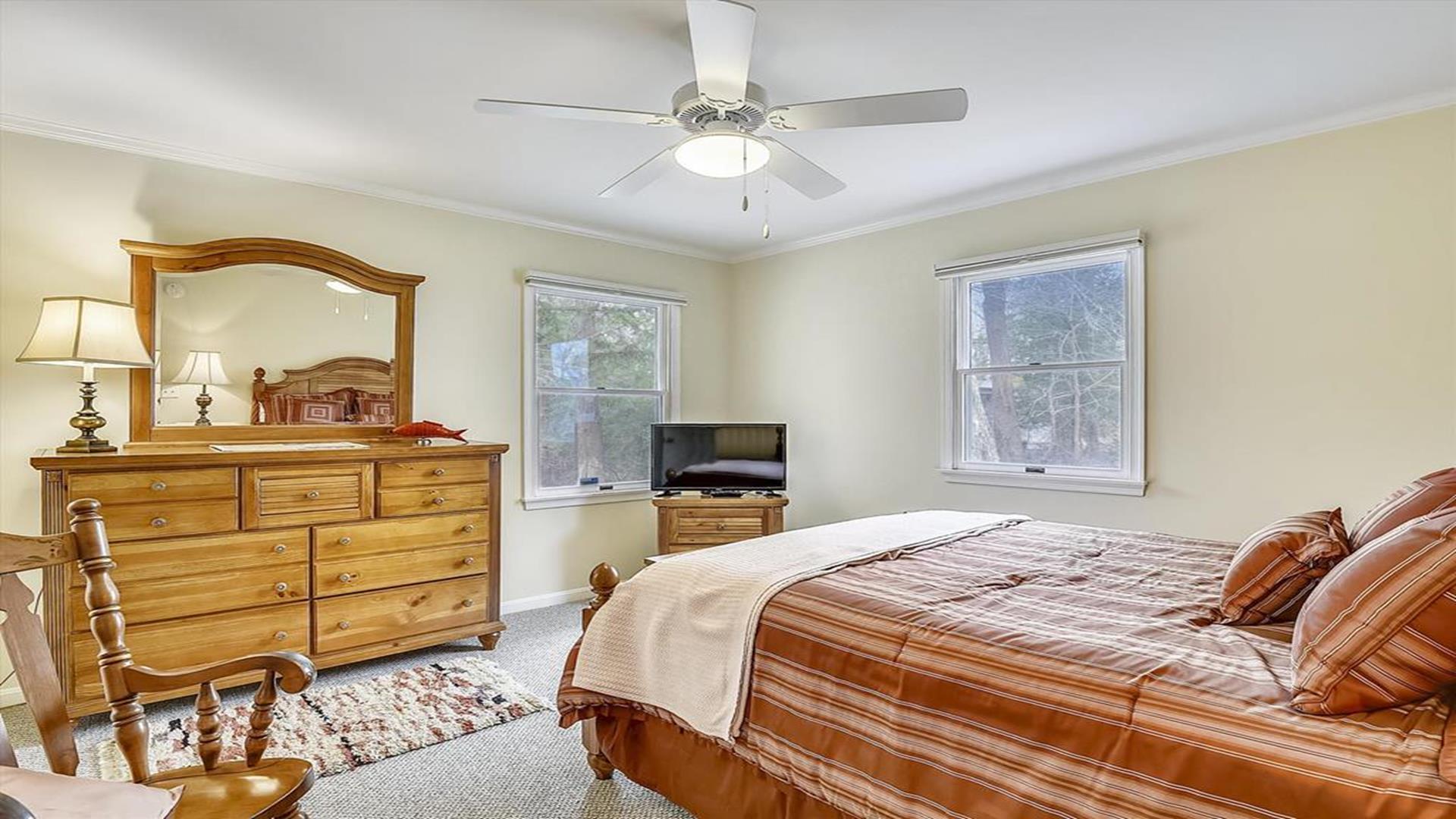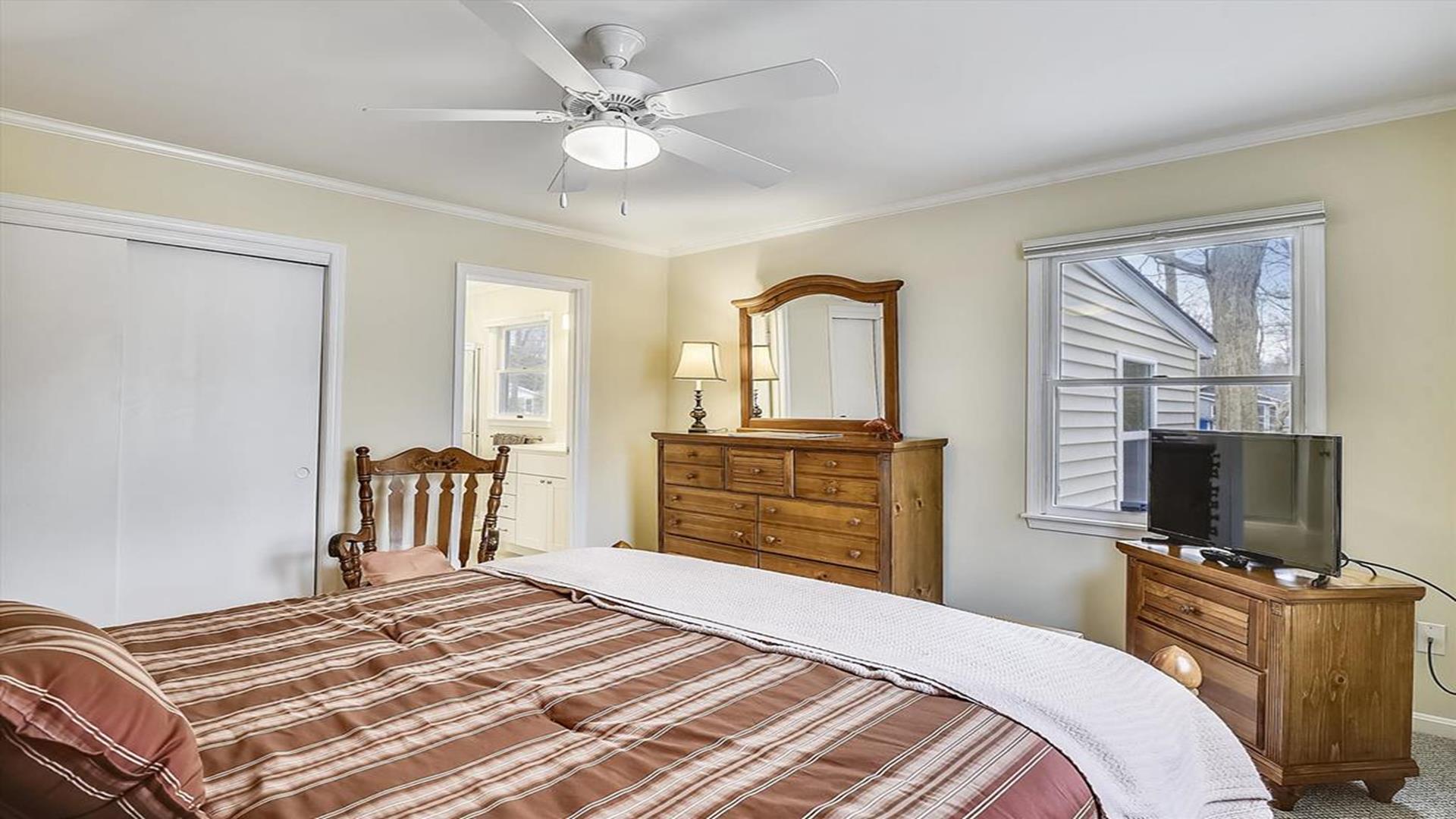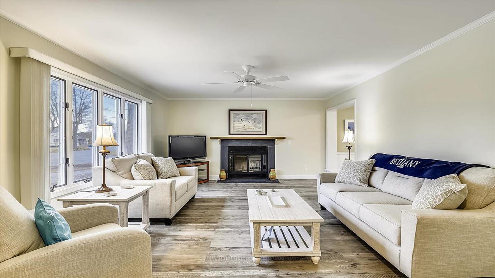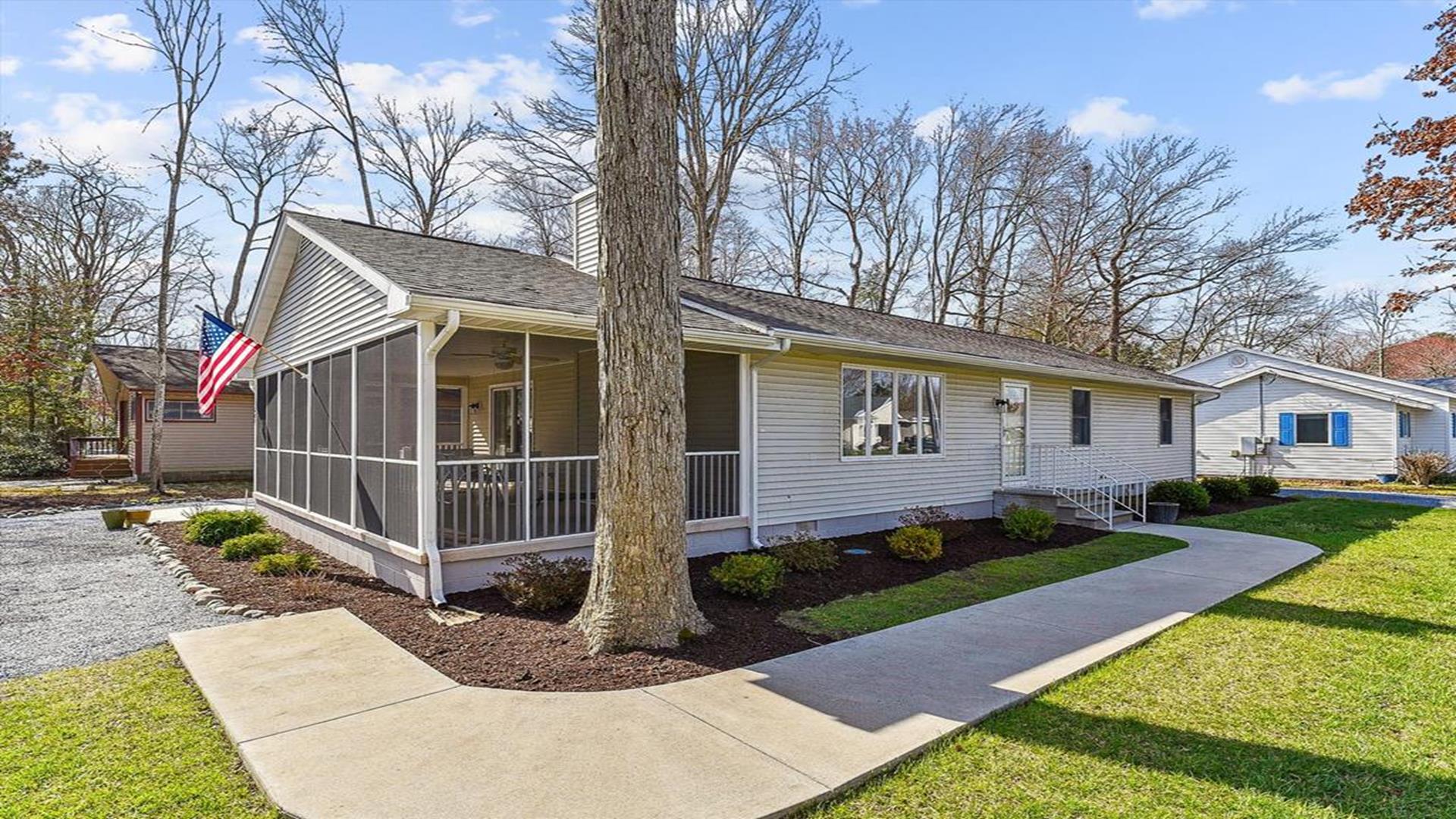 Perfect beach getaway in the charming Town of Bethany Beach! This lovely one-story home in the Bethany West Community is ideal for a relaxing vacation with family or friends. With 3 bedrooms and 2 full bathrooms, this property can comfortably accommodate up to 8 guests. As you step inside, you'll be greeted by a spacious living room and dining area, perfect for gathering and creating lasting memories. The highlight of this home is the huge screened porch on the front, where you can enjoy your morning coffee or unwind after a day at the beach. The two bedrooms feature queen-size beds, providing a cozy retreat for a restful night's sleep. The third bedroom is a fun space for kids or young adults, with a pyramid-style bunk bed that includes a single bed on top, a double bed on the bottom, and a trundle underneath the double bed. Situated on a partially wooded lot, this property offers a tranquil setting for your vacation. It is conveniently located halfway between the two swimming pools and tennis courts in the community, ensuring easy access to recreational amenities. This home comes fully equipped with modern conveniences, including a dishwasher, microwave, coffee maker, central AC, washer, and dryer. Entertainment options abound with two TVs, cable TV, and wireless internet. Outdoor amenities include a screened porch, BBQ charcoal grill, and an outside shower for rinsing off sandy feet. The Bethany West Community also offers additional perks such as an exercise room, association pool, and tennis courts for your enjoyment. Please note that this property does not allow pets. Don't miss out on the opportunity to experience the best of Bethany Beach living in this well-appointed vacation home. Book your stay now and create unforgettable memories by the sea!