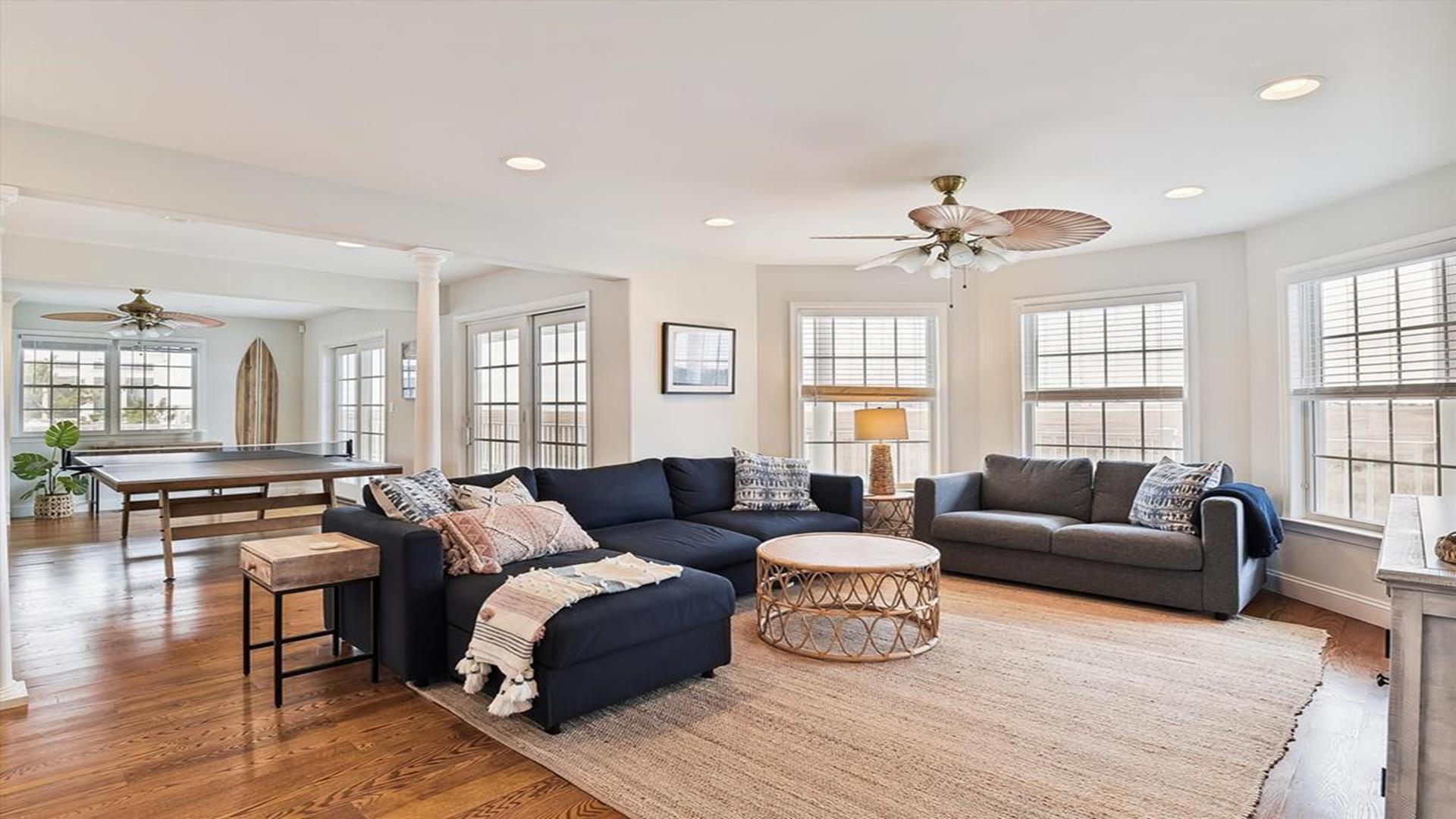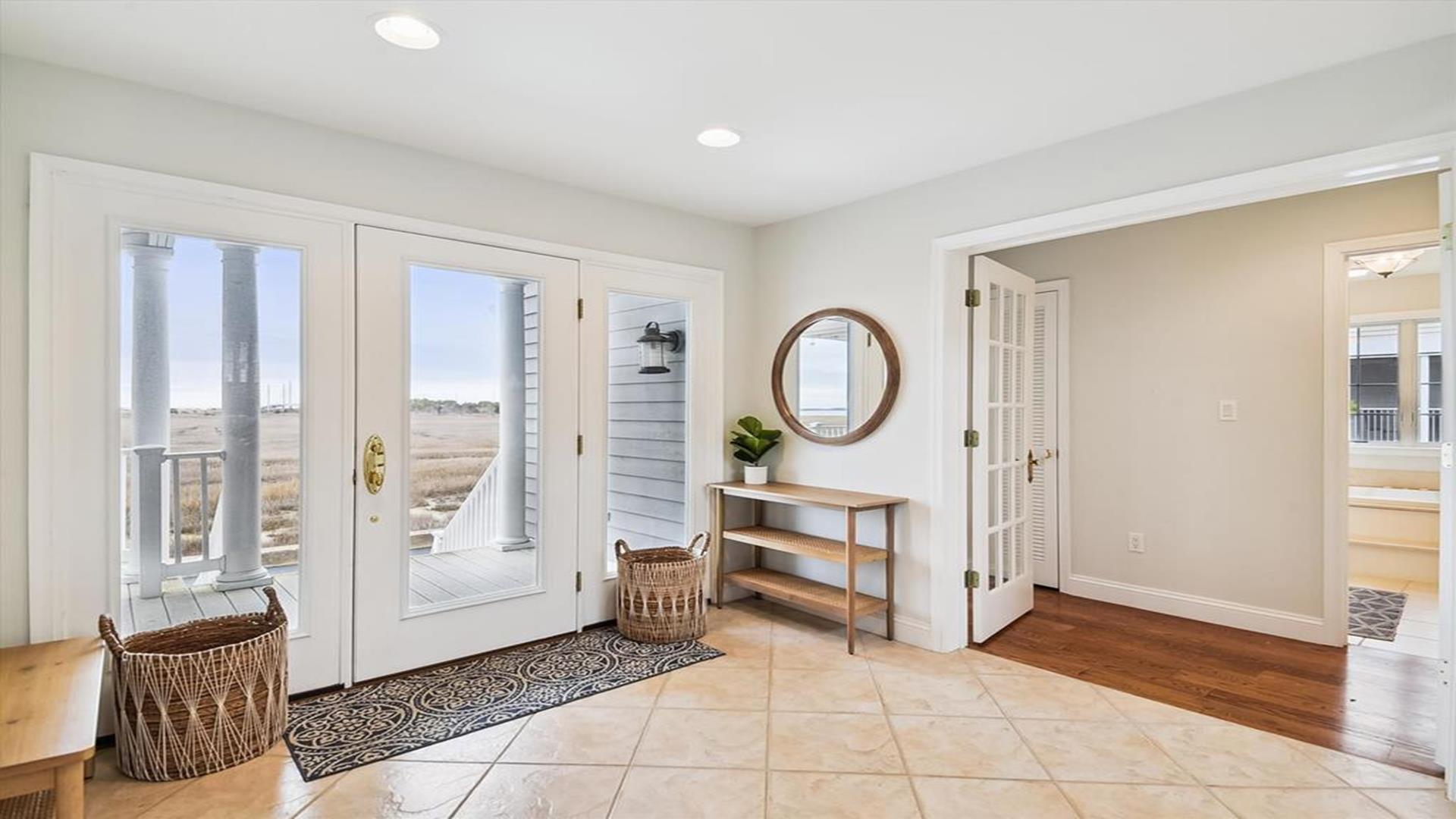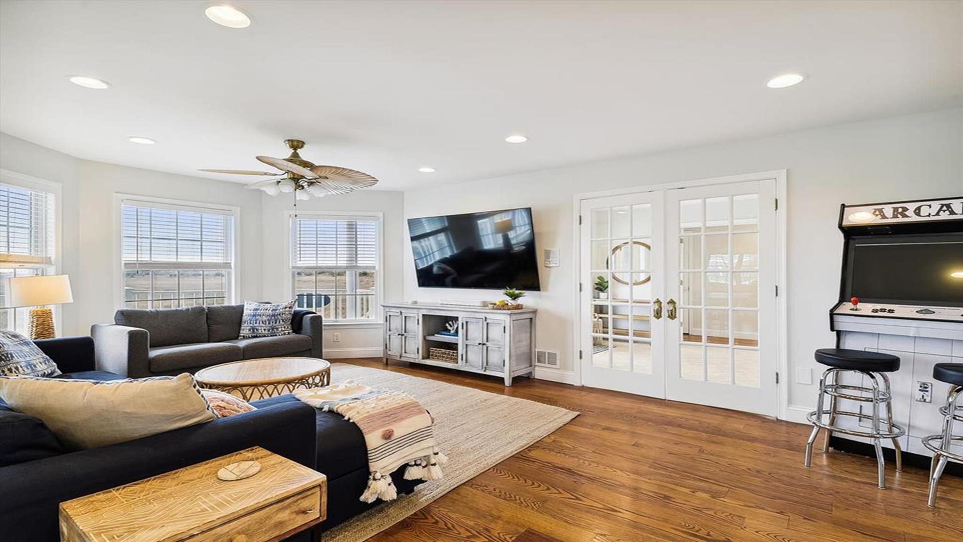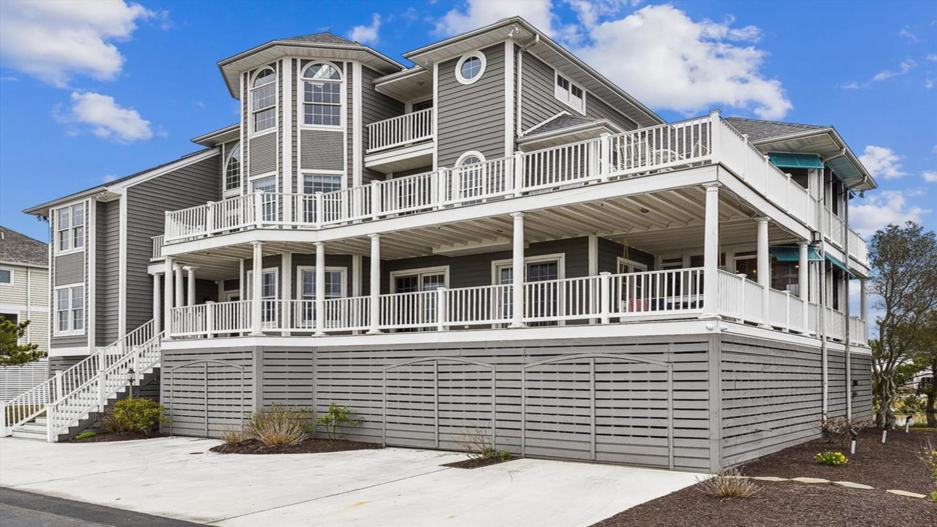 Spectacular waterfront home with incredible views of the Indian River Bay and the Atlantic Ocean! Offering private beach access across Rte 1, it is ideal for water enthusiasts . This home in the Cove in North Bethany, offers over 5,000 square feet of interior space and 3,024 square feet of outdoor decks and living space, perfect for catching glorious sunsets, scenic vistas, and ideal for entertaining.. Every Deck offers a slightly different feel built for enjoyment and relaxation… from Adirondack Chairs, to a swinging daybed, to a hammock. Wherever you are, the views will be breathtaking. The upgraded Second Level kitchen is complete with stainless steel appliances, granite counters, a bar counter top with seating for 5 – as well as a beautiful front dining room with a long 9’ rustic wood table to have meals and be together. Off the Kitchen you can eat or relax on the back deck for beautifully peaceful views or head out into the comfortable screened porch to watch TV and relax on the outdoor couches and chairs. The first level features a Game & TV Room – complete with Ping Pong, Shuffleboard, 2 Player Stand Up 32” LCD Screen Arcade pre-loaded with 4500 Classic Arcade Games, Family Puzzle or Game Table along with a 75” TV to enjoy movies or your favorite sporting event. Four separate Sonos Speakers are placed throughout the house to enjoy separate music wherever you move to. Each of the six bedrooms feature water views and spacious closets & dressers. The third-level owners bedroom suite offers vaulted ceilings, spectacular views of the Ocean & Bay and a luxurious bath with a jacuzzi bathtub and double vanity. A rear private deck off the master bedroom boasts a large hot tub. The King and Queen Bedrooms on the Second-level are enclosed behind glass French doors to provide privacy and quiet. Adjoining the first level Game Room is a custom Built-In Pyramid Bunk Bedroom perfect for 6+ Kids with two Queens & 2 Twins. Also on the first level are two secluded bedrooms featuring a King Bedroom, a double Twin Bedroom, and Bathroom with Jacuzzi Tub & Shower The ground level floor offers expansive running around space for the kids, covered parking for 4-6 vehicles, outdoor shower, and a mini game room with a great Air Hockey Table. As a guest of The Cove you can enjoy the community amenities including tennis, pool, pool house and basketball court. The private location of this residence offers unparalleled wildlife watching, with osprey nests, willets, ducks, geese and eagles; however, it is easy to enjoy exploring nearby Fenwick Island, Dewey & Rehoboth Beach, and Lewes just minutes away!