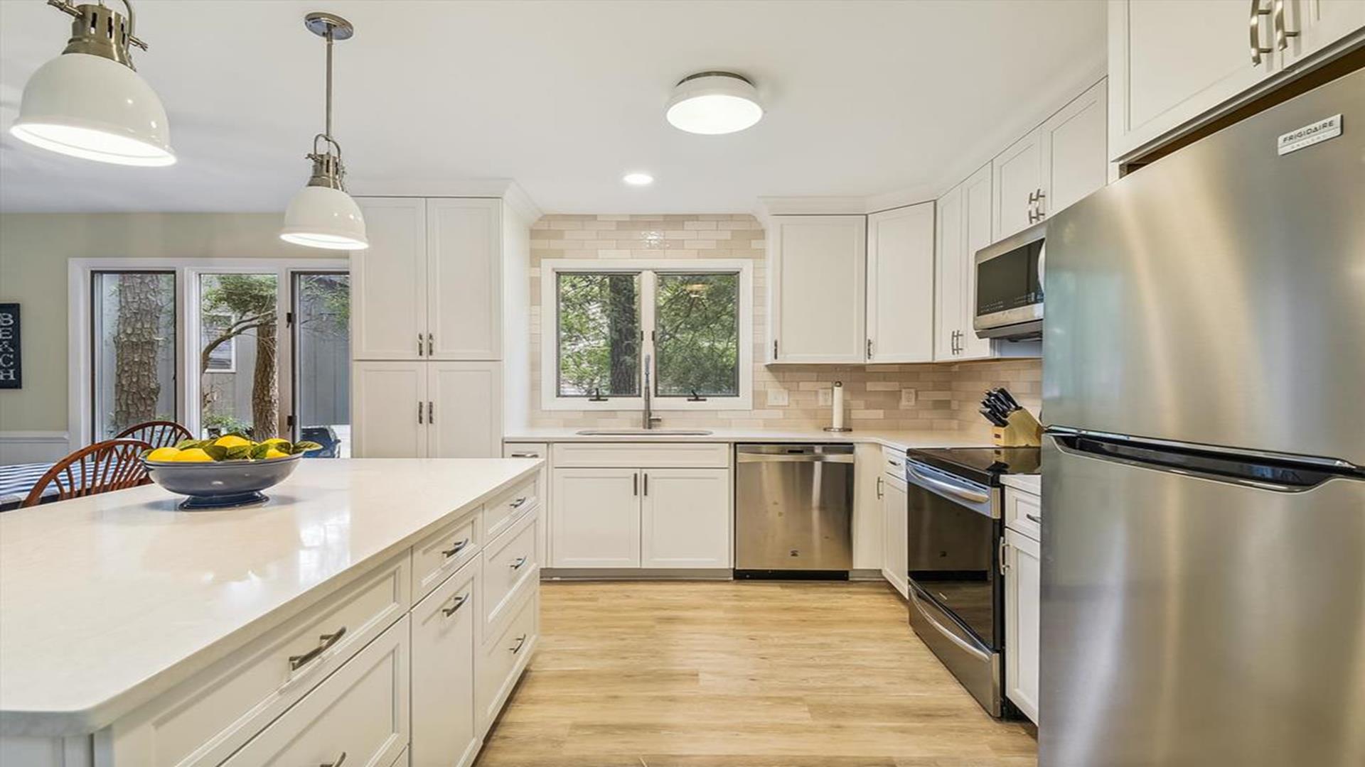 Welcome to 401 Tamarack Drive where you get the best of both the beach the bay! This 4 bedroom, 3 bathroom home is located in the sought-after community of Cat Hill, just a short walk or bike to the beach and just steps away to beautiful views of the Assawoman Bay. This bright and airy beach retreat is ready to accommodate all your vacation needs featuring an open concept kitchen, dining and family room plus a screened in porch, and that’s just the first floor! The newly updated main level boasts beautiful new LVP flooring throughout while the kitchen is straight out of an HGTV show, complete with white cabinets, stainless steel appliances, quartz countertops and large island with seating while the dining room can accommodate up to 10, as can the family room(as long as the kids can share) with nautical themes and 50” ROKU TV, perfect for movie nights after a fun day out on the water. But if you wore yourself out surfing the waves and need to crash for the night, the home features 2 main level bedrooms, one for the kids, or kids at heart, with double bunkbeds (4 twin beds) and one room with a full bed, ceiling fan, and your own TV with ROKU function in case someone needs a vacation from their vacation. Upstairs features 2 master suites, perfect for moms and dads, both with updated en-suite bathrooms, queen beds, TVs with ROKU function, and each with access to their own outdoor decks. The “nautical room” master suite, as most call it, shares access to a large deck, also accessible from the upstairs hallway and is perfect for happy hour, or lounging with a good book from the house library. The remaining outside areas include ground level outdoor shower, side yard used by some for cornhole tournaments (BYOB – Bring Your Own Boards), and large driveway for ample parking, so pack up the car and get ready to enjoy your next vacation in South Bethany Beach! Ranked # 3 amongst USA Todays Best Travel Awards! Features include: WiFi, 4 Bedroom (2 Queen - upstairs, 1 Full – main level, 4 Twin – Bunks – main level, all with ceiling fans), 3 Full Bathroom (2 tub/shower combo – 1 upstairs, 1 downstairs, 1 shower only – upstairs - all updated 2023), lower level entry with laundry (washer and dryer), 4 TVs (all with ROKU Functionality – No CATV), LVP Flooring on entry level + main floor, carpet in all bedrooms, stairs and upstairs level, updated Kitchen 2023, main level screen porch, top level deck, outside shower, parking for up to 6 vehicles (2 parking under house).