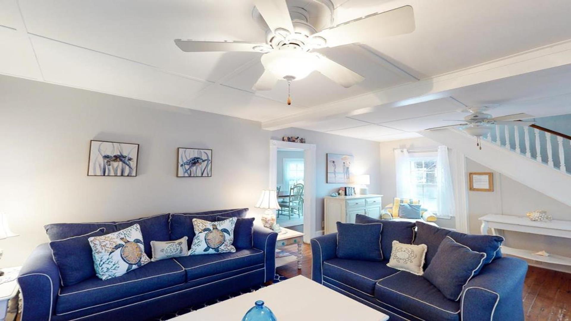 Location…. Location…. Location…This is a historic Bethany Beach 4 bedroom cottage with: one bathroom, outside shower, screened porch, deck, and a recently renovated kitchen. Enjoy the days at the beach and return to relax and gather with family in this comfortable and peaceful space. Watch a movies on the flatscreen TV in the living area or prepare a delicious meal in the kitchen. The kitchen offers ample counter space and appliances to impress your guests and show off your culinary talents. There is HVAC in the attic that cools/heats the second floor. Then there are two ductless mini-split wall-mounted heat pump & air conditioner units to cool/heat the downstairs. No pets are allowed at this vacation rental. House sleep 8