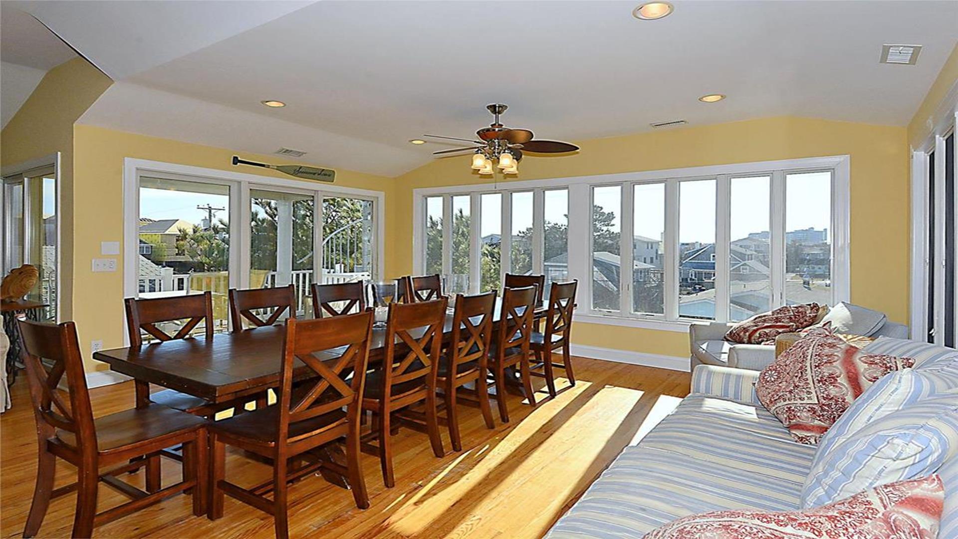 Very Nice! 8 Bedrooms, 6 Baths. OCEAN VIEWS upper levels, porches & roof top deck! Located 1/2 block to the ocean and 1 block to the shopping areas! Lots of amenities including an elevator & WiFi! Sleeps 16 - so perfect for special occasions such as Beach Weddings, Family Reunions or holidays such as Columbus Day Weekend or Thanksgiving.